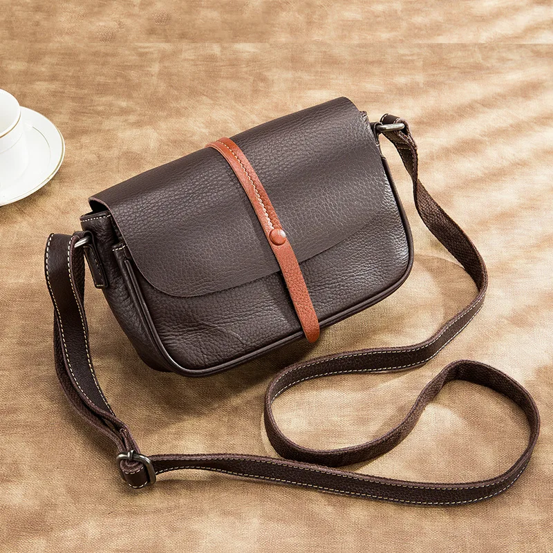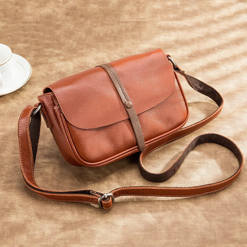 Luxury Genuine Leather bags for Woman New women's bag fashion simple single shoulder soft Retro solid color crossbody bag Female