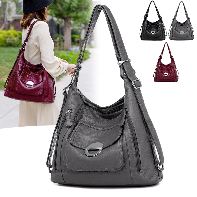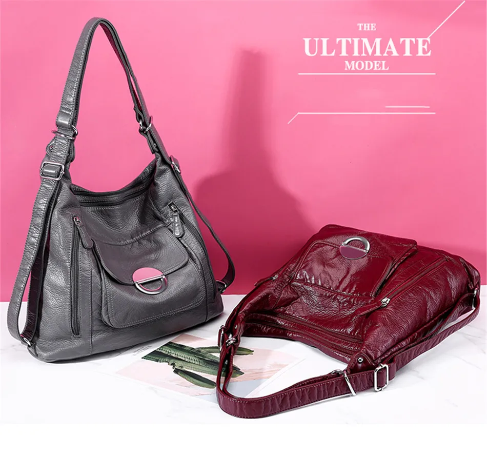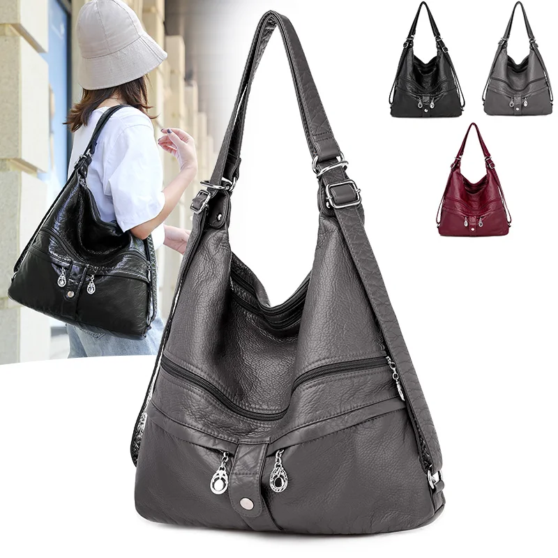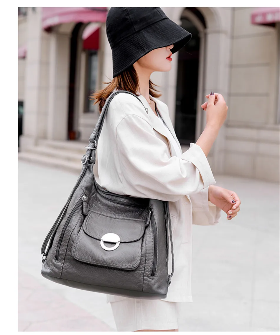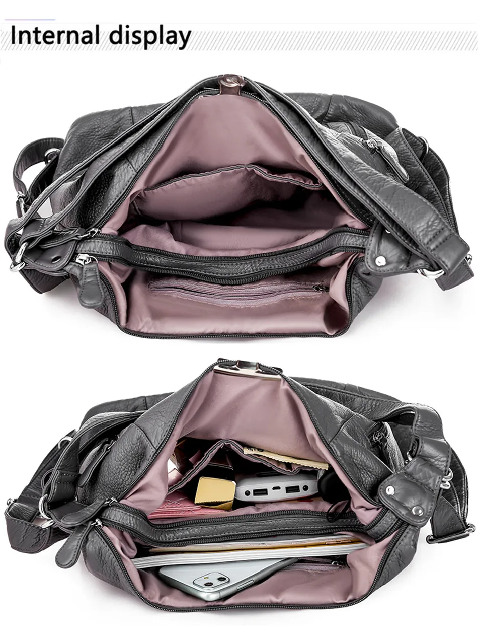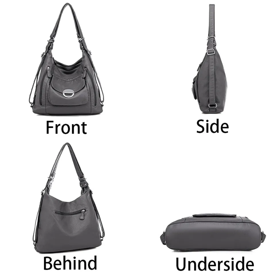 KMFFLY Brand Women's Bag Large Capacity 3IN1 Soft PU eather Handbag 2024 New Trend Ladies Shoulder Messenger Bag Gray Sac a Main
