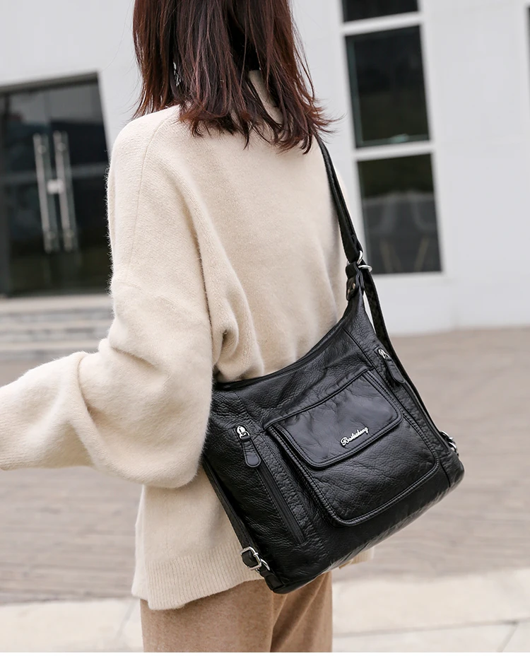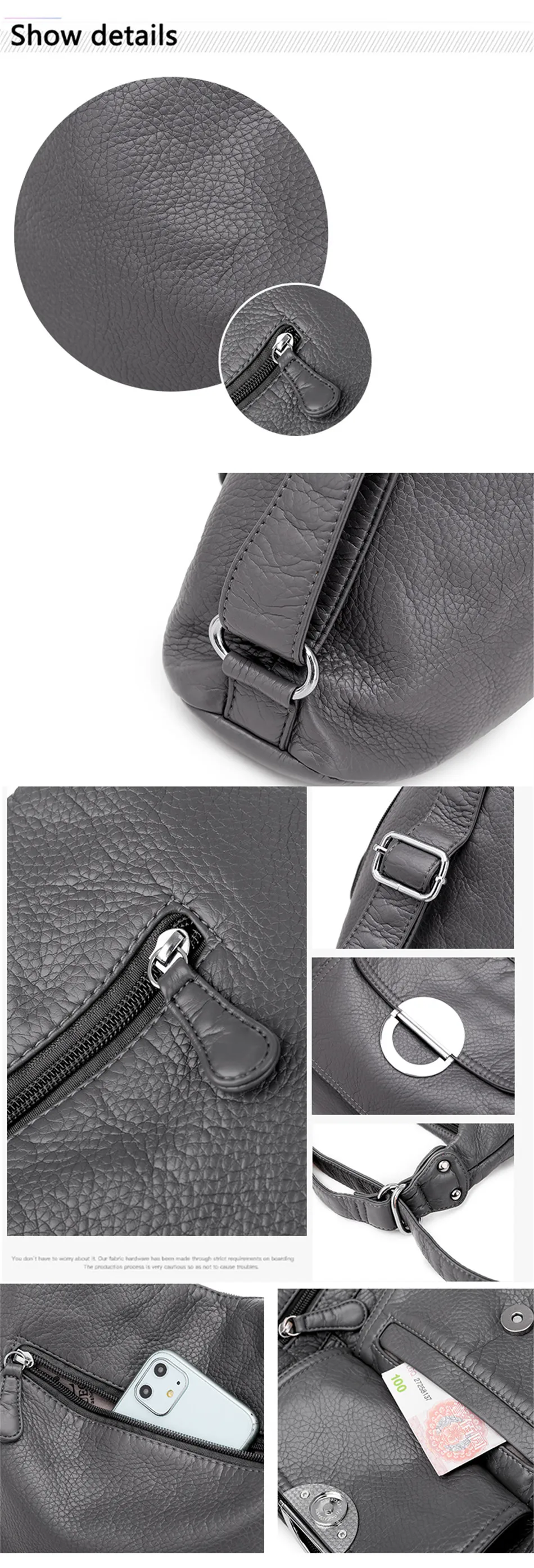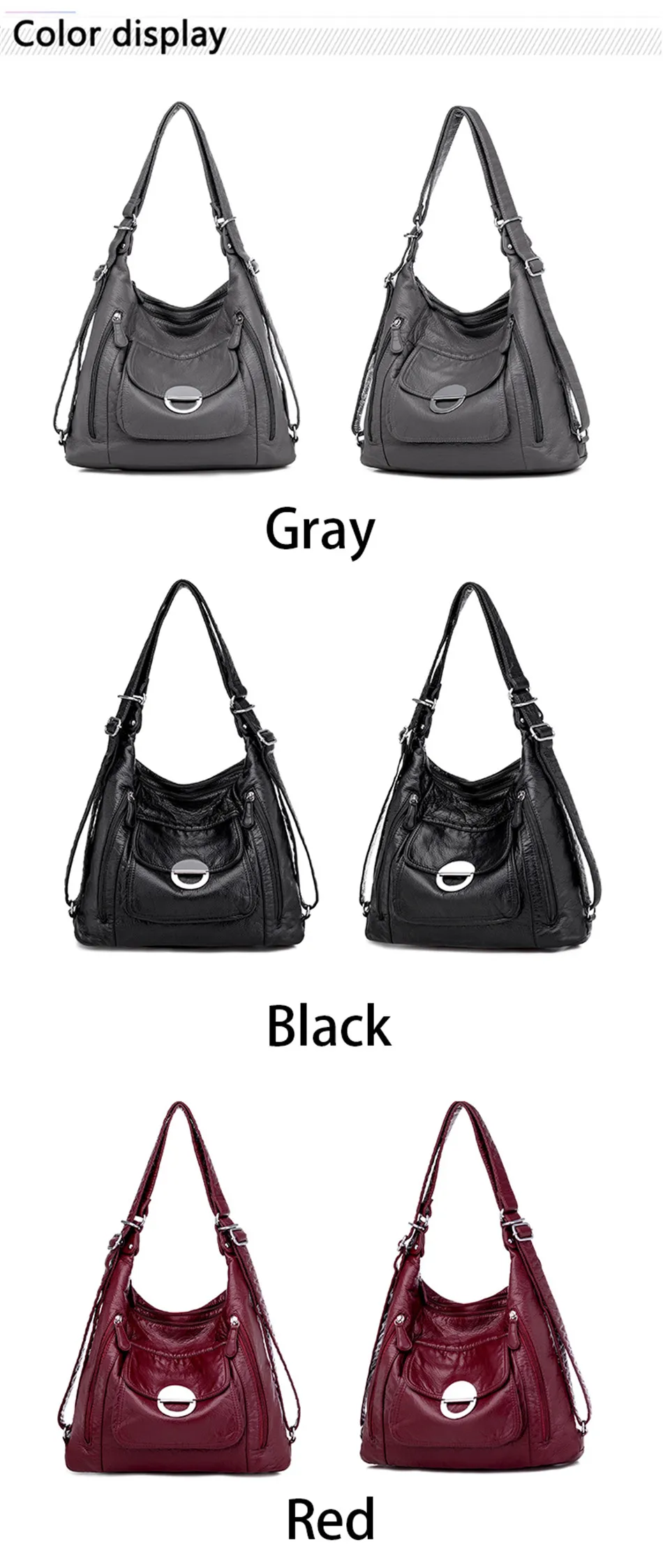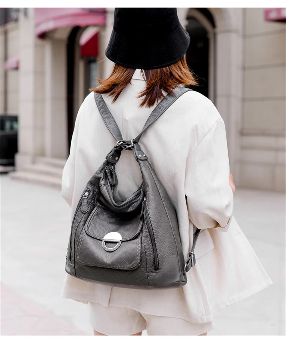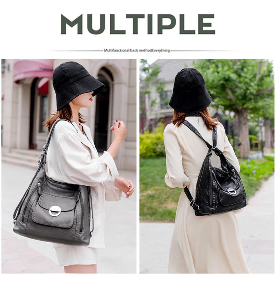 KMFFLY Brand Women's Bag Large Capacity 3IN1 Soft PU eather Handbag 2024 New Trend Ladies Shoulder Messenger Bag Gray Sac a Main