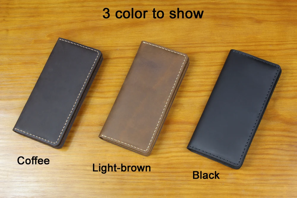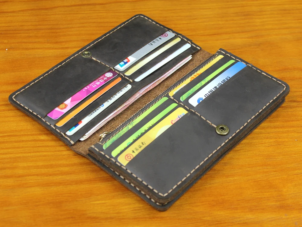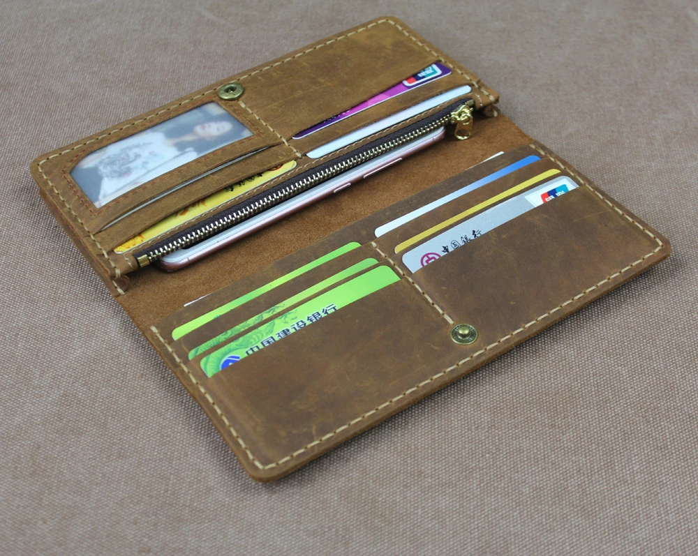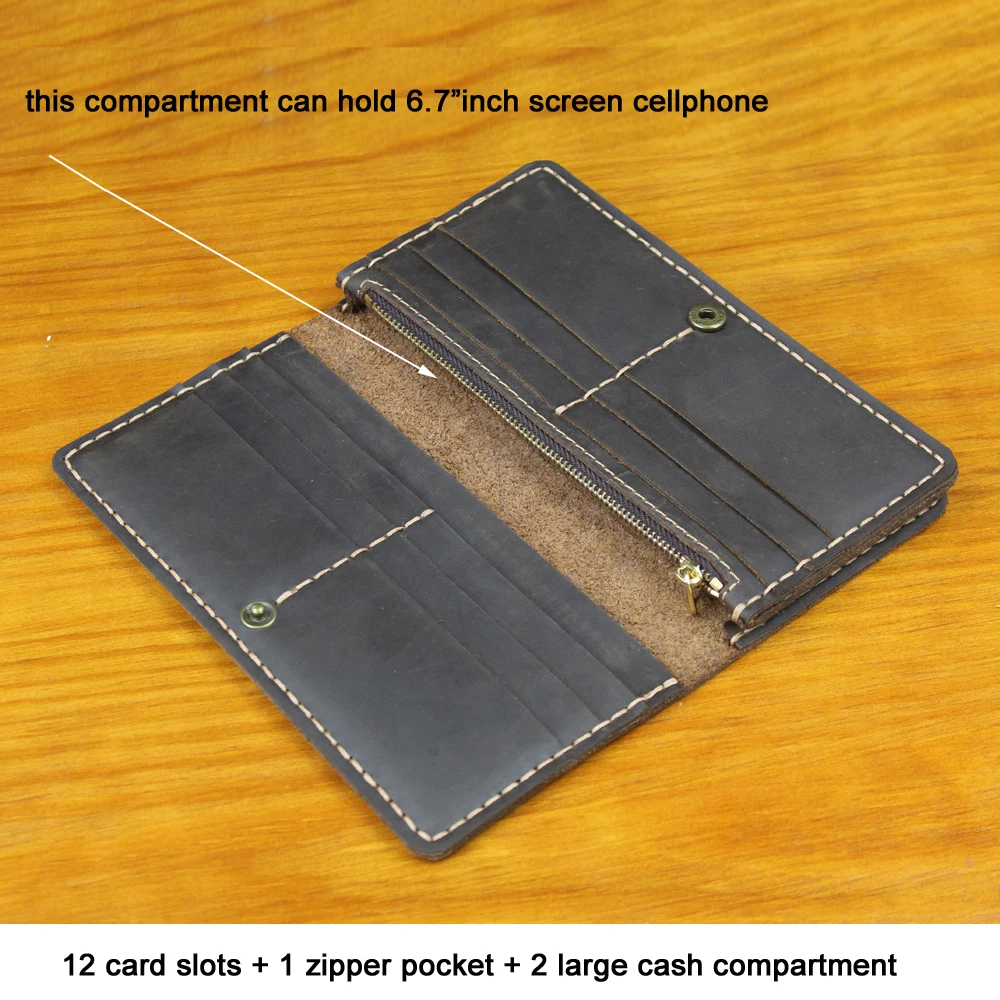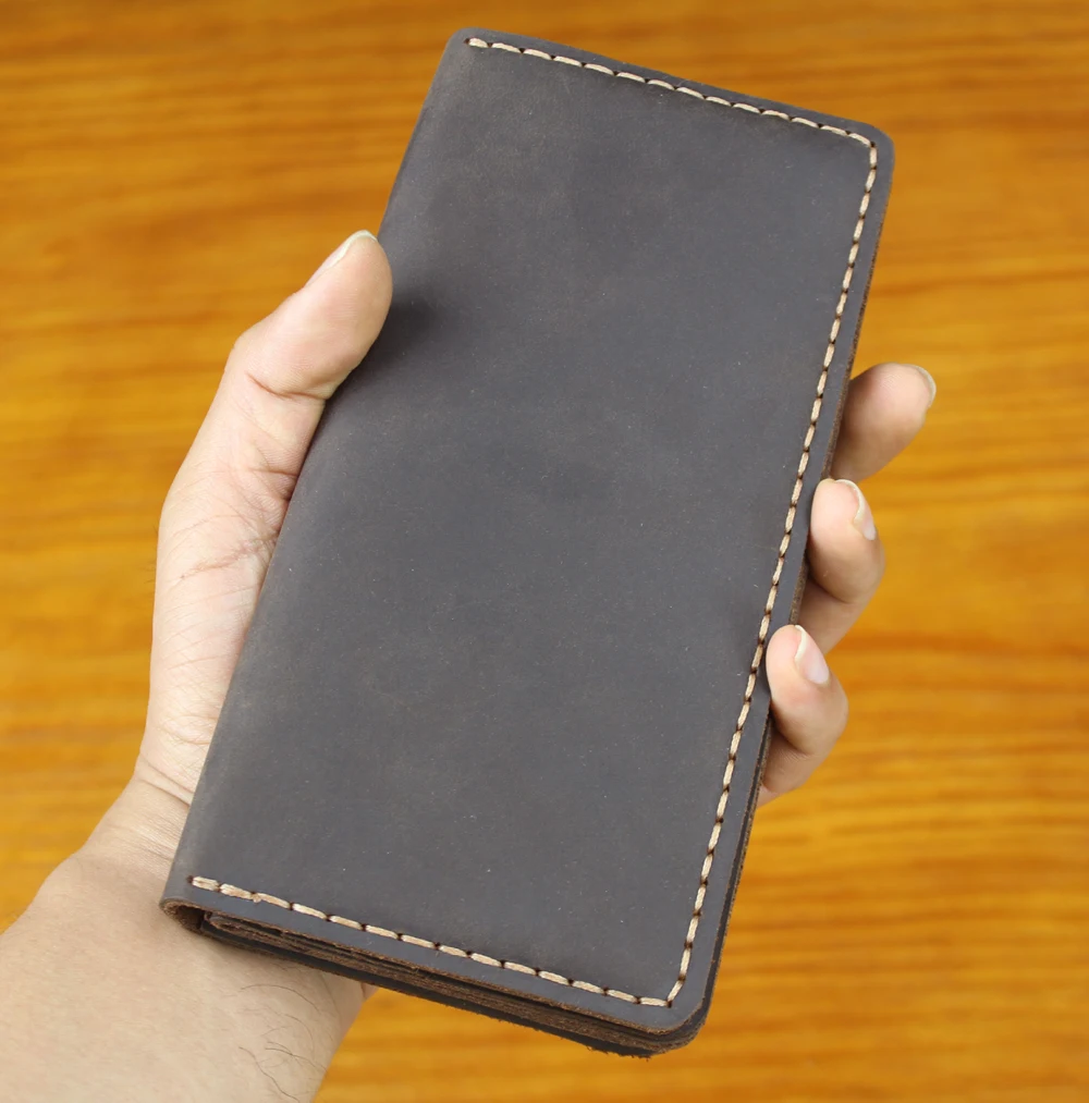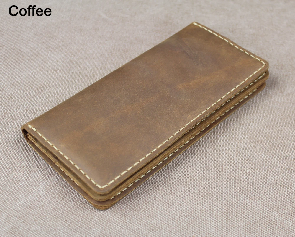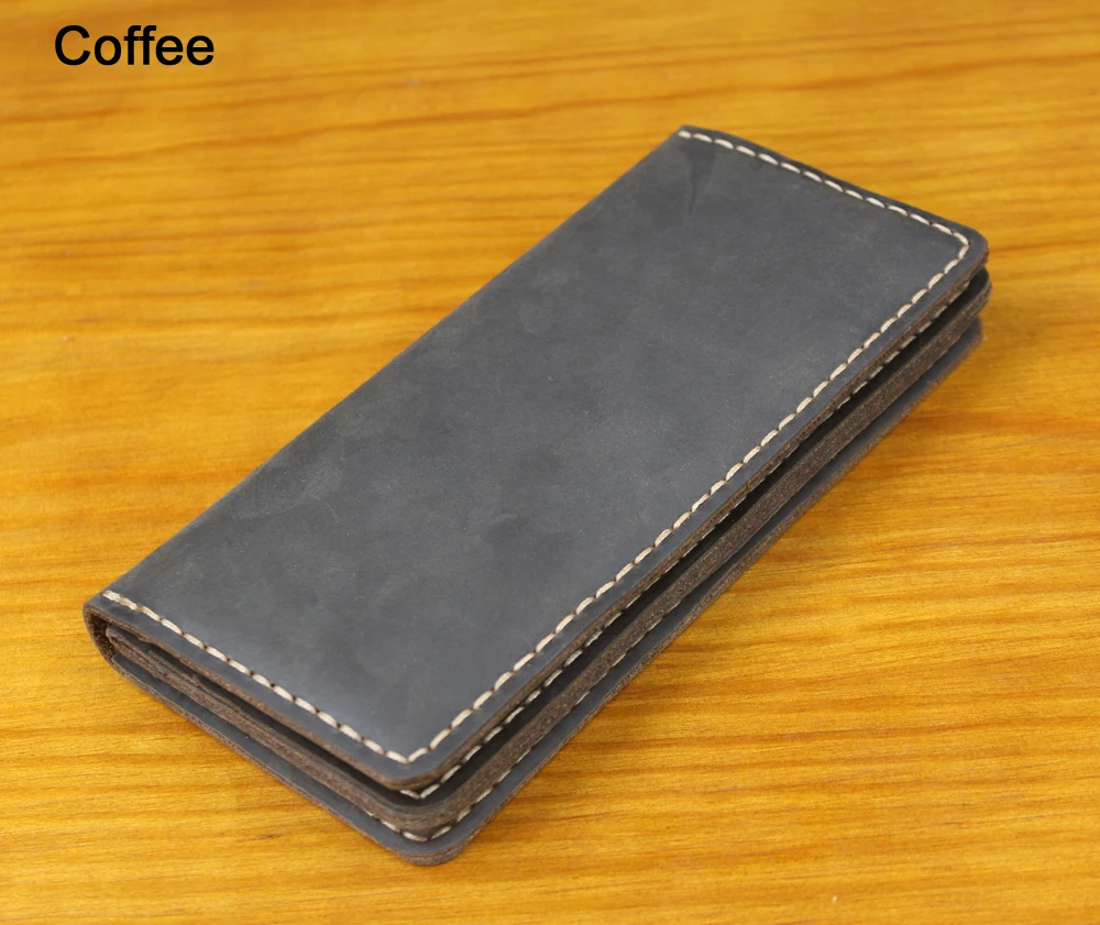Luxury Handmade Genuine Leather Long Wallet Men Bifold Purse Clutch Wallet Money Clip Phone Case Money Bag