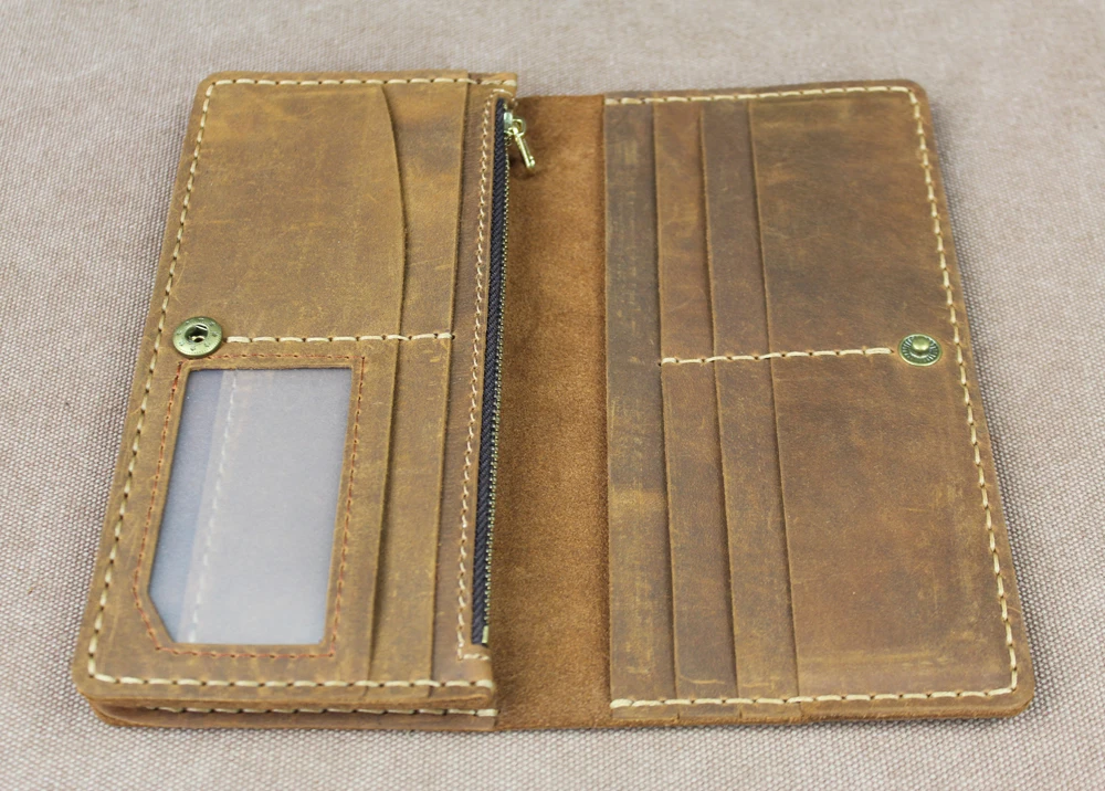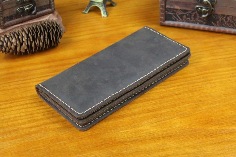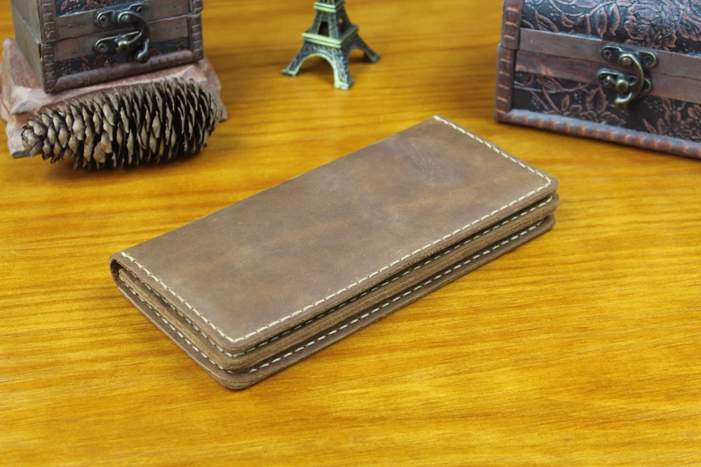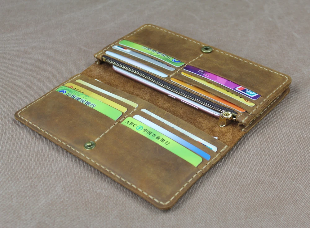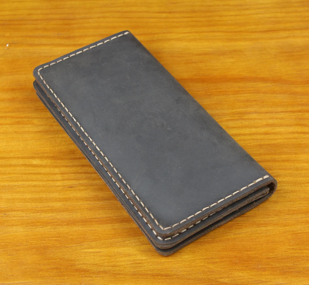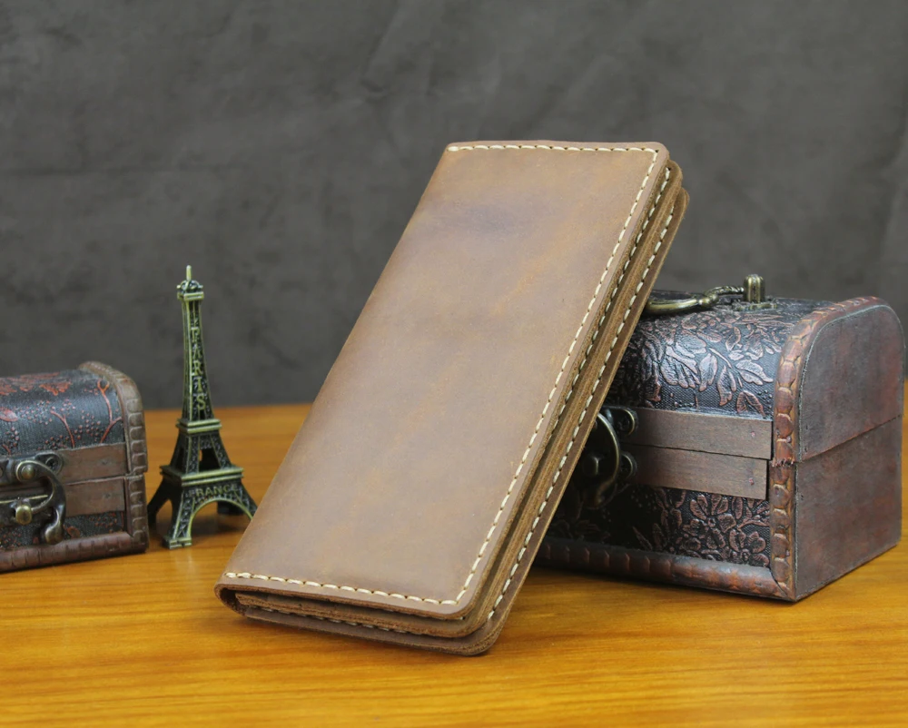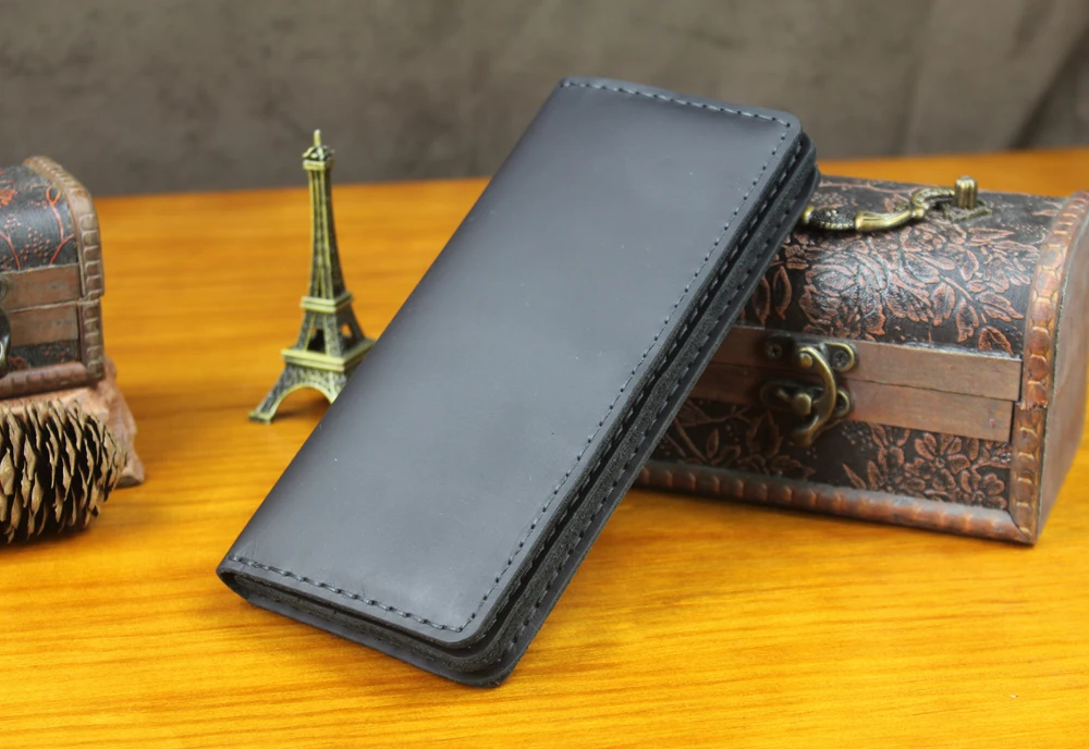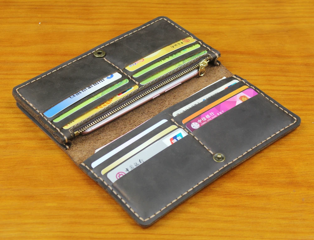 Luxury Handmade Genuine Leather Long Wallet Men Bifold Purse Clutch Wallet Money Clip Phone Case Money Bag