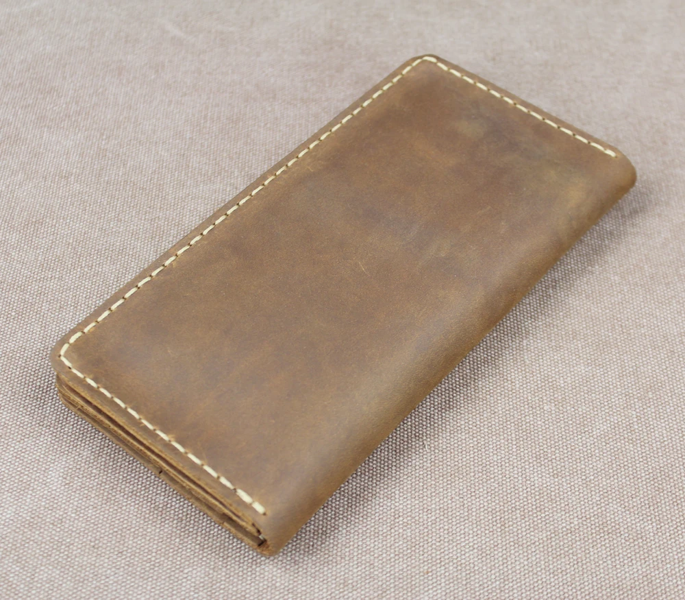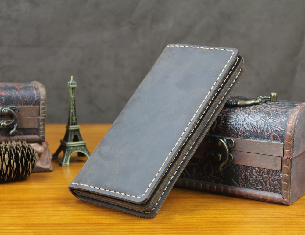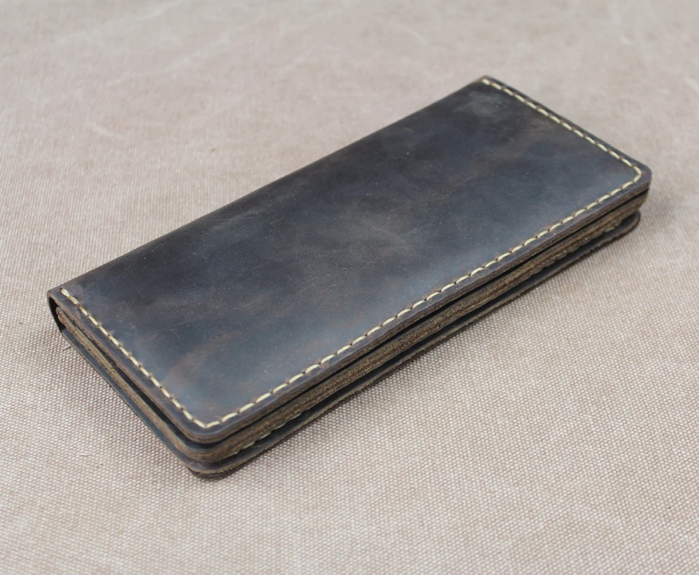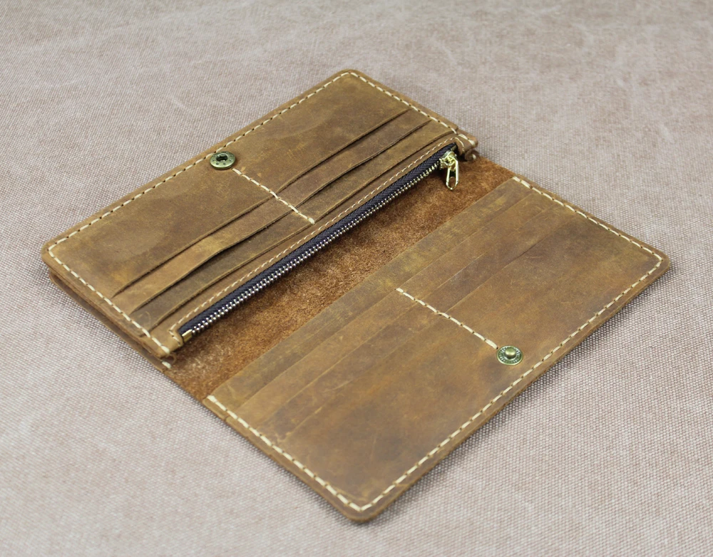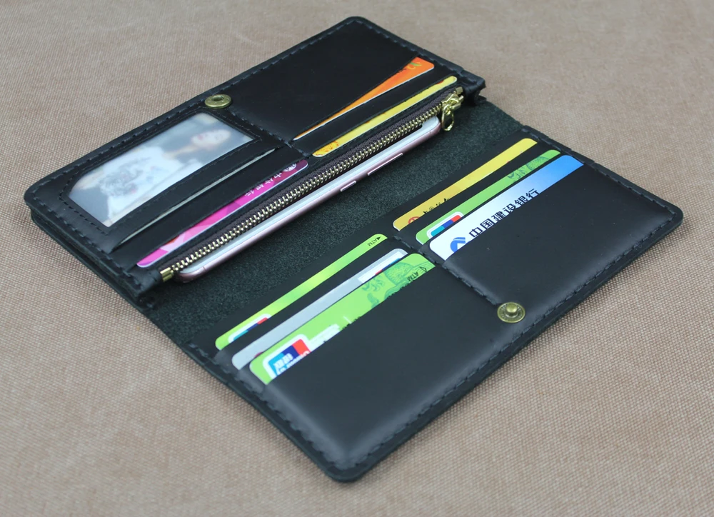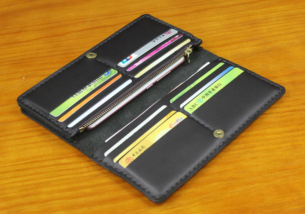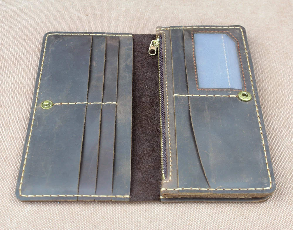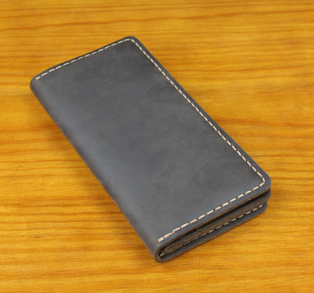 Luxury Handmade Genuine Leather Long Wallet Men Bifold Purse Clutch Wallet Money Clip Phone Case Money Bag