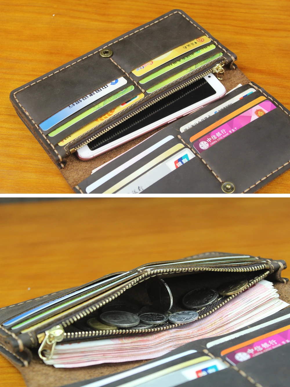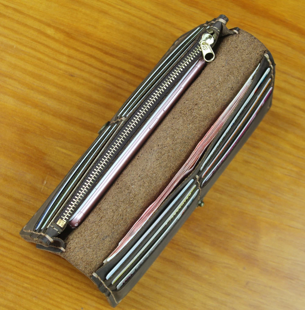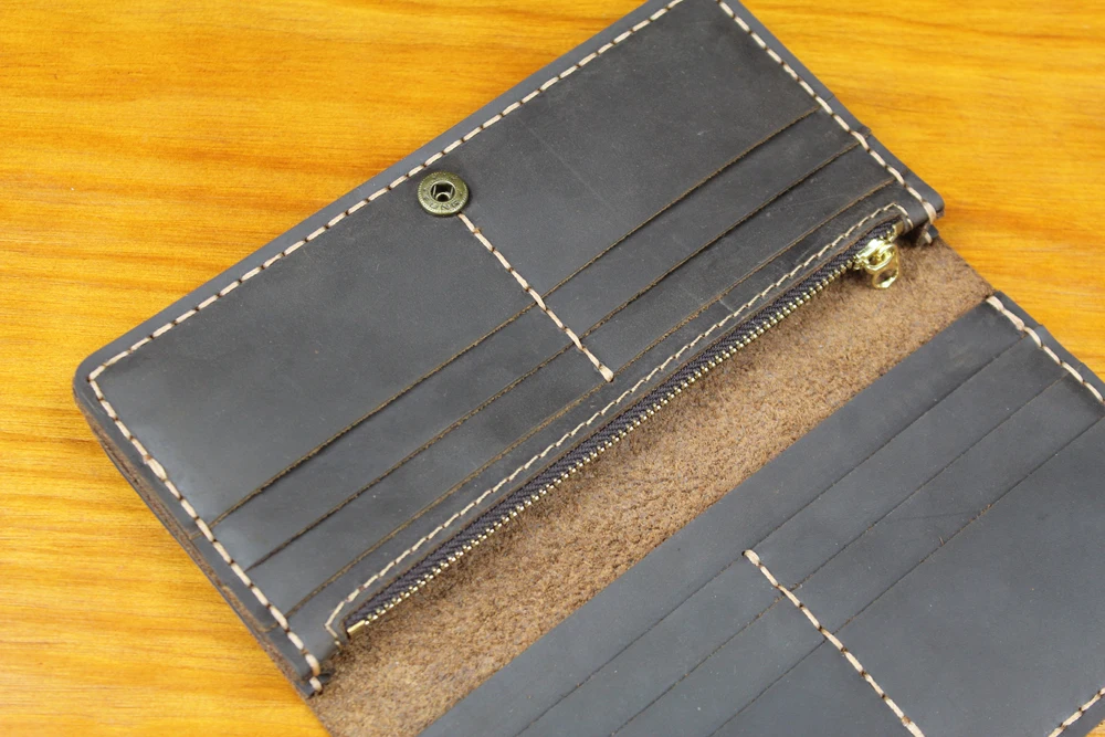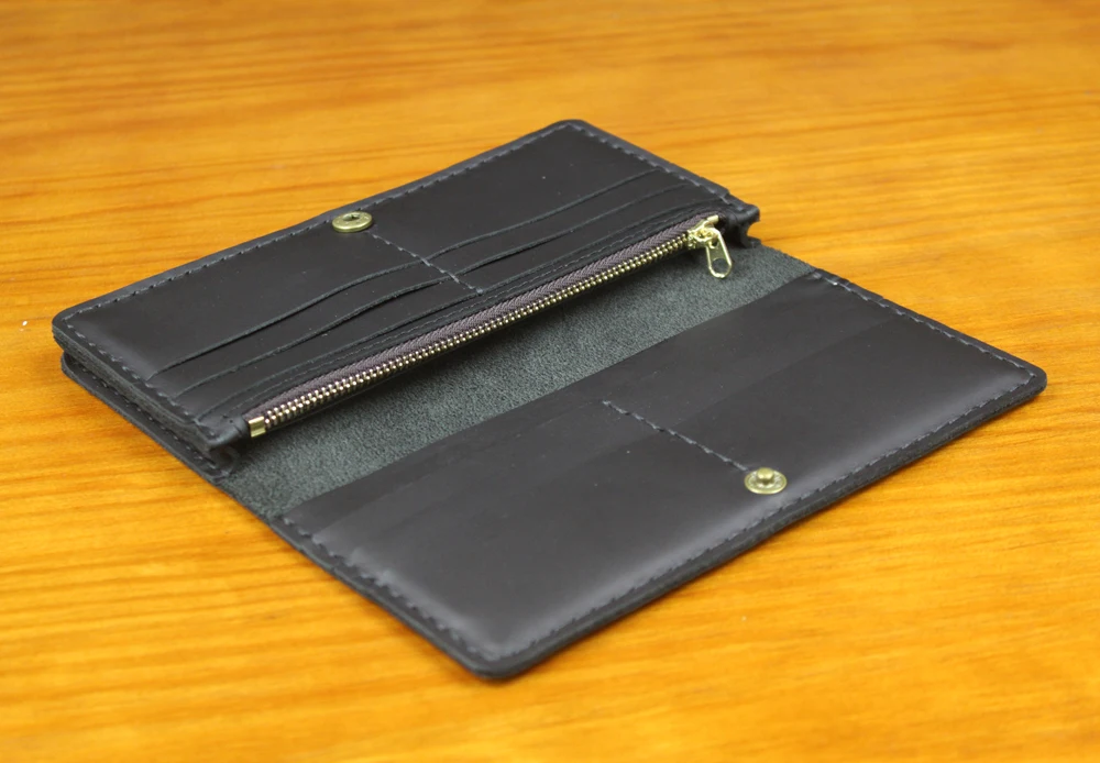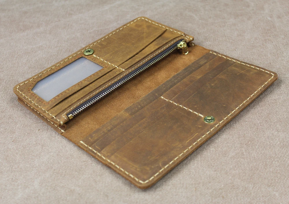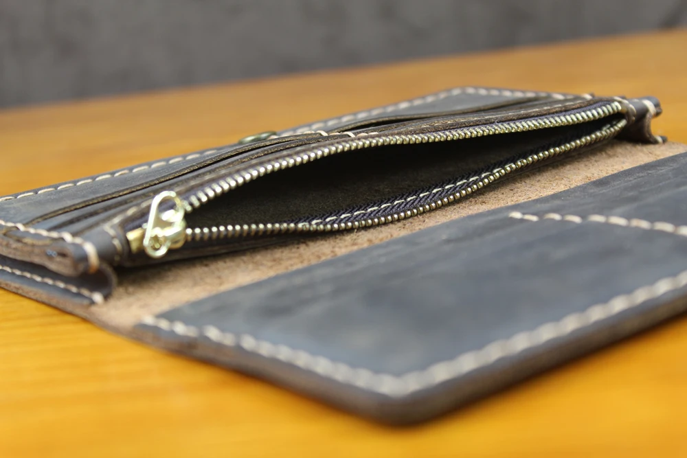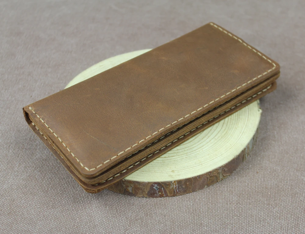 Luxury Handmade Genuine Leather Long Wallet Men Bifold Purse Clutch Wallet Money Clip Phone Case Money Bag