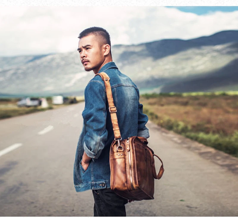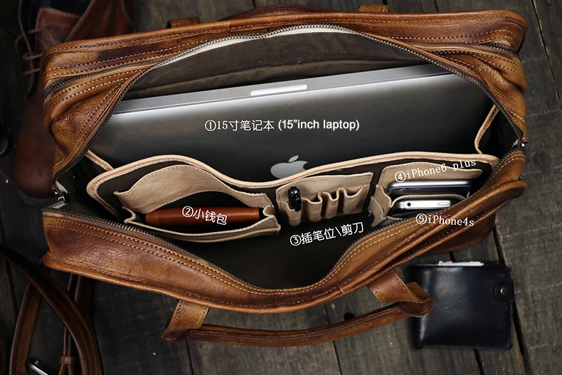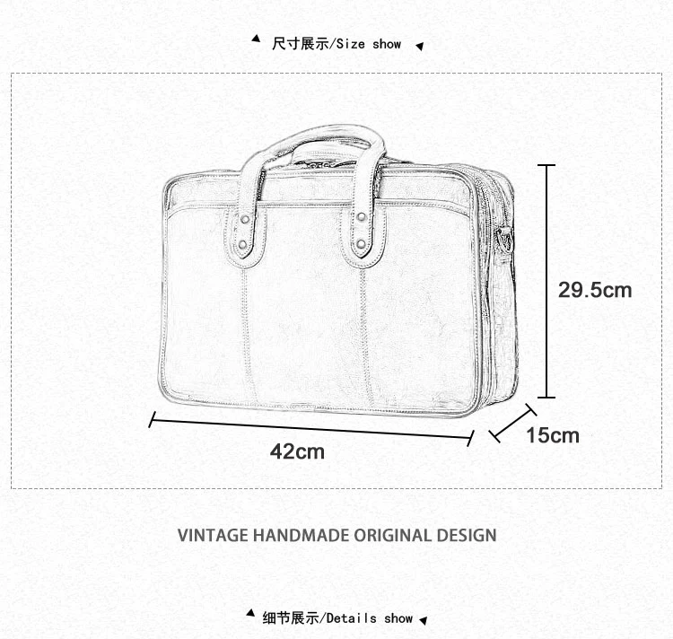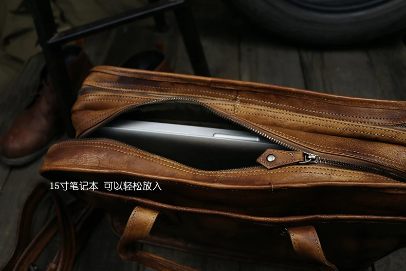 Luxury Vintage Men Genuine Leather Briefcases Leather Men Briefcase Big Business Bag Male 15"Laptop Bag Tote Handbag office Bag