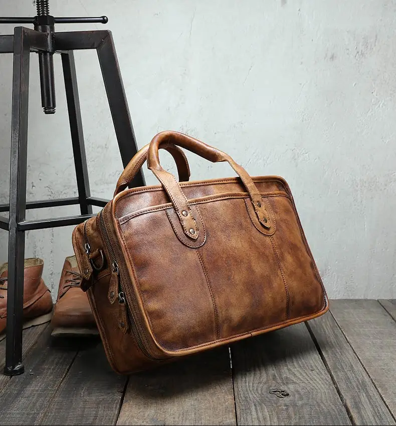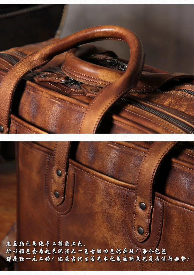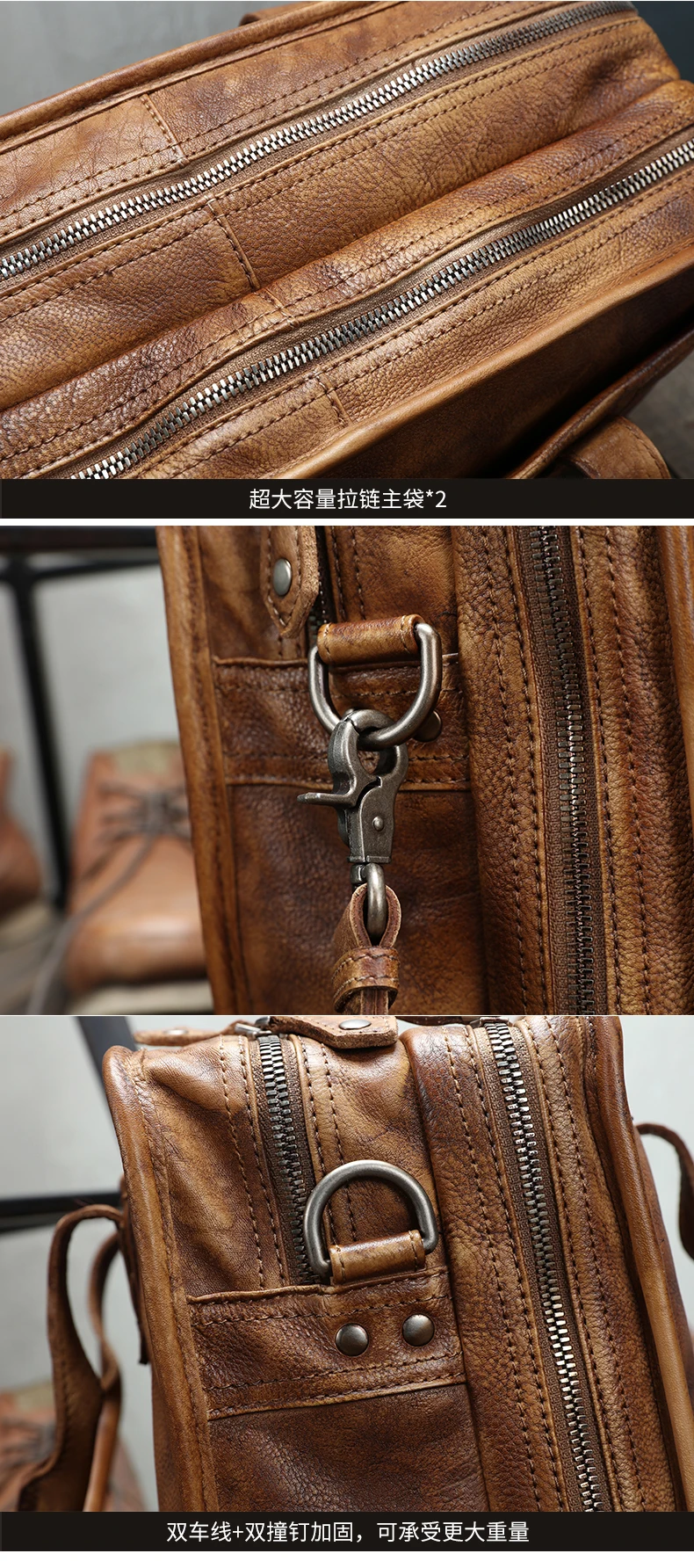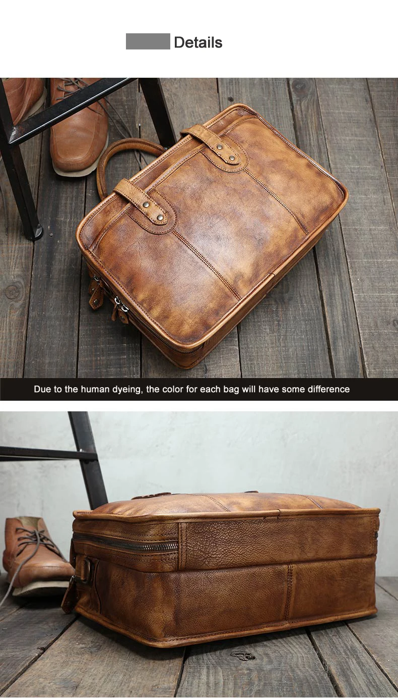 Luxury Vintage Genuine Leather Men Briefcase Large Leather Business Briefcase 15.6"Laptop Bag Document attache Case Tote Handbag