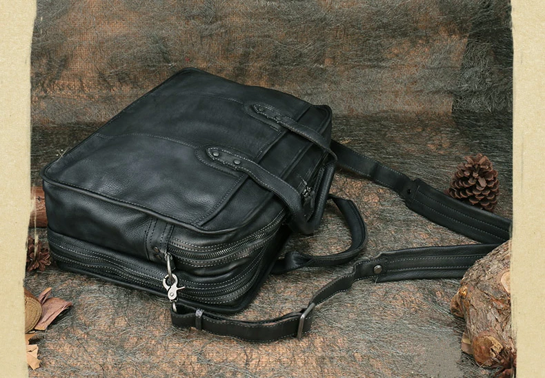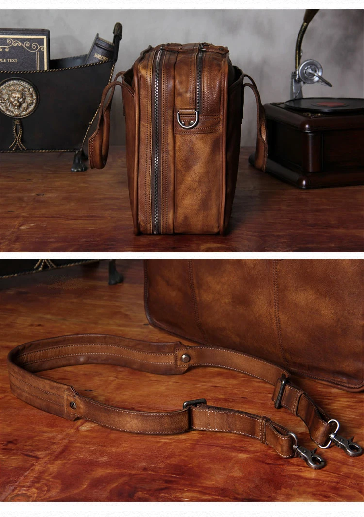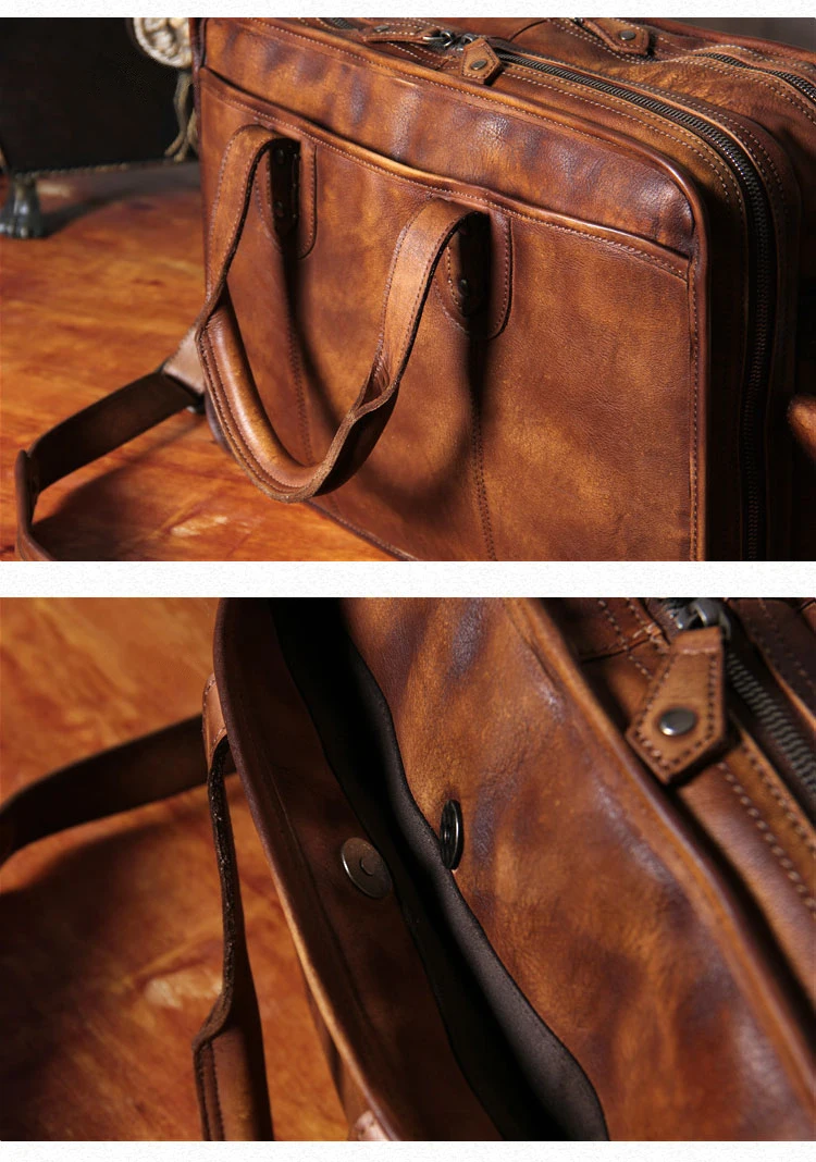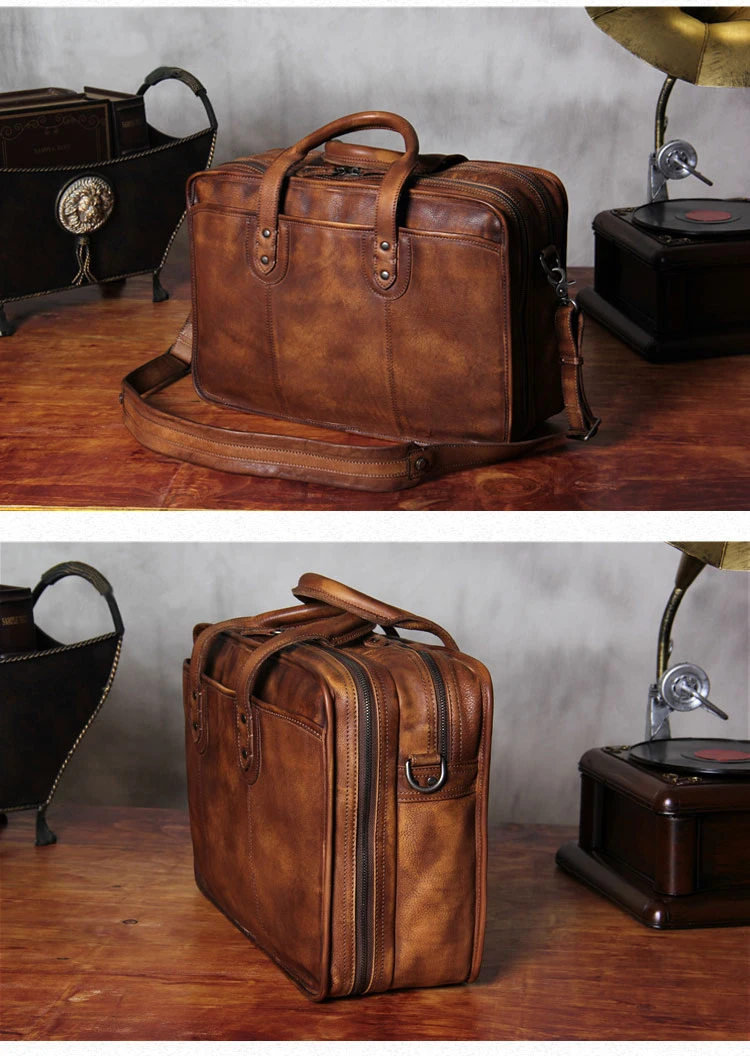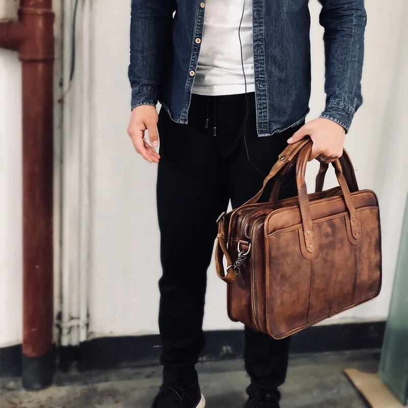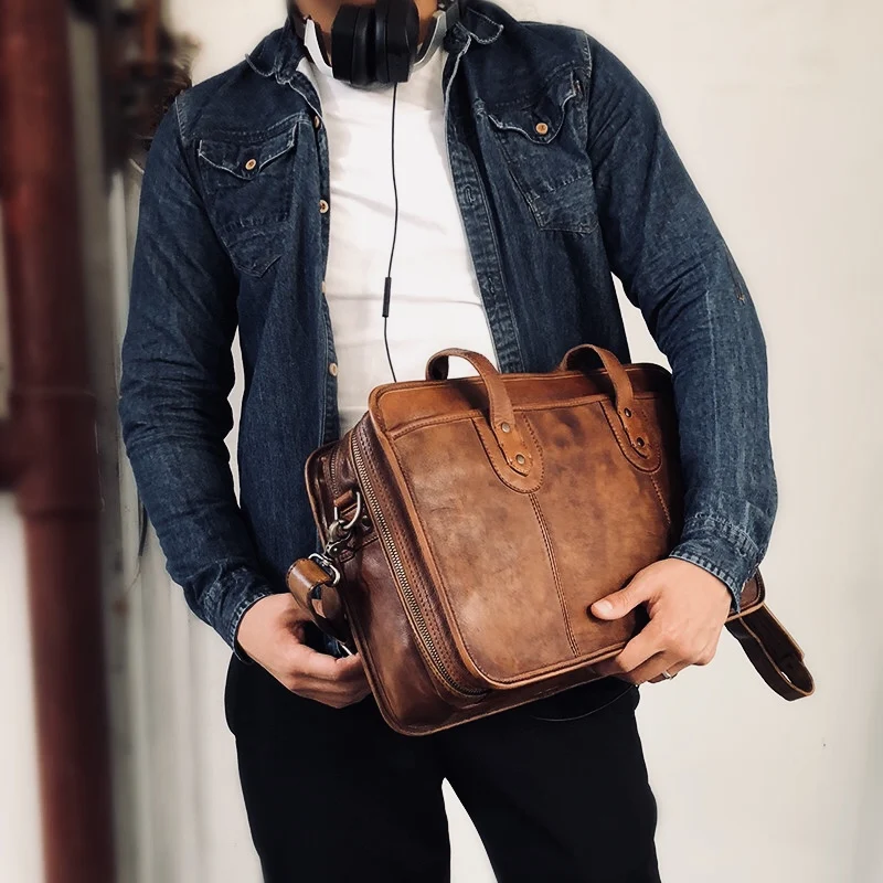 Luxury Vintage Genuine Leather Men Briefcase Large Leather Business Briefcase 15.6"Laptop Bag Document attache Case Tote Handbag
