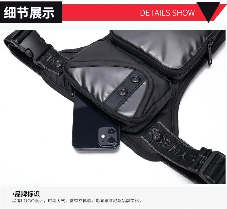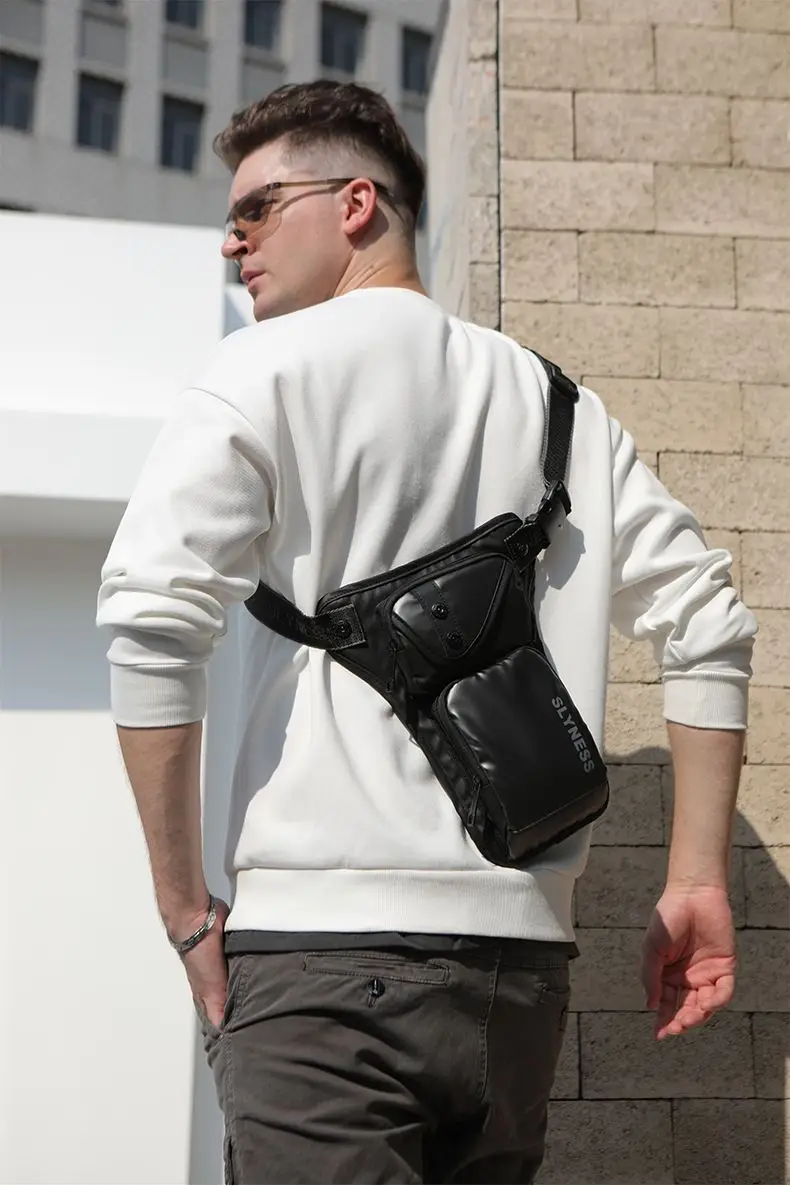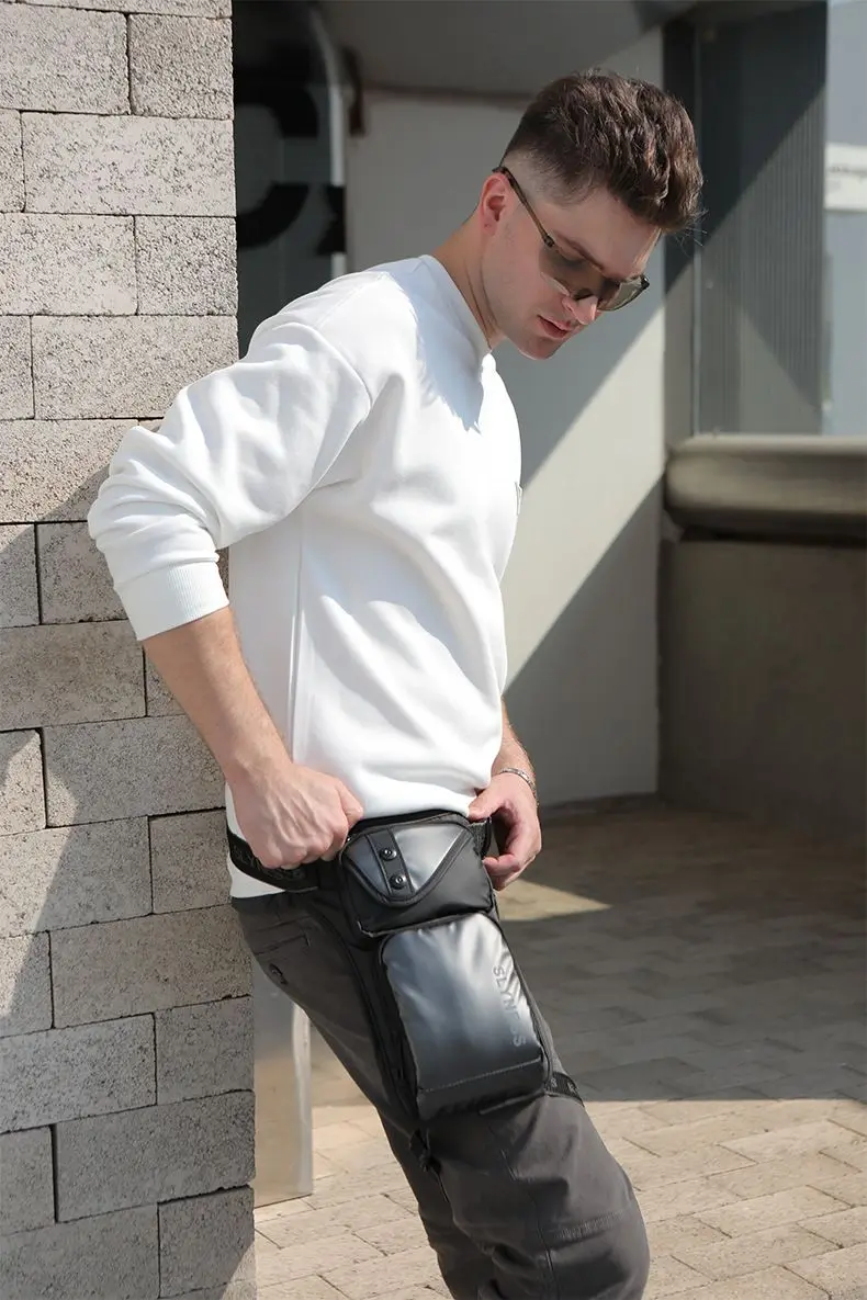Male Fanny Pack Waist Pack for Motorcycle Rider Waterproof Nylon Sports Male Messenger Cross Body Bum Hip Belt Thigh Bags