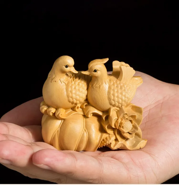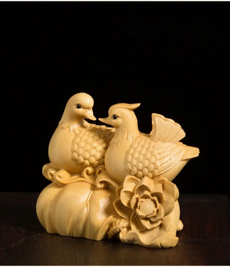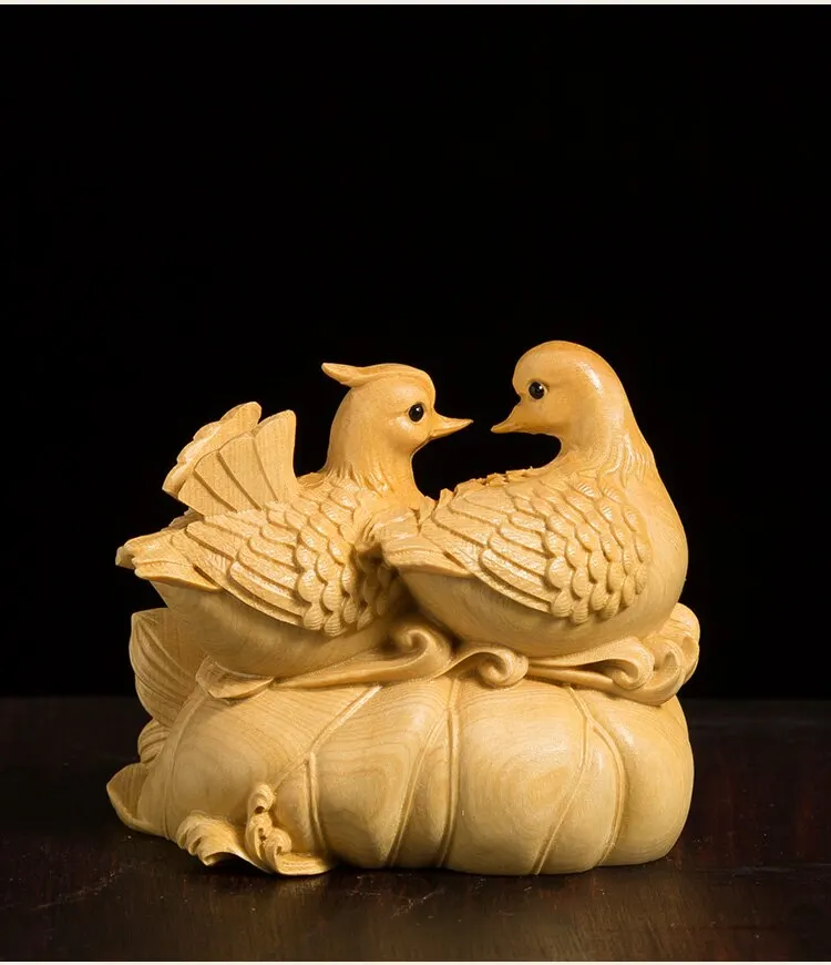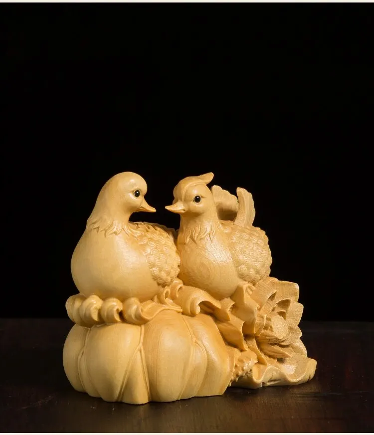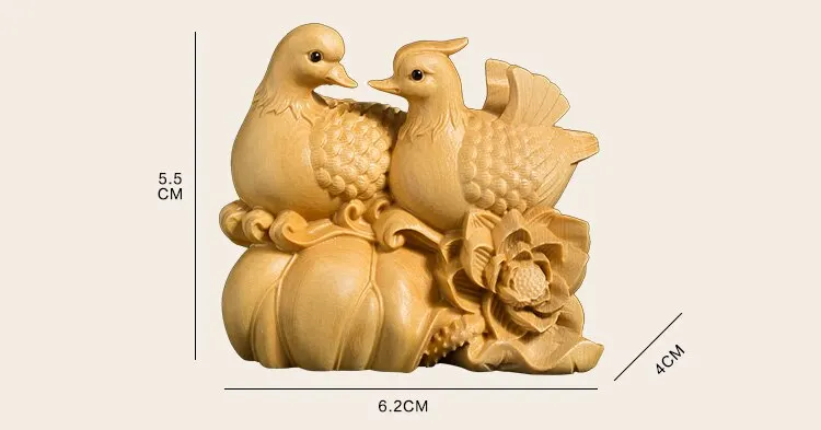 Mandarin Duck Statue 6CM Wood Statue Arts Crafts Home Decoration Solid Wood Statue Lucky Mascot Chinese Wedding Gifts