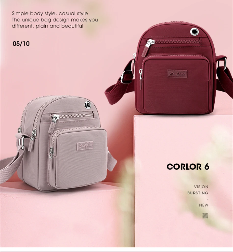 Many Pockets Women's Shoulder Bag Waterproof Nylon Handbag Travel Crossbody Sac Large Capacity Top-handle Bags for Ladies 2022