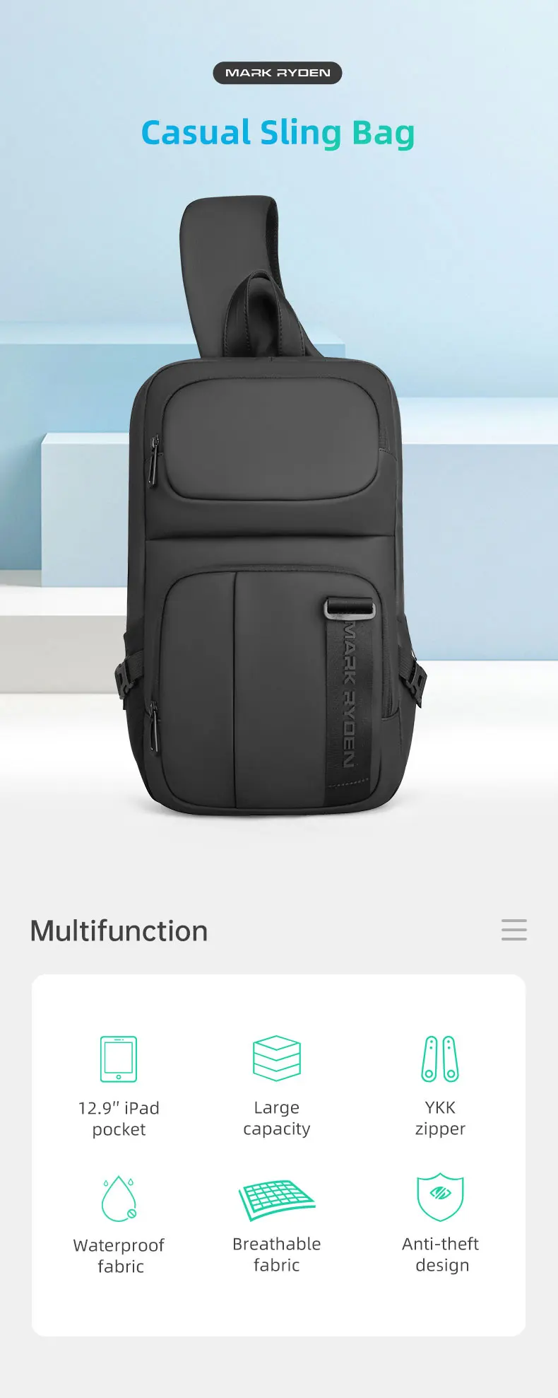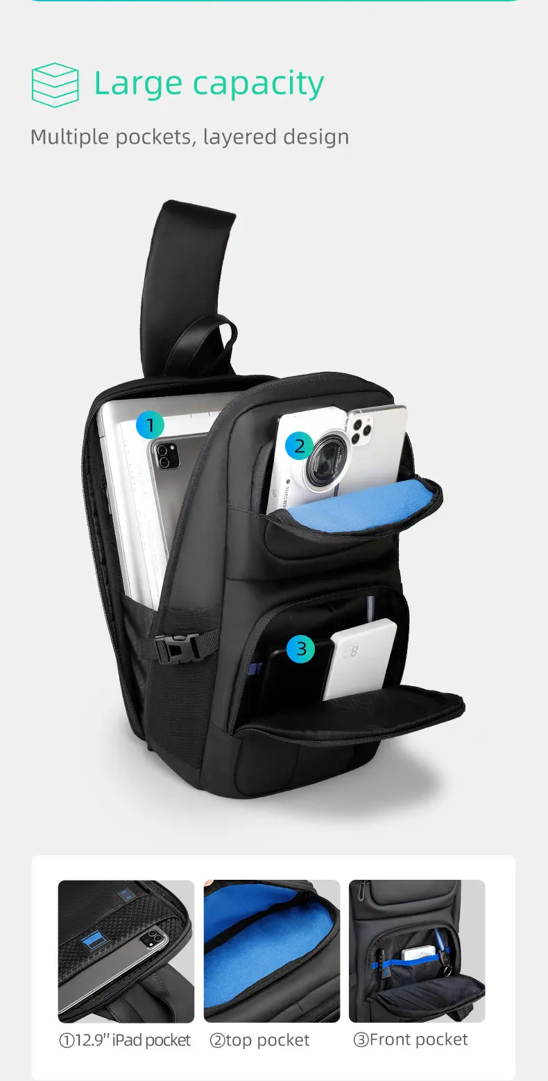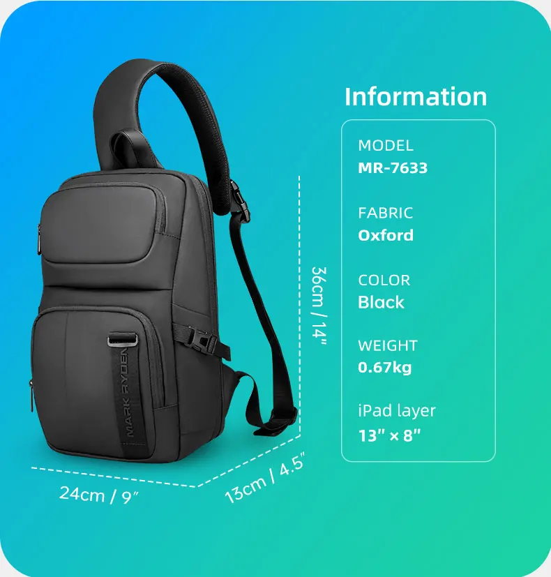 Mark Ryden Large Capacity Men Oxford Waterproof Multifunction Shoulder Bags Messenger Chest Sling Crossbody Bags Travel for Male