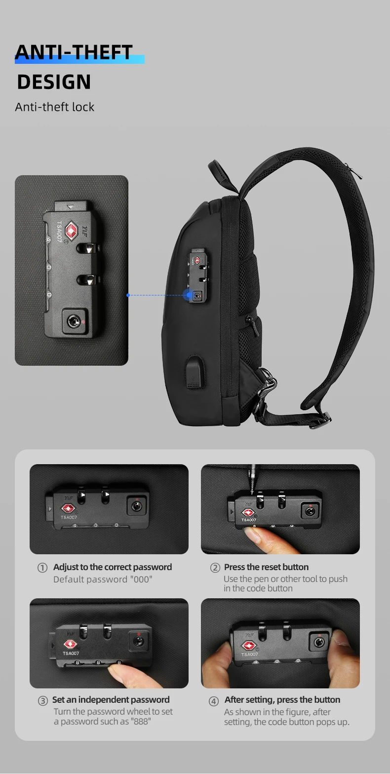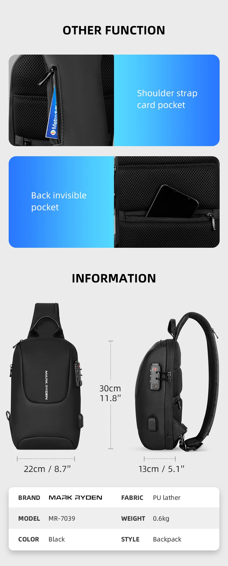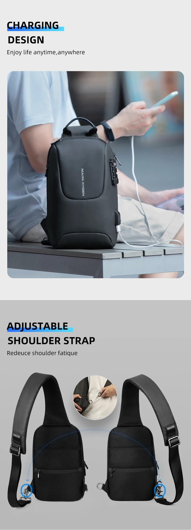 Mark Ryden Sling Bag Anti-theft TSA Lock Crossbody Bag for Men Shoulder Messenger Bags Male Waterproof Short Trip Pack