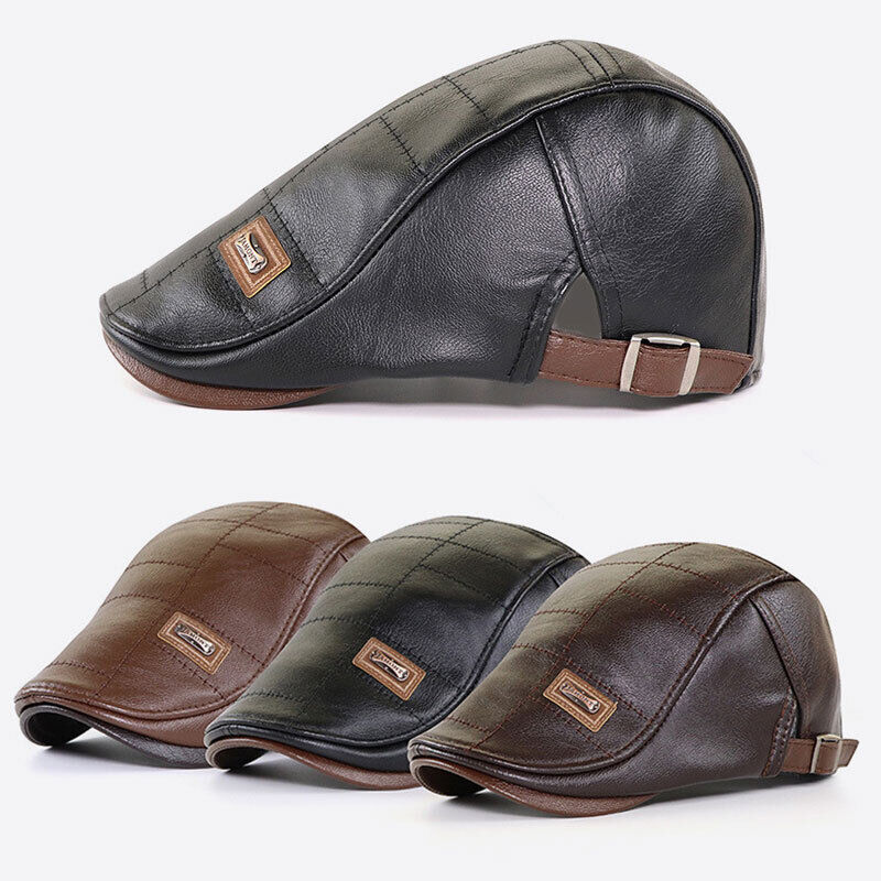 Men Beret Hat Leather Flat Cap Warm Autumn Winter Male Gatsby Retro Beret Caps