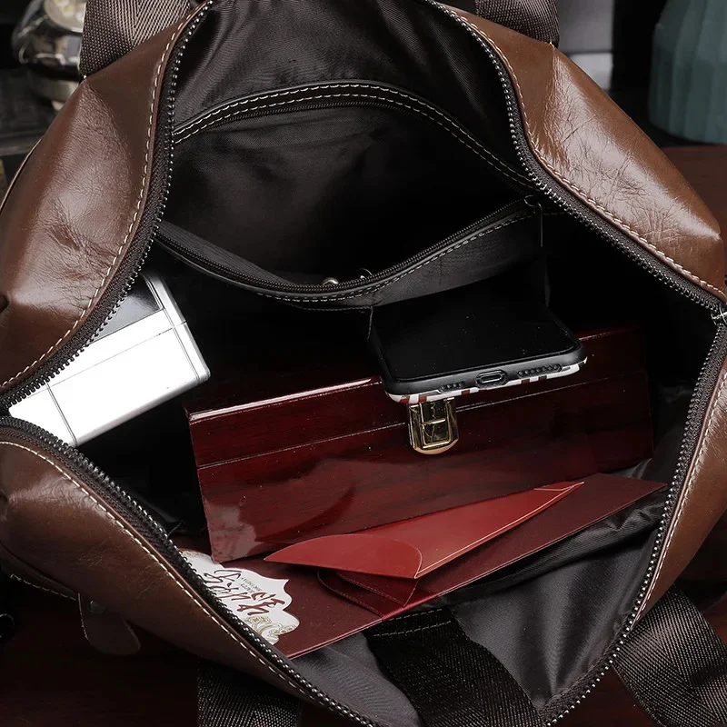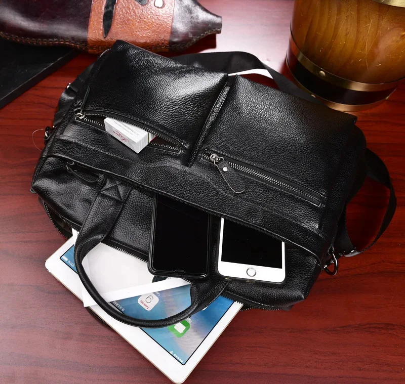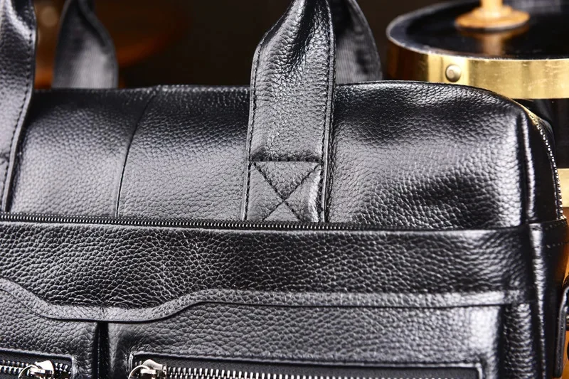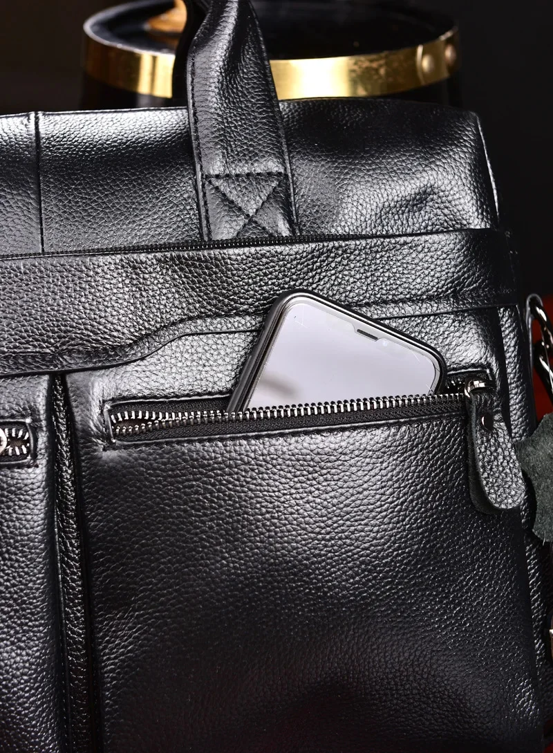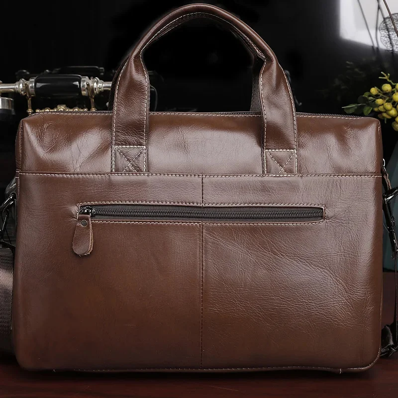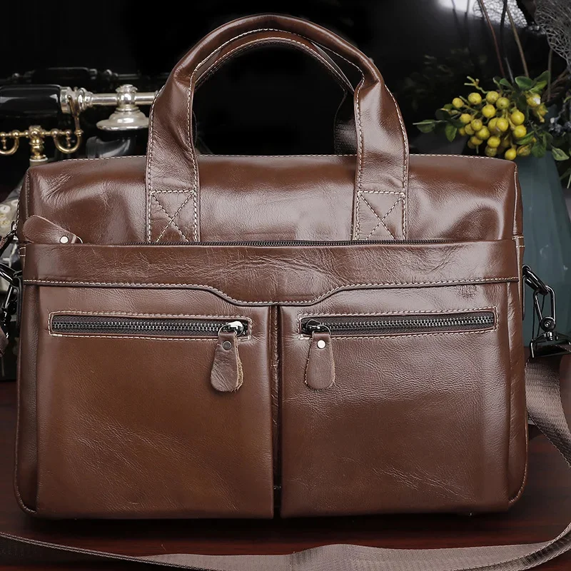 Men Genuine Briefcase Large Business Office Handbag Male Leather 14" Laptop Shoulder Bags Men's Travel Messenger Bag