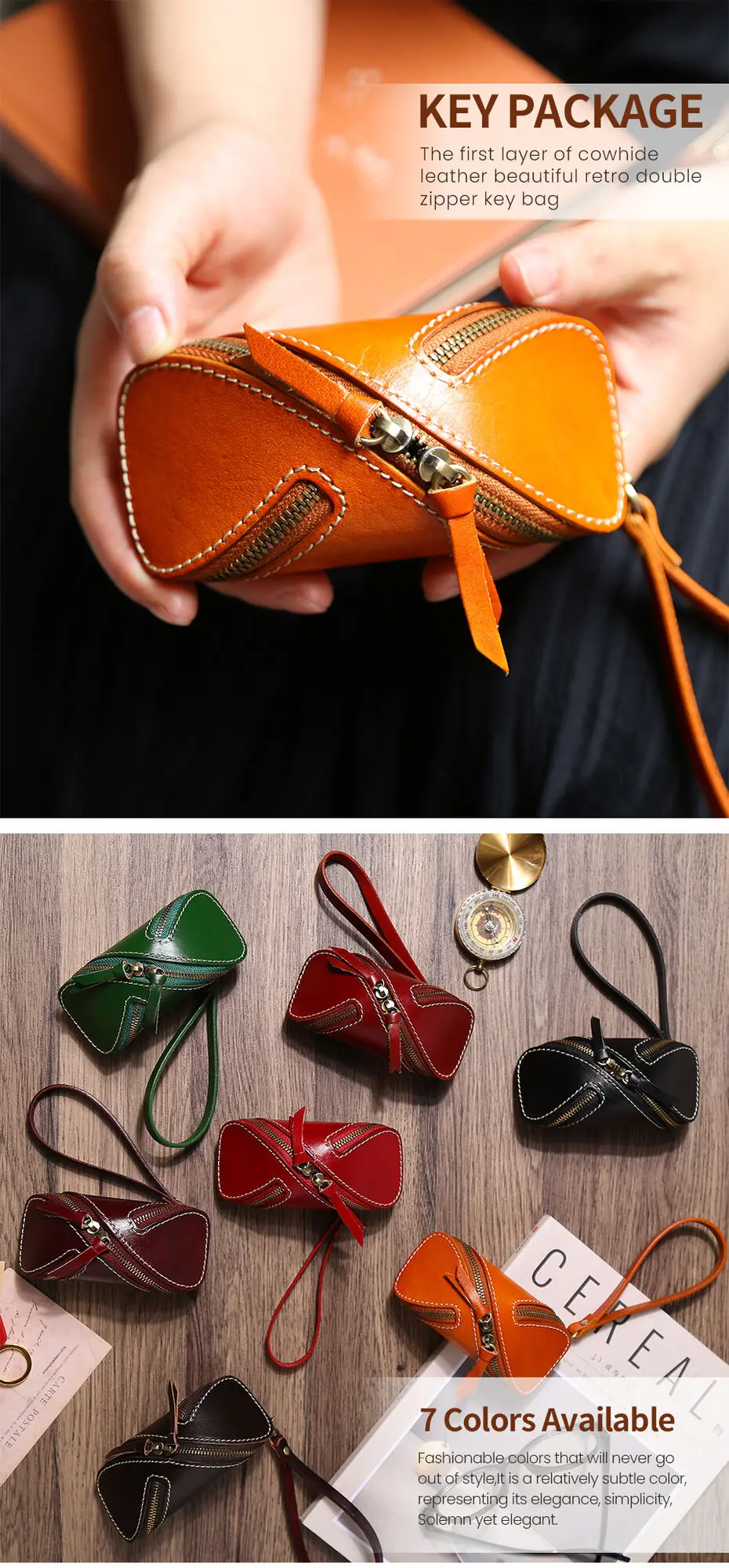 Men Genuine Cow Leather Bag Car Key Wallets Fashion Women Housekeeper Holders Keychain Key Case Keys Pouch Unisex 2021