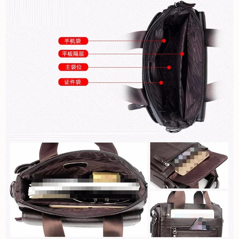 Men Handbag Top Handle Messenger Genuine Leather Business Briefcase Real Cowhide Male Tote Cross body Shoulder Bag