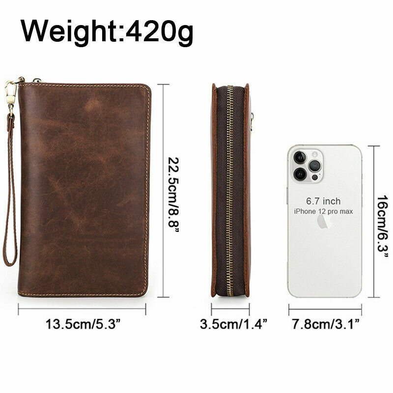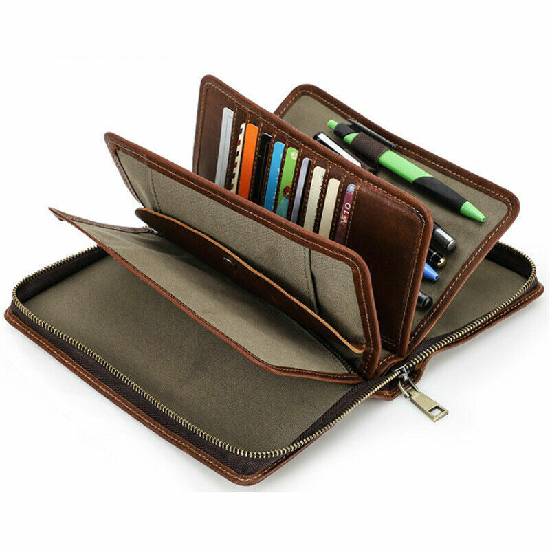 Men Leather Clutch Bag Wallet Zipper Purse Money Card Passport Pens Coins Holder