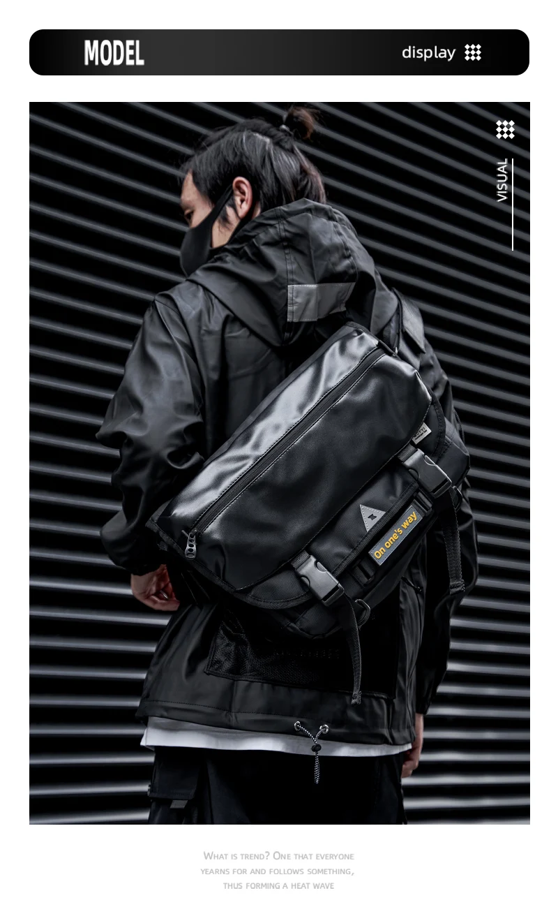 Men Motorcycle Cycling Messenger Bags Waterproof Big Crossbody Shoulder Bag Personalized Hip Hop Street Travel Cross Bag Male