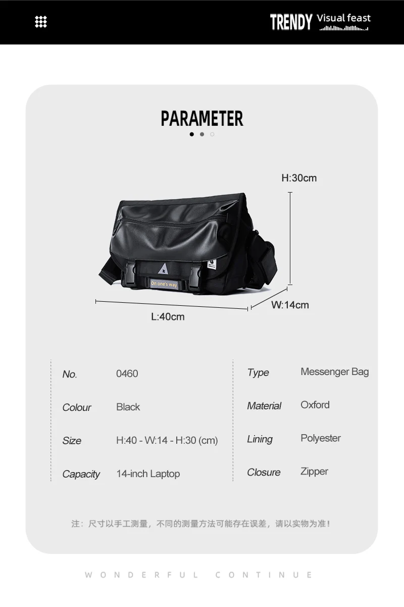 Men Messenger Bags Waterproof Big Crossbody Shoulder Bag Famous Brands High Quality Men's Hip Hop Street Travel Bag Male