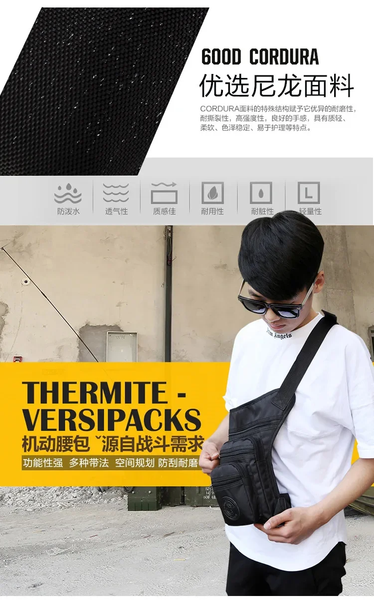 Men Nylon Fanny Waist Hip Pack Bum Belt Bag Purse Multi-function Travel Male Messenger Shoulder Motorcycle Rider Drop Leg Bags