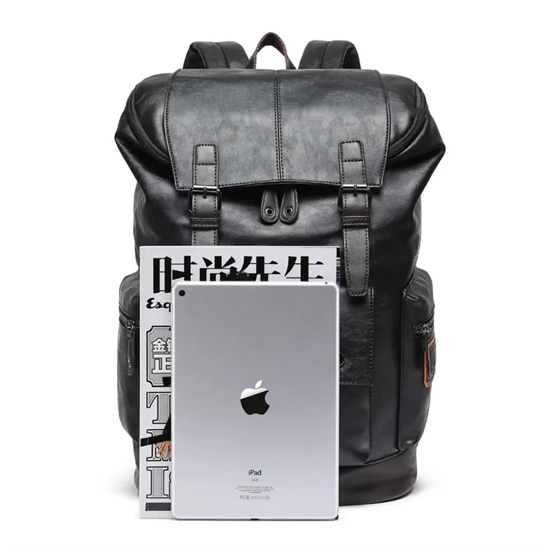 Men Pu Leather Backpack Men's Large Antitheft Travel Backpack Laptop Bag Black Bagpack Boy Big School Male Business Shoulder Bag