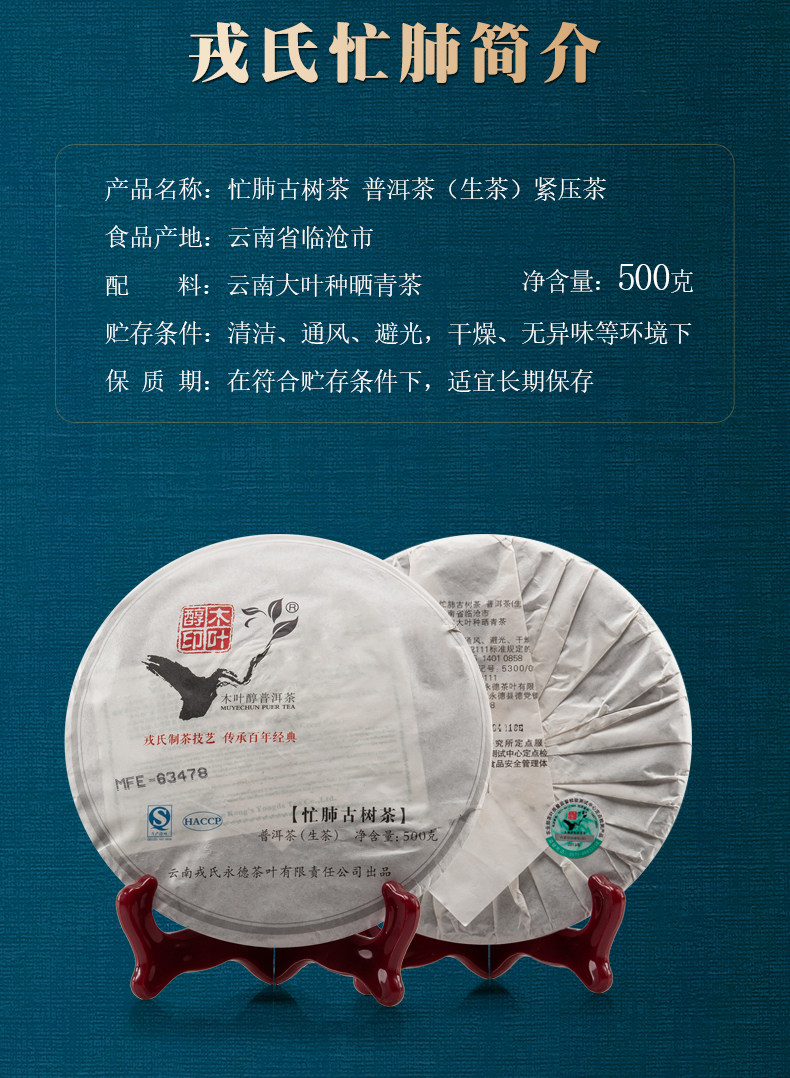 MENGKU Mangfei Ancient Tree Raw Pu'er Muyechun Puer Tea Pu-erh Tea 2013 500g Raw
