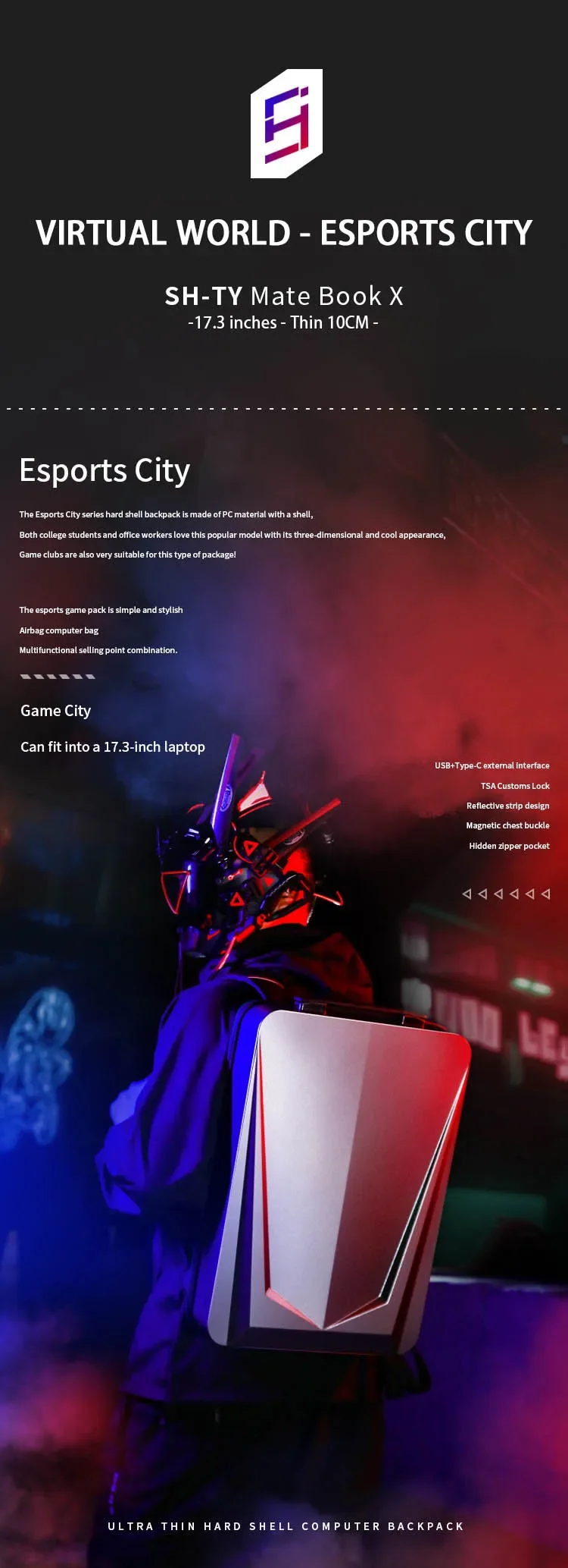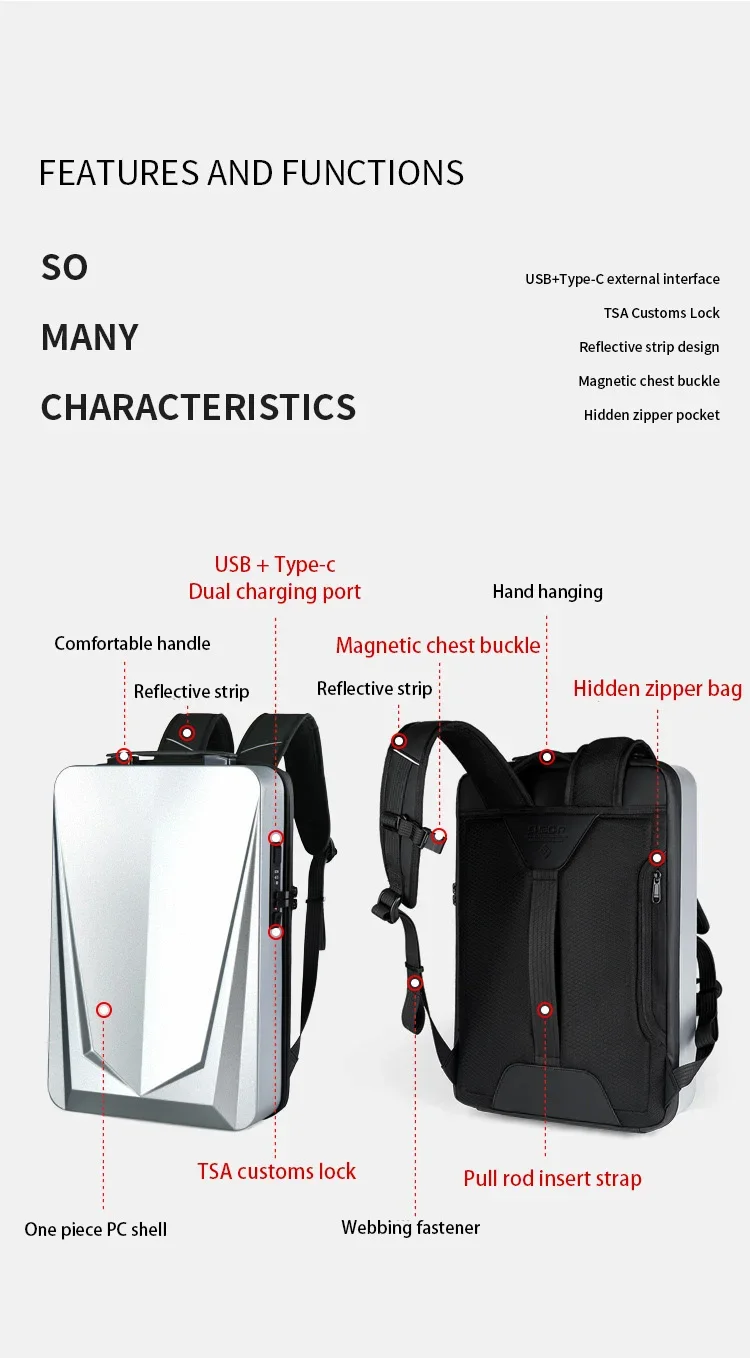 Men's PC Hardshell Backpack Trendy Cool E-sports Backpack