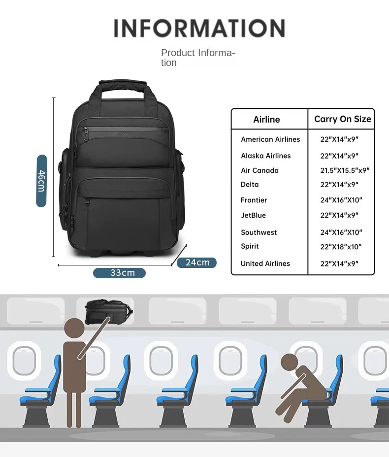 Men's Rolling Luggage Handbag Trolley Bag with wheels Carry on Hand Luggage Travel Suitcases Business Laptop Bag For Men
