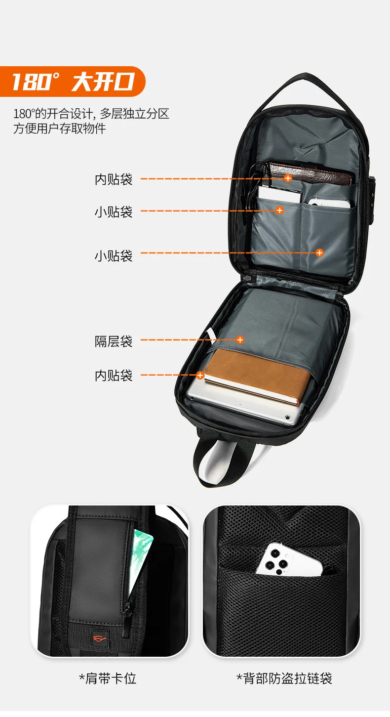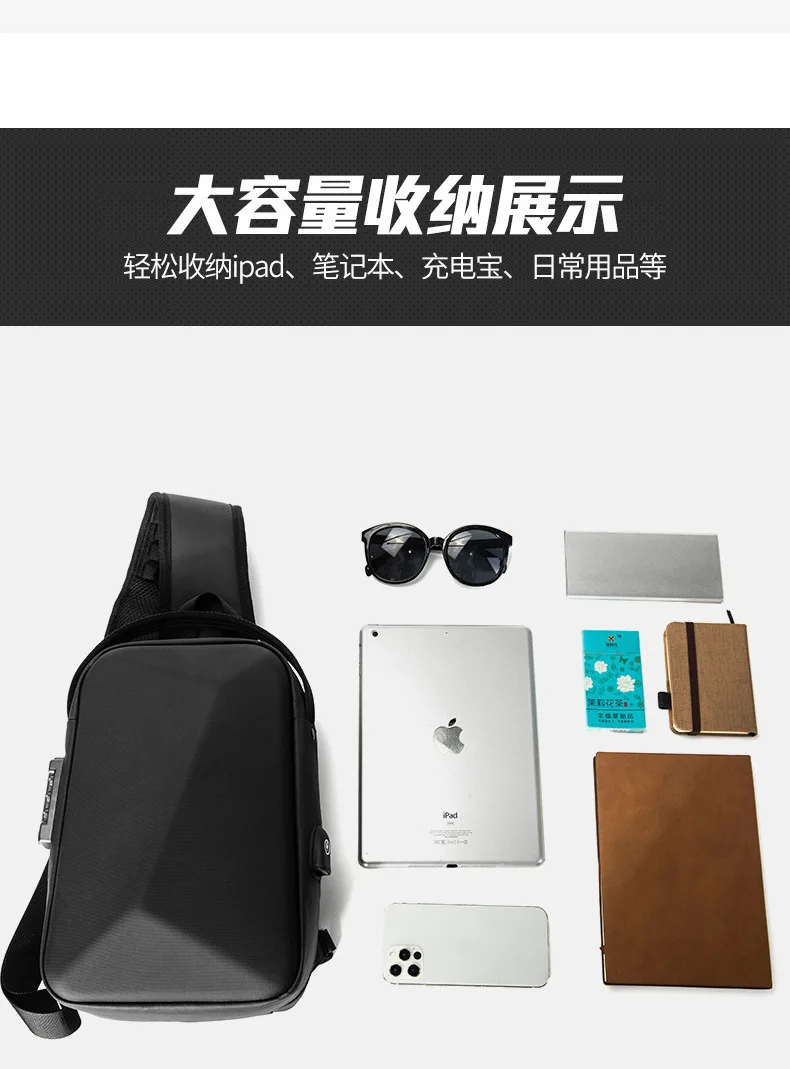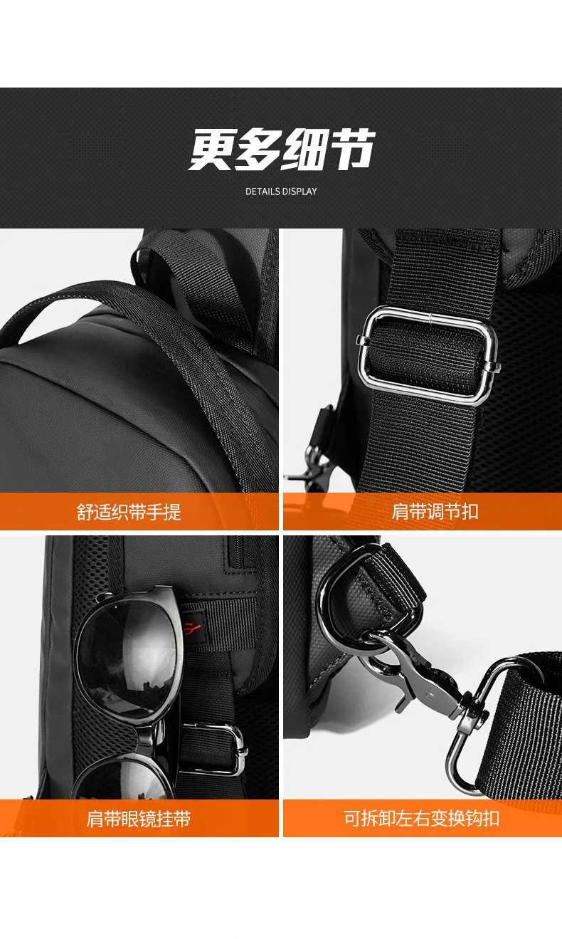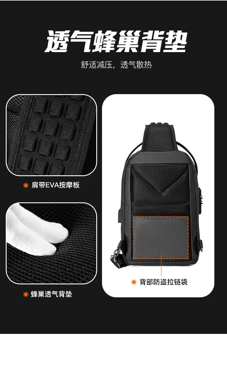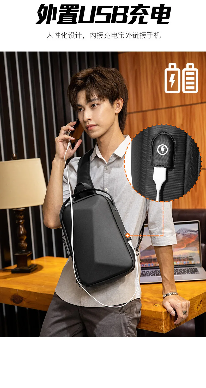 Men's Waterproof Shoulder Bag Male Multifunction Anti-theft Crossbody Bag Casual Short Trip USB Charging Sling Chest Pack