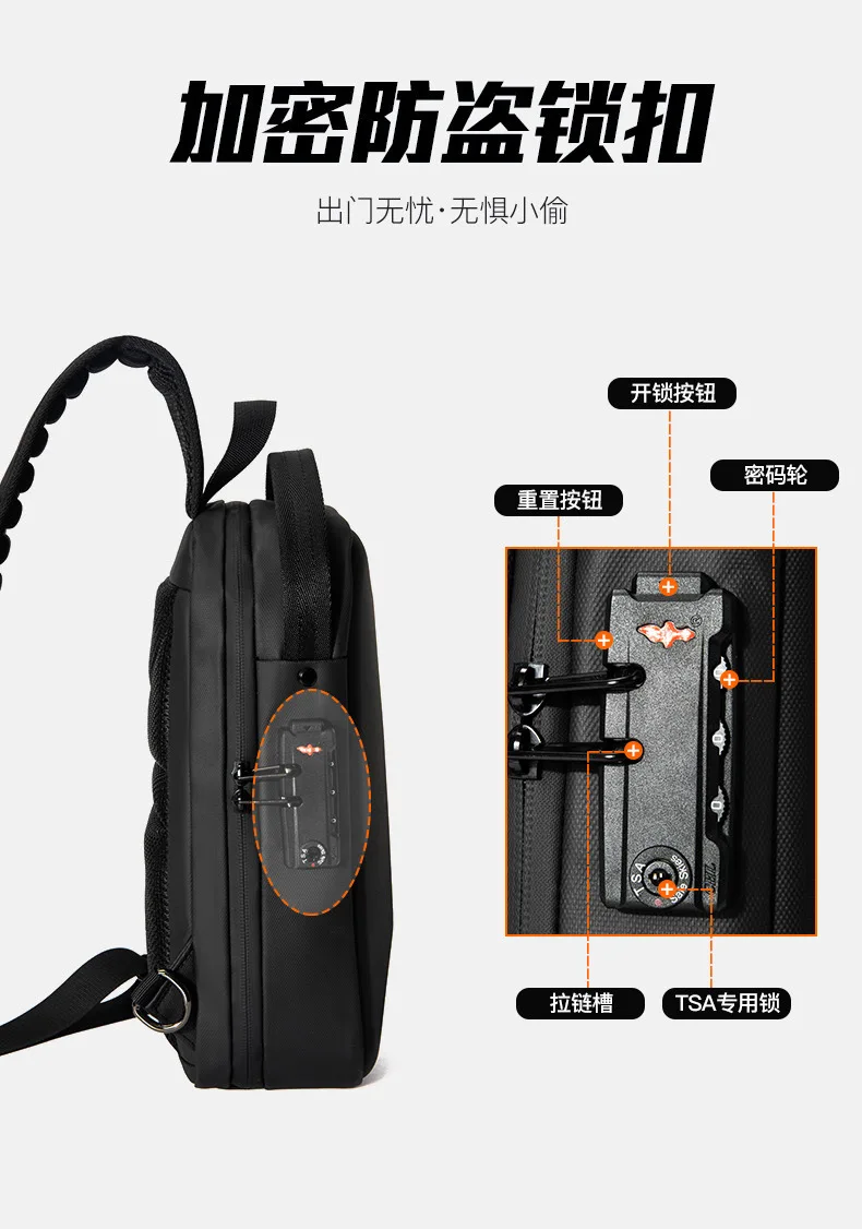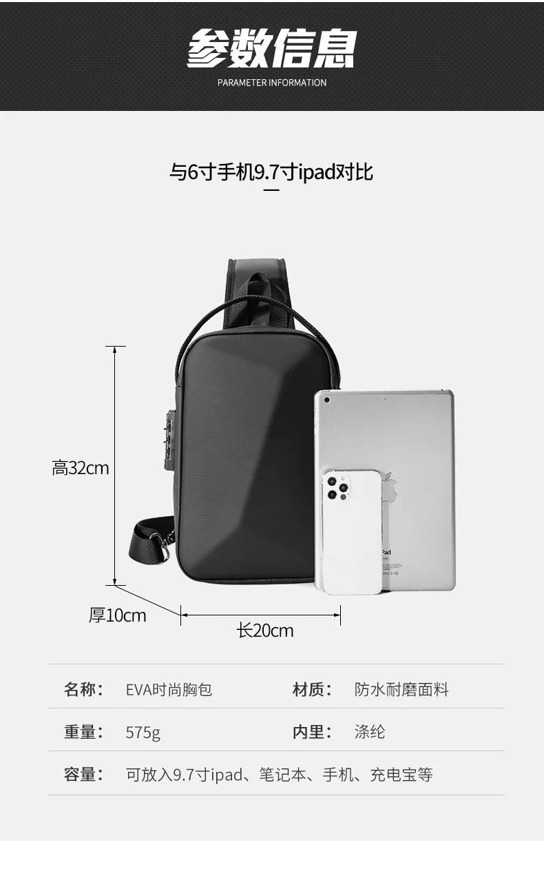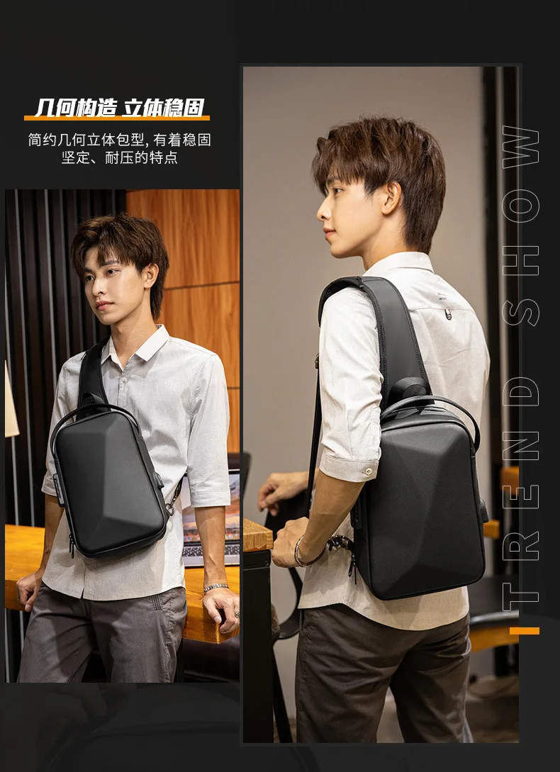 Luxury Men's Waterproof Shoulder Bag Male Multifunction Anti-theft Crossbody Bag Casual Short Trip USB Charging Sling Chest Pack