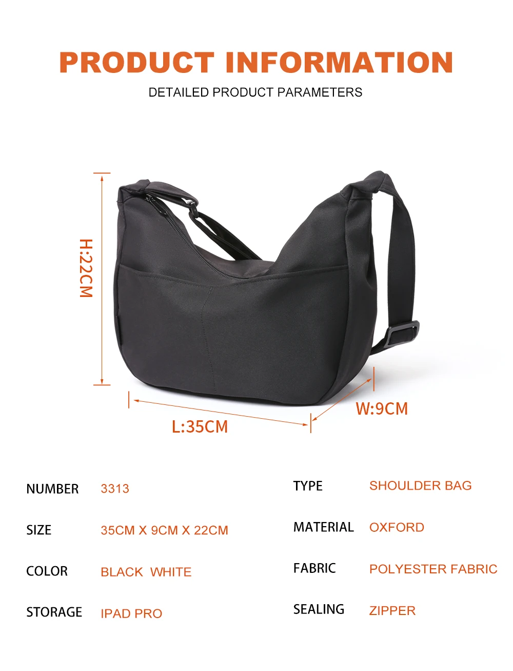 Messenger Bag Large Capacity 10 inch iPad Men and Women Fashion Waterproof Dumpling Bag Zipper Anti-theft Hobo Crossbody Bag