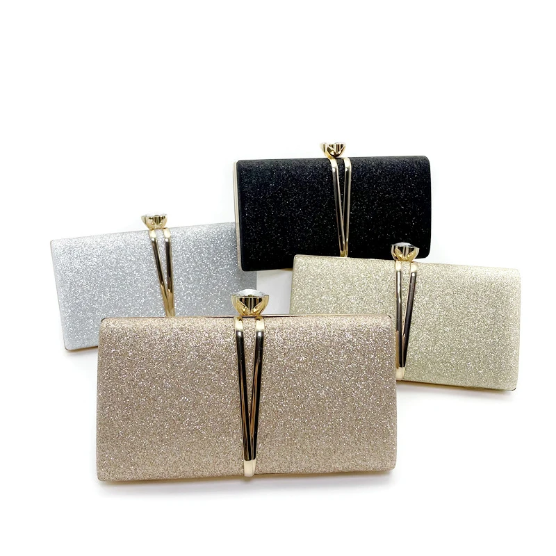 Metal Chain Evening Bags Sequined Prom Party Clutch Luxury Gift Mini Handbags for Wedding New Fashion Female Shoulder Bag 2024