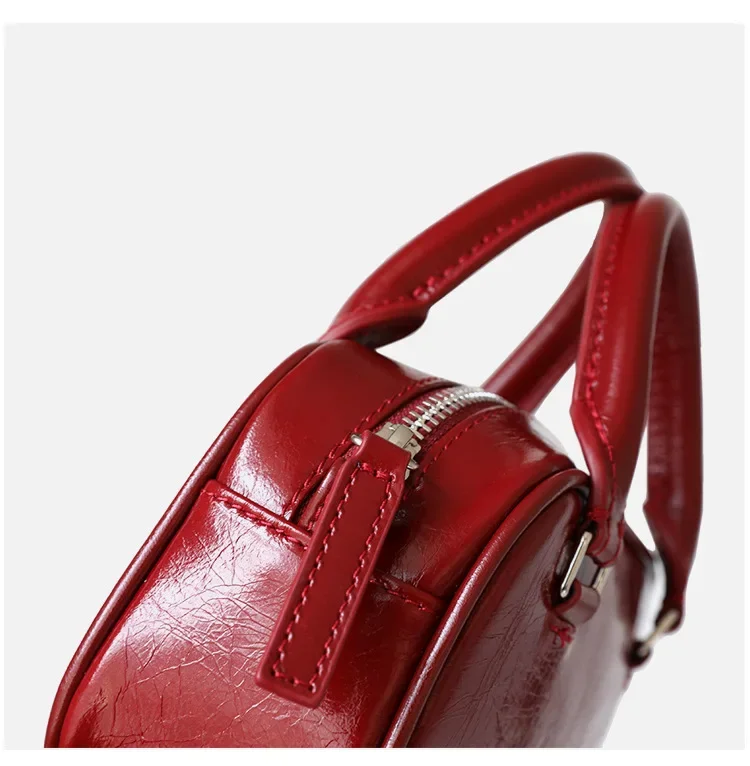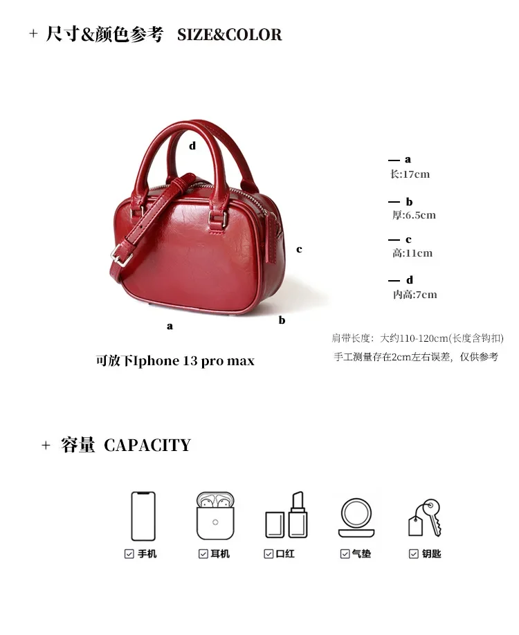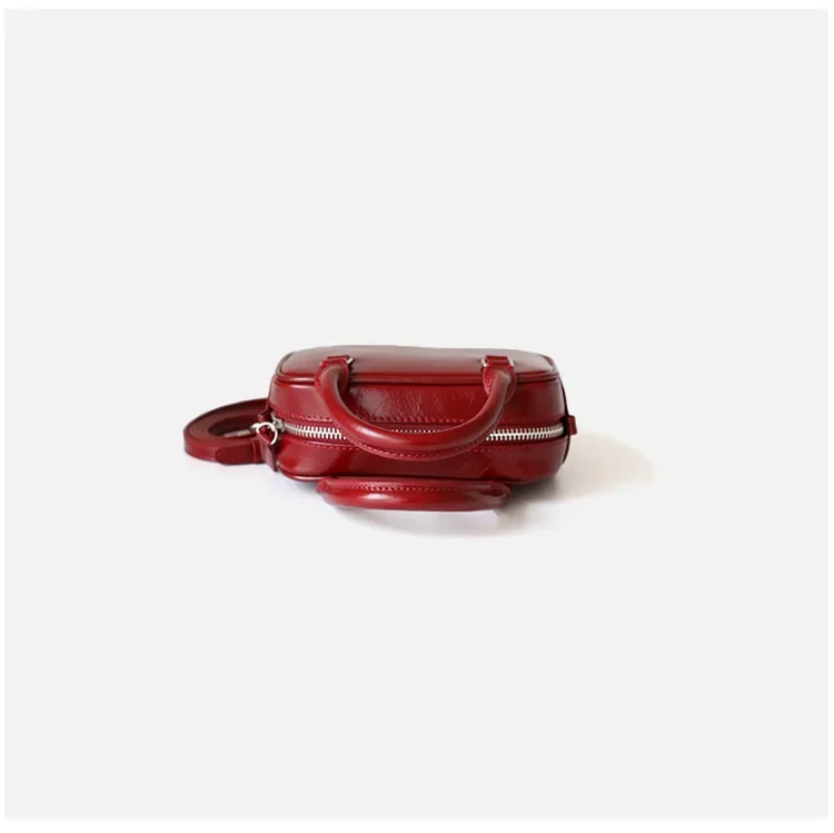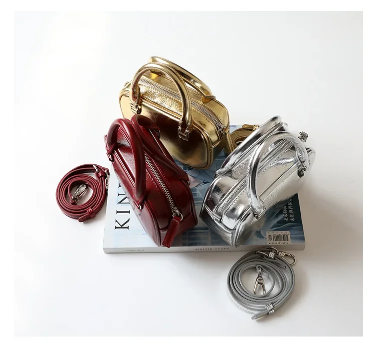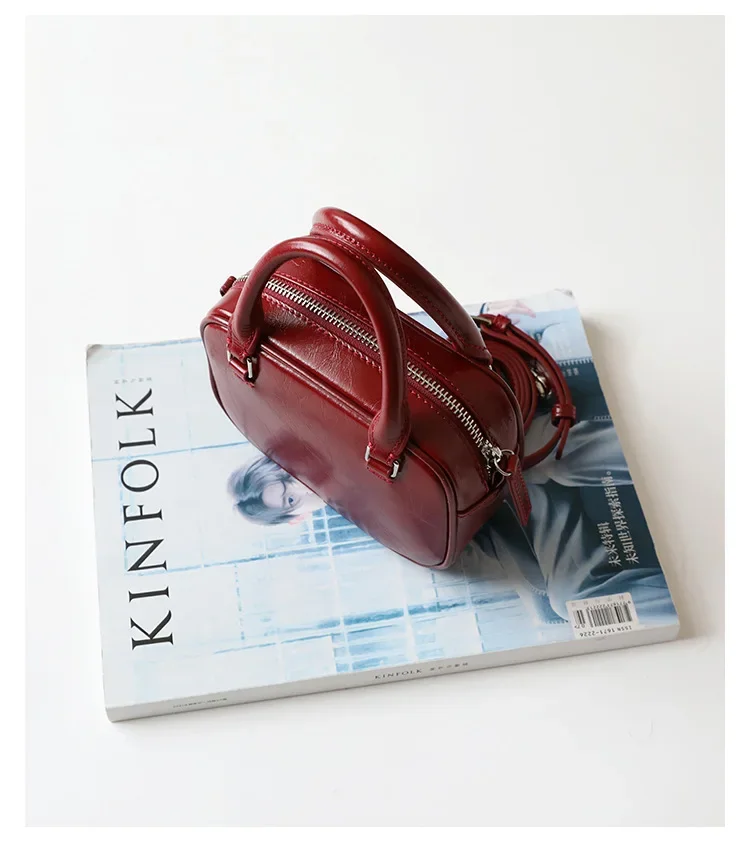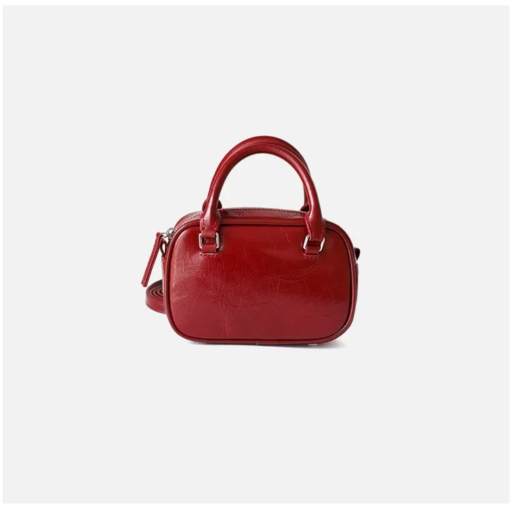 Mini Boston Small Square Bag Fashionable Mobile Phone handBag Crossbody One Shoulder Genuine Leather Women's package