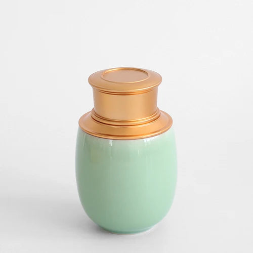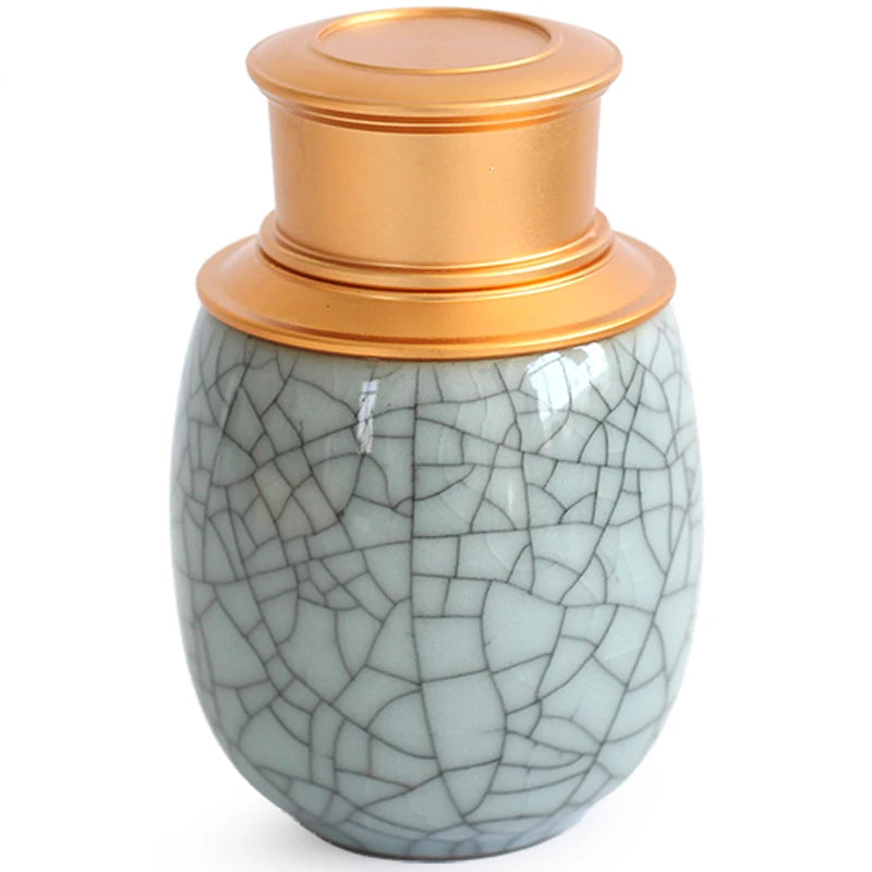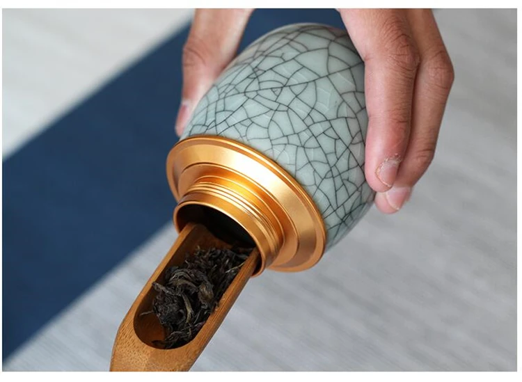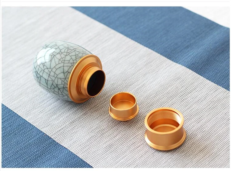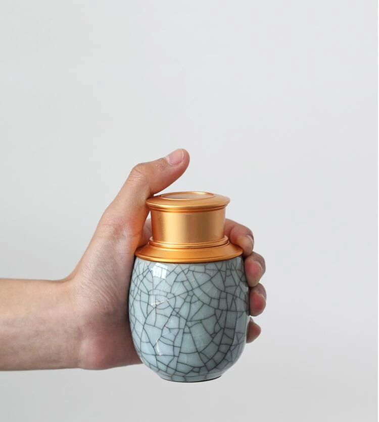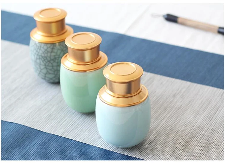 Mini Travel Portable Sealed Can, Celadon Tea Caddy Ceramic Tea Box, Metal Tin Can, Storage Canister