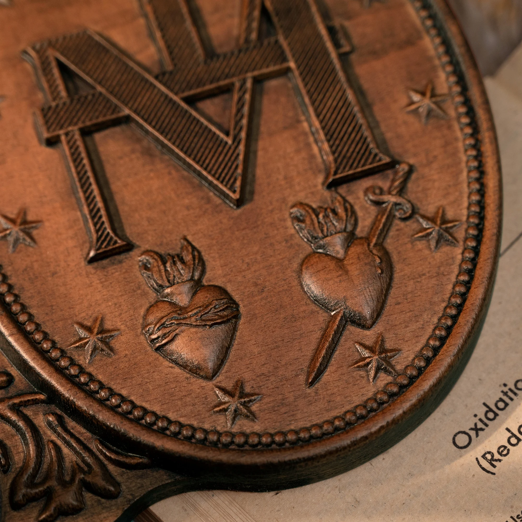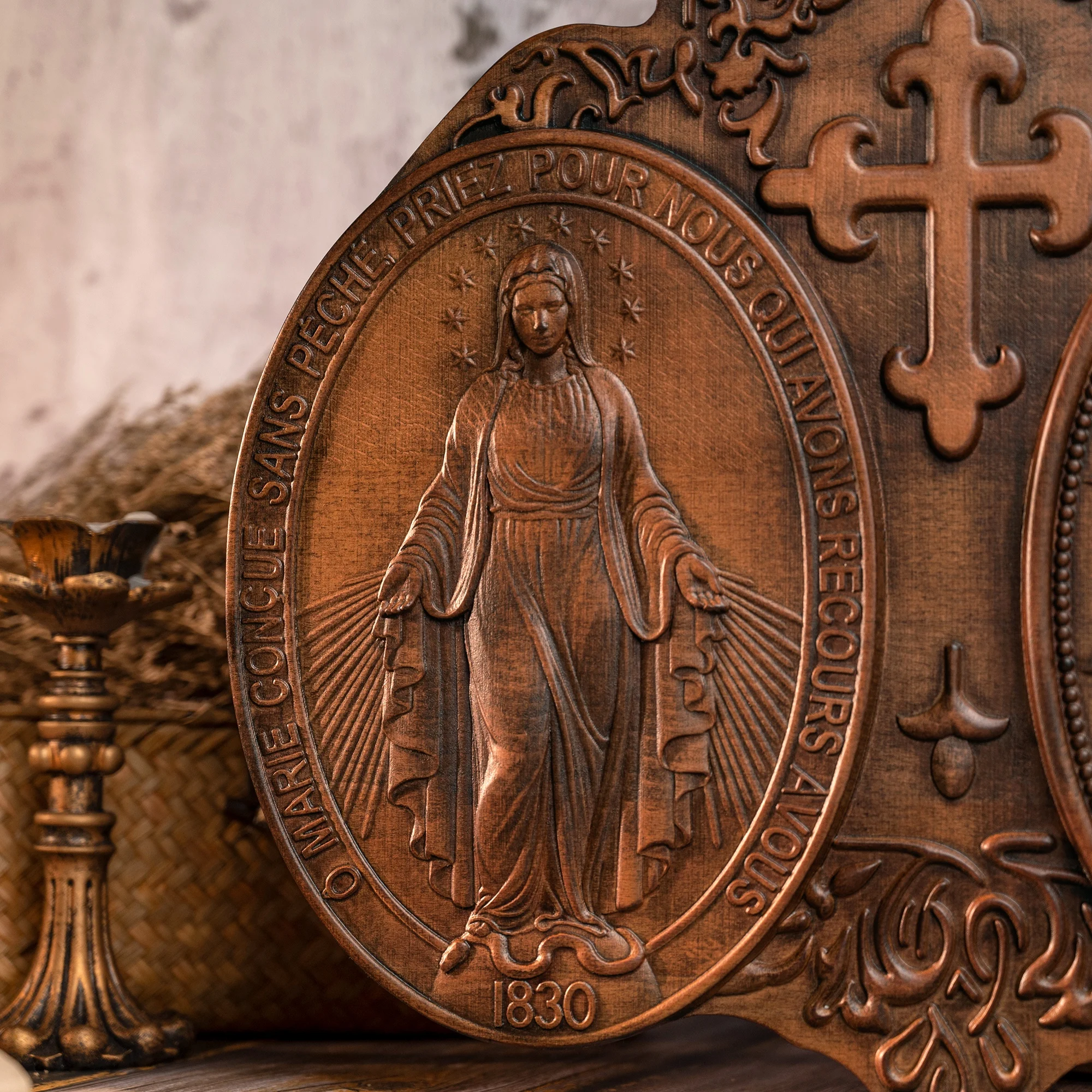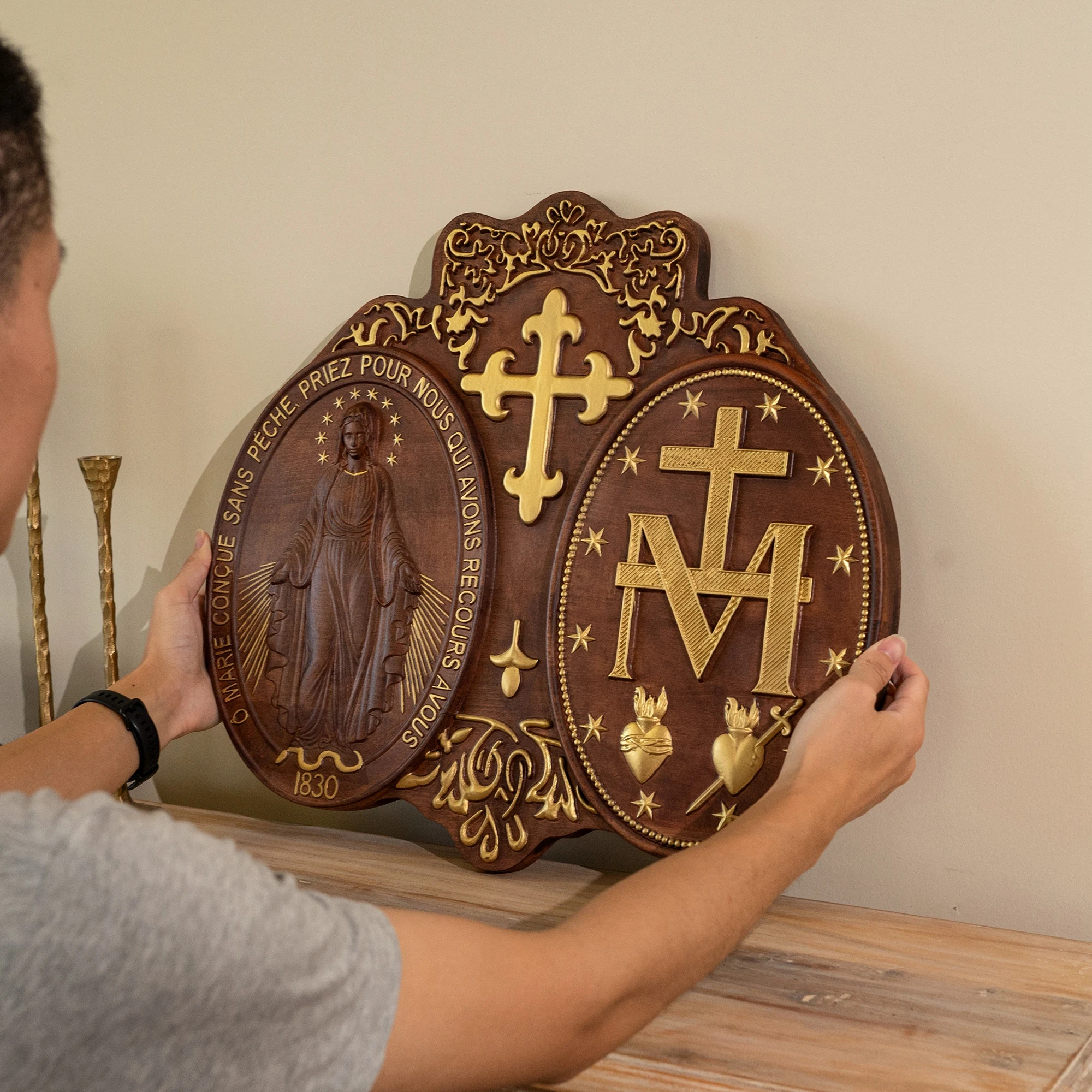 Christian Miracle Medal Catholic Medal of the Immaculate Conception Wall Wood Carving Decoration - Order of Our Lady