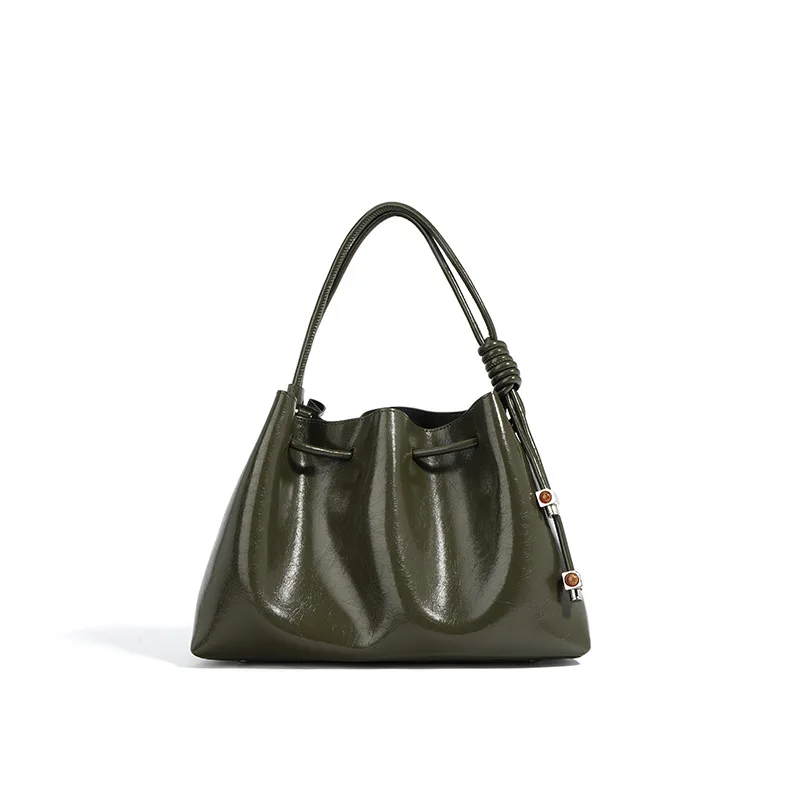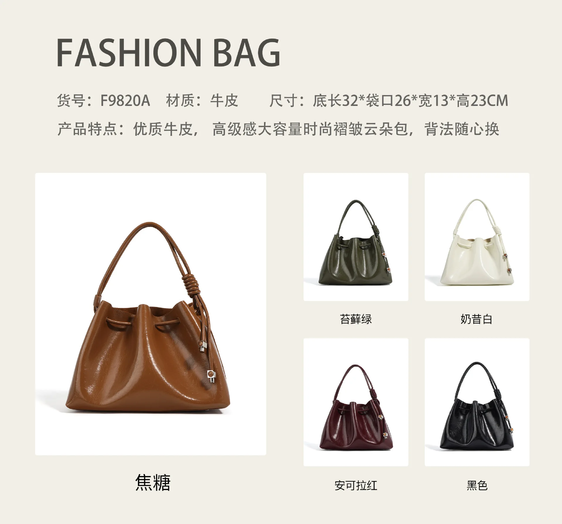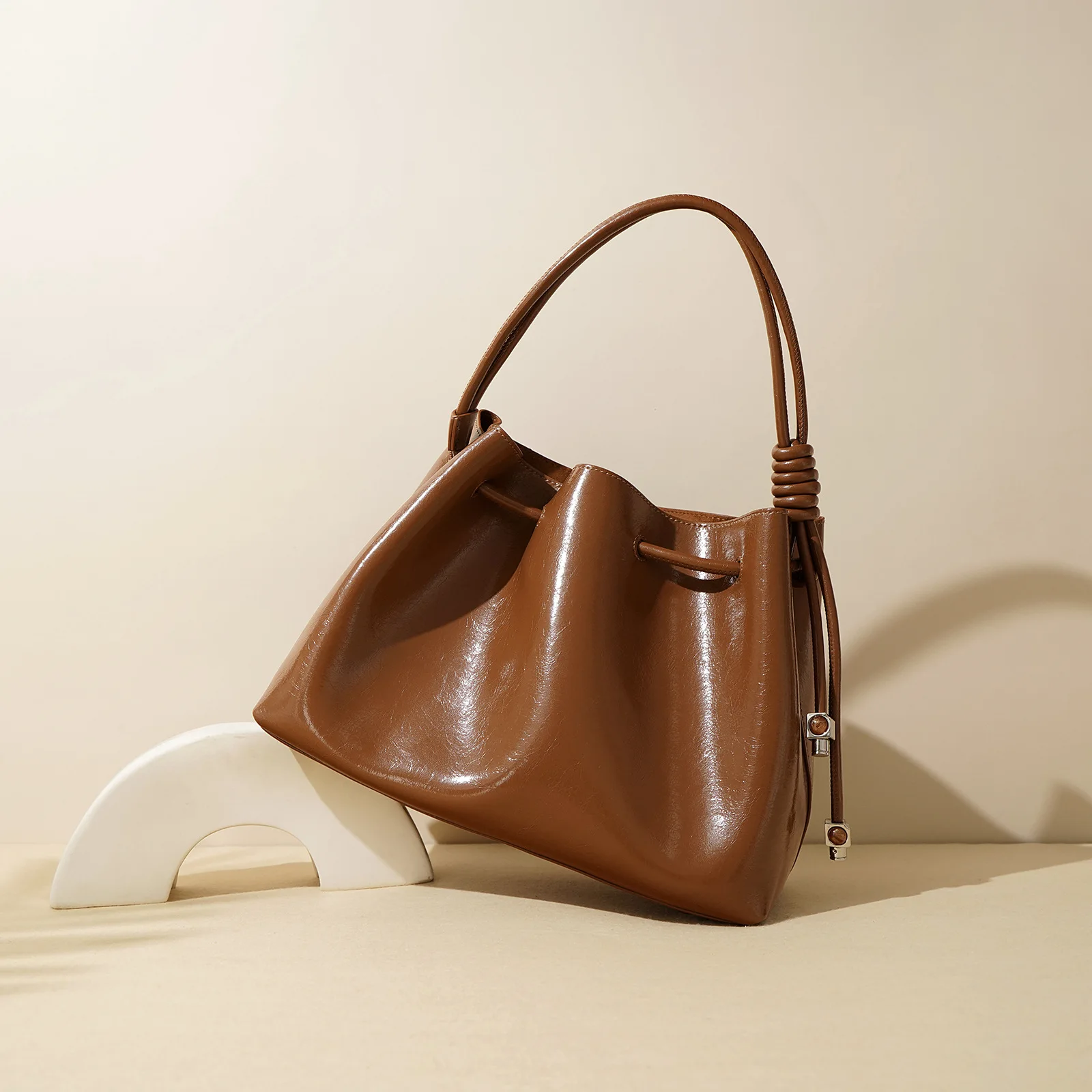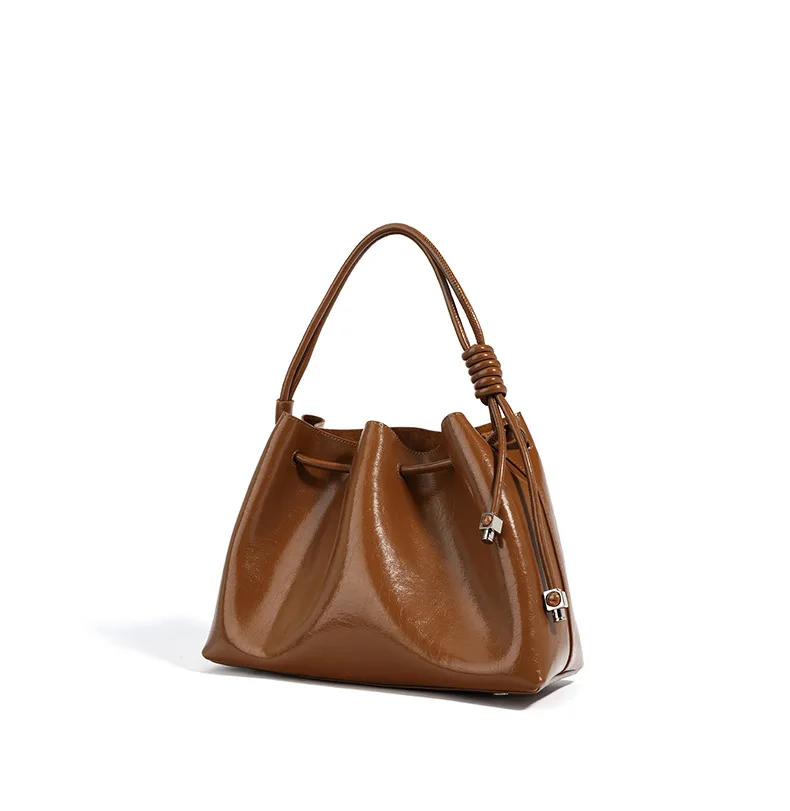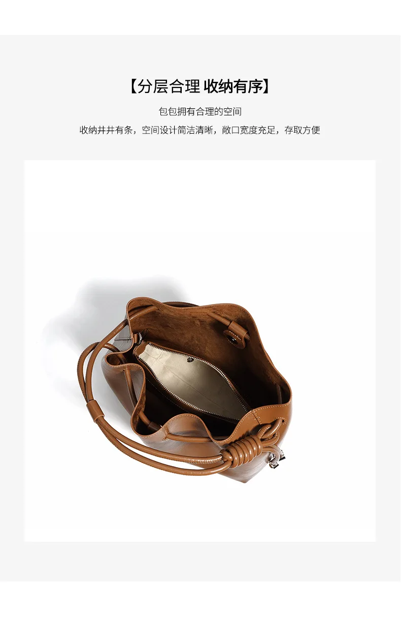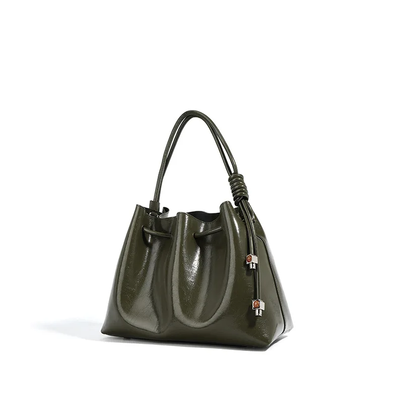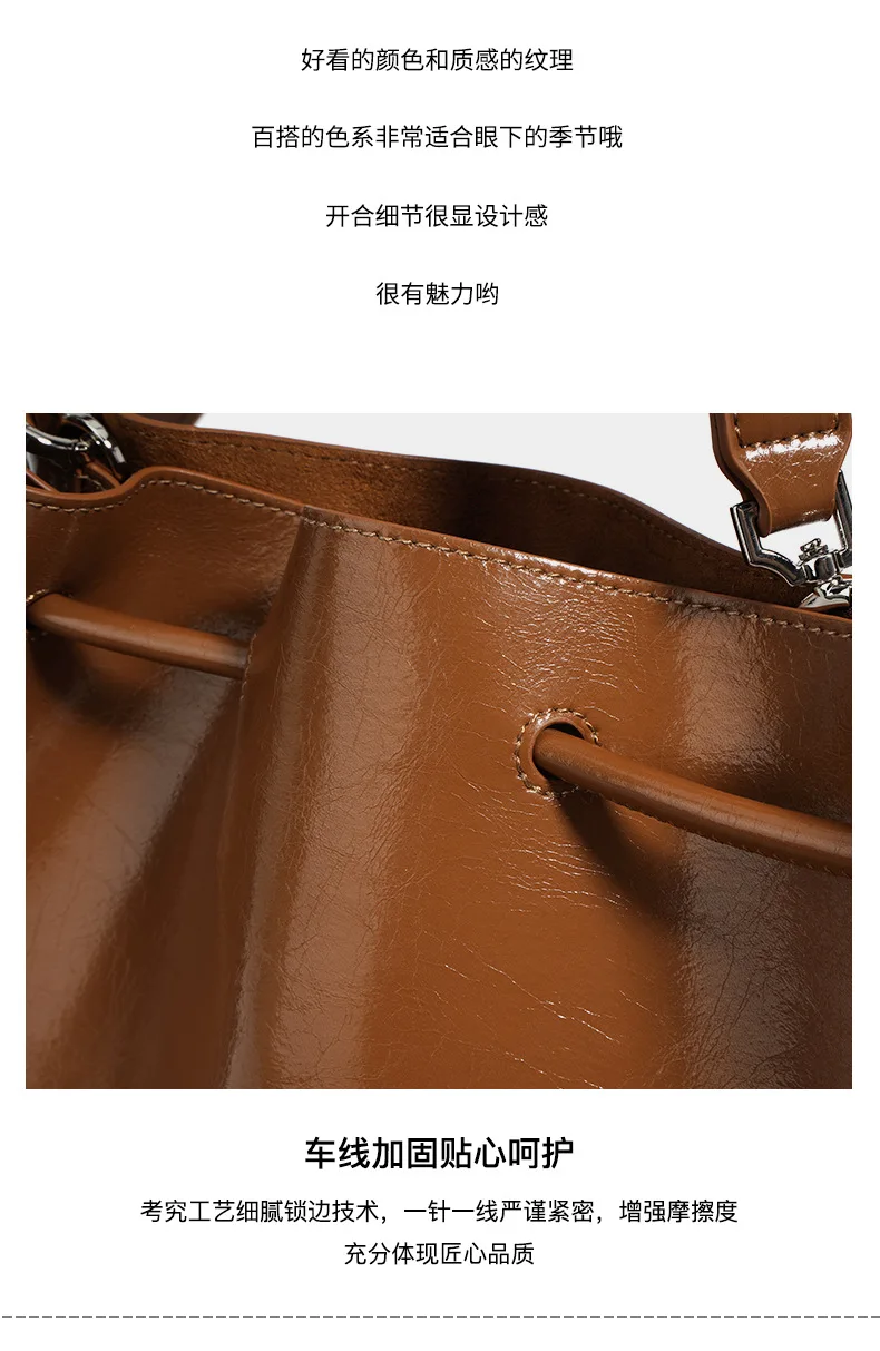 Motingsome 2024 New Leather Bags for Women Luxury Cowhide Leather Lady Bucket Chic Pleated Style Lady Daily Purse Handbag Pouch
