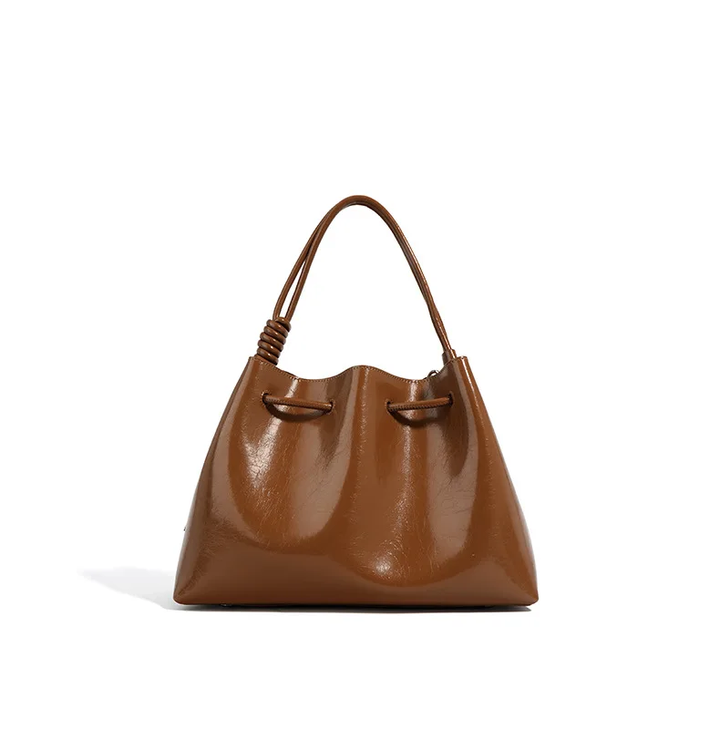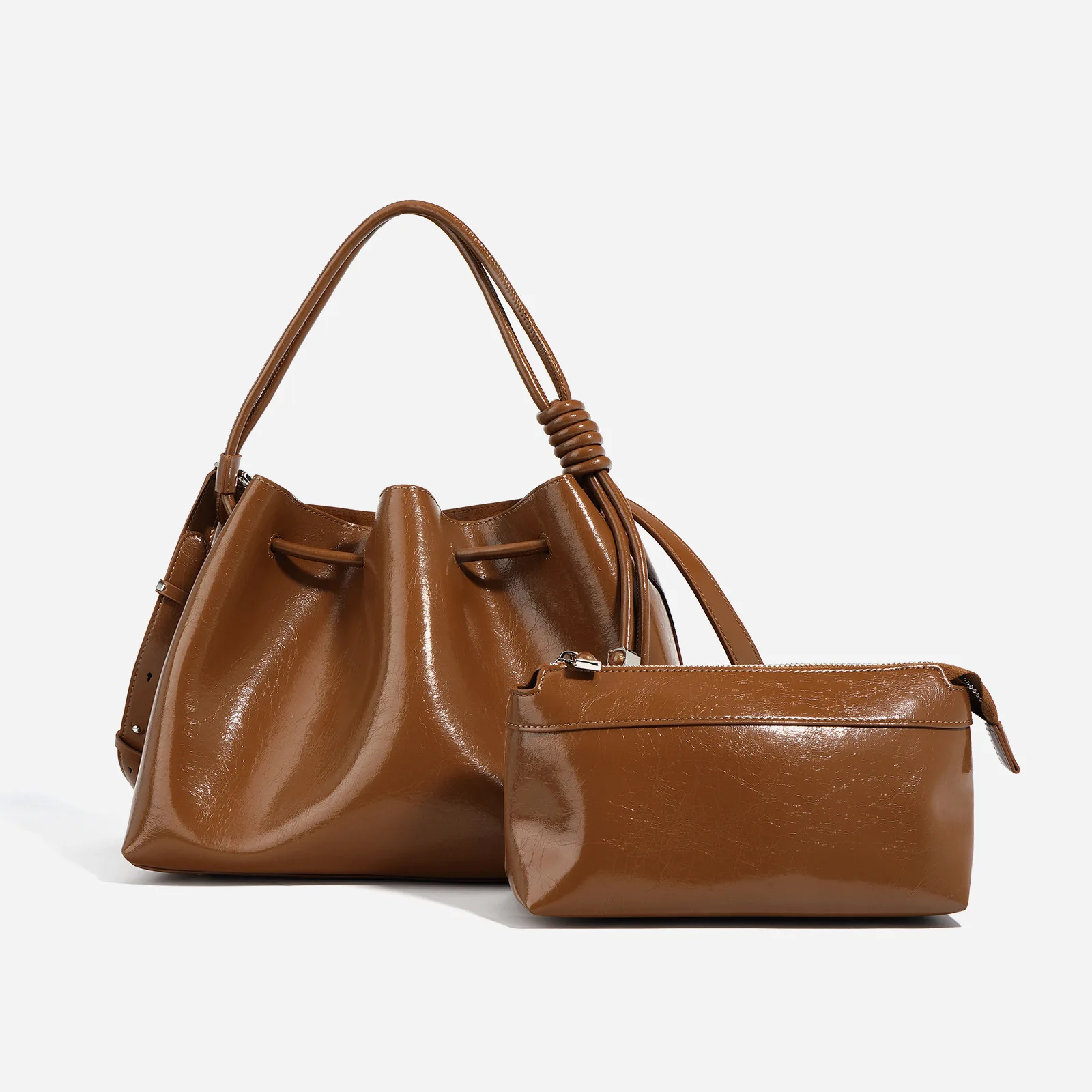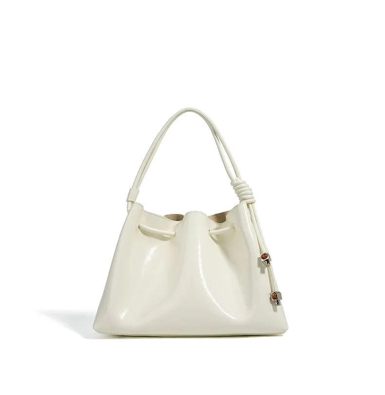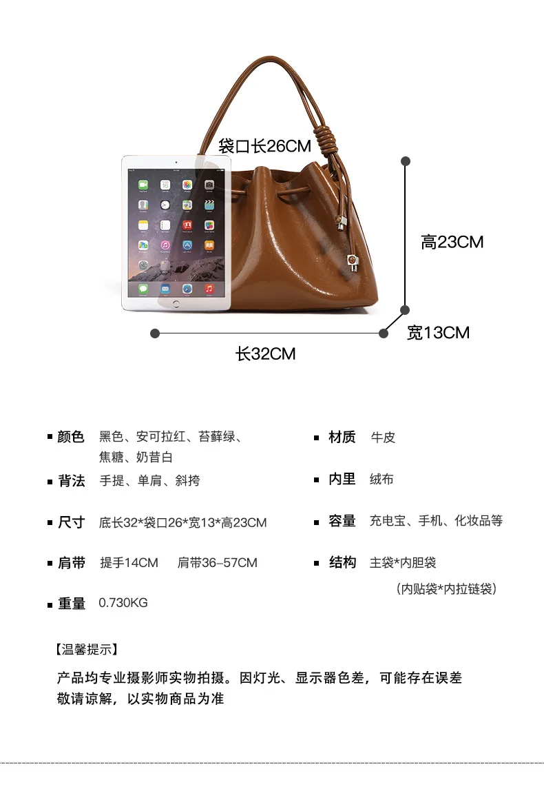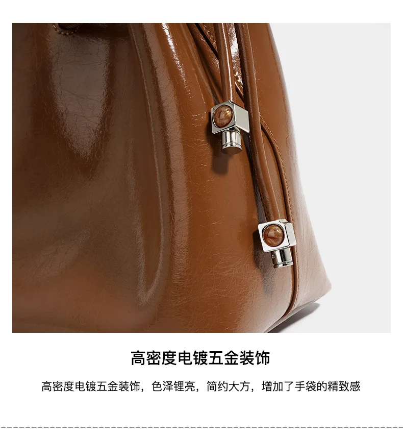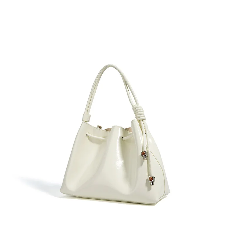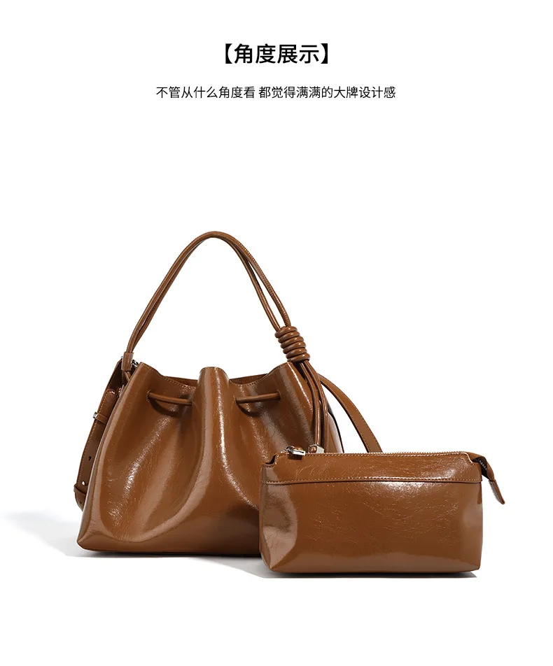 Motingsome 2024 New Leather Bags for Women Luxury Cowhide Leather Lady Bucket Chic Pleated Style Lady Daily Purse Handbag Pouch