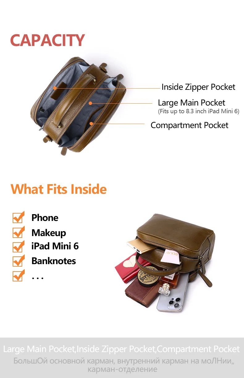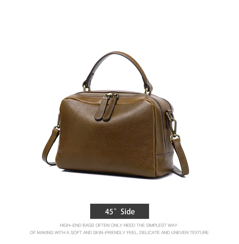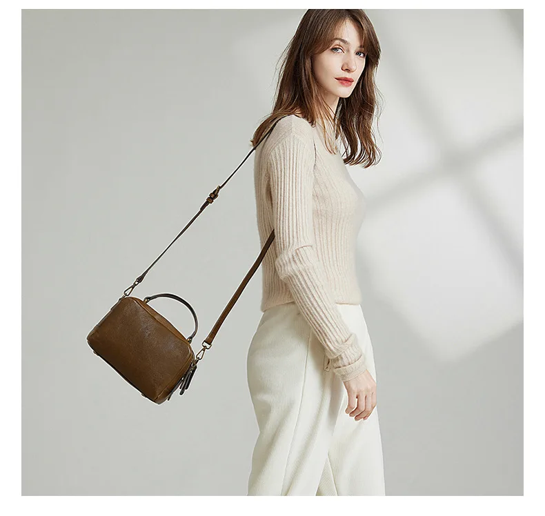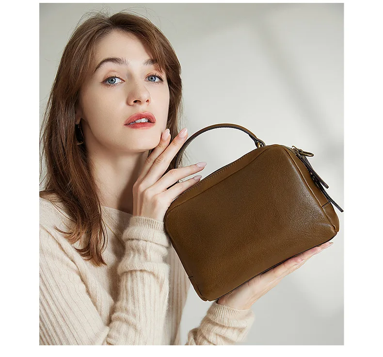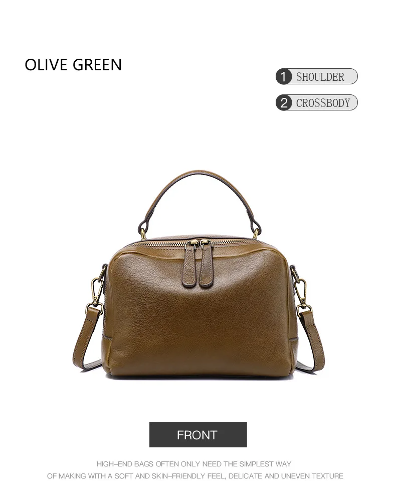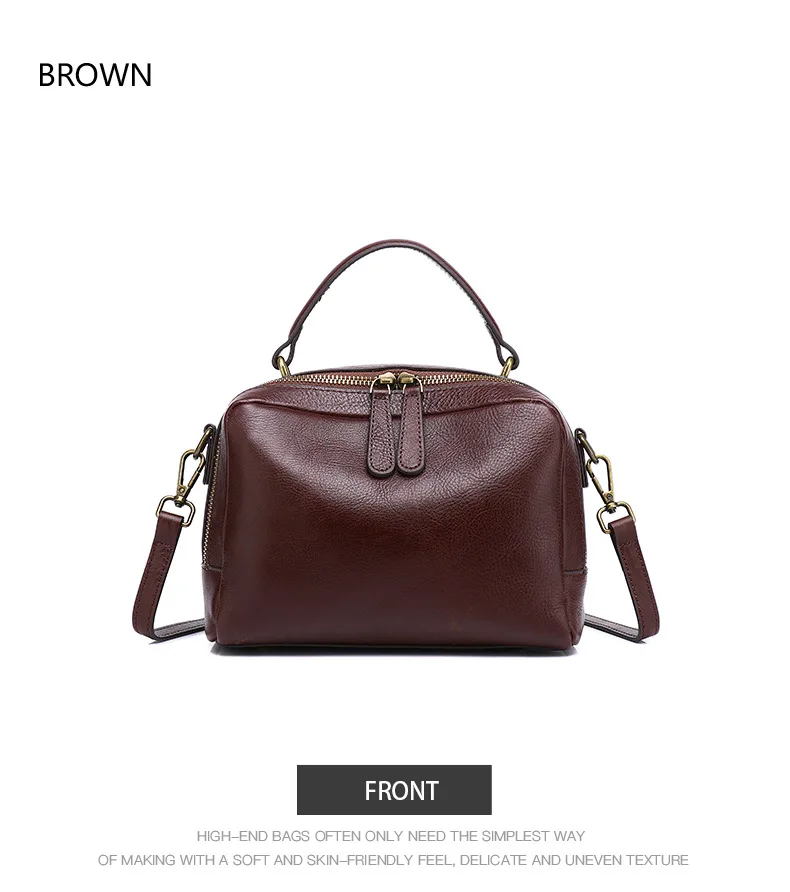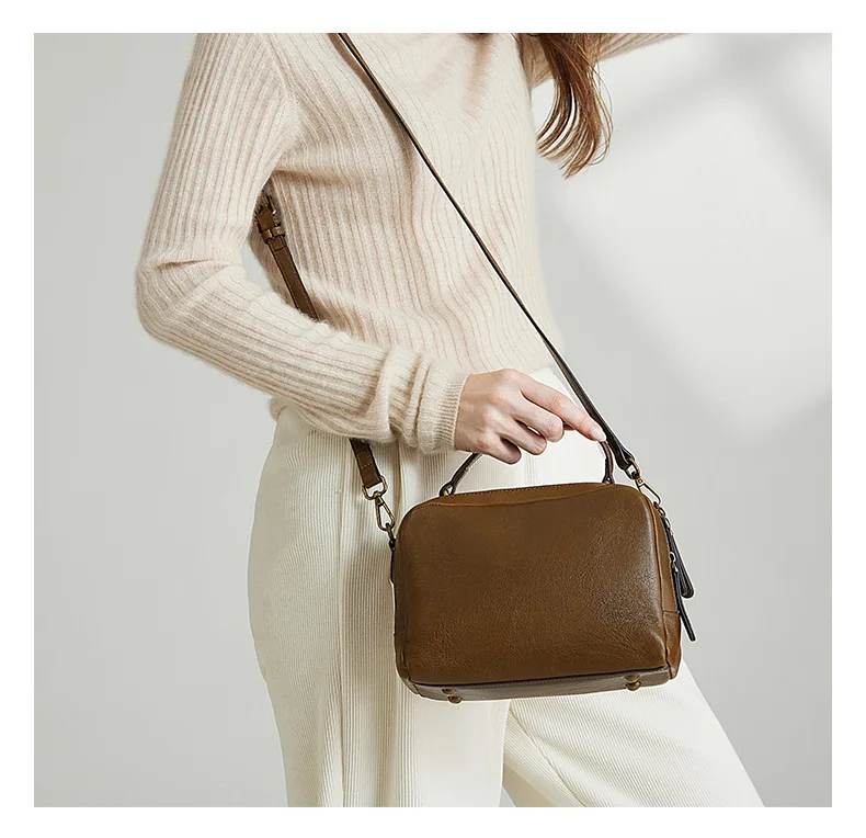 Motingsome Full Grain Cowhide Satchel Retro Women Shoulder Bags Crossbody Shoulder Messenger Bag Mini Tote Zipper Purse 2024 New