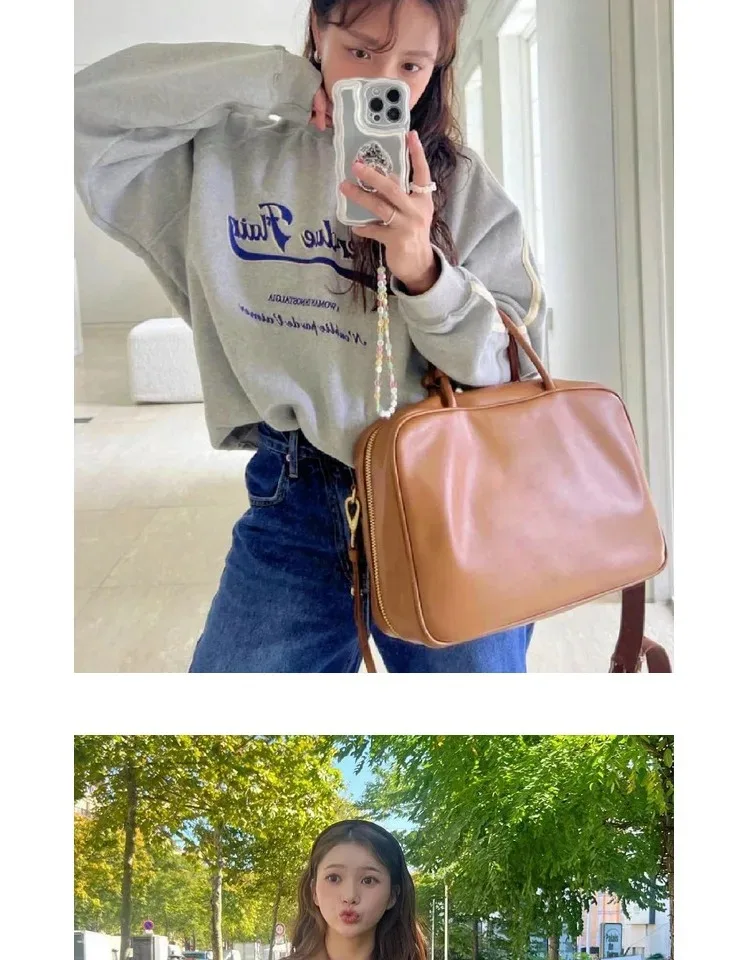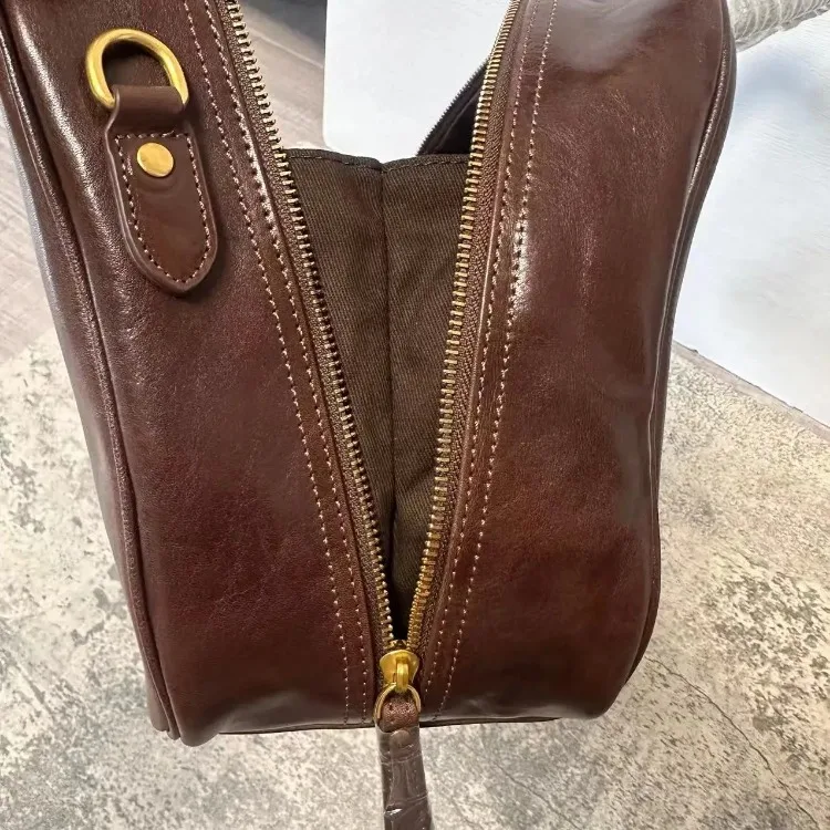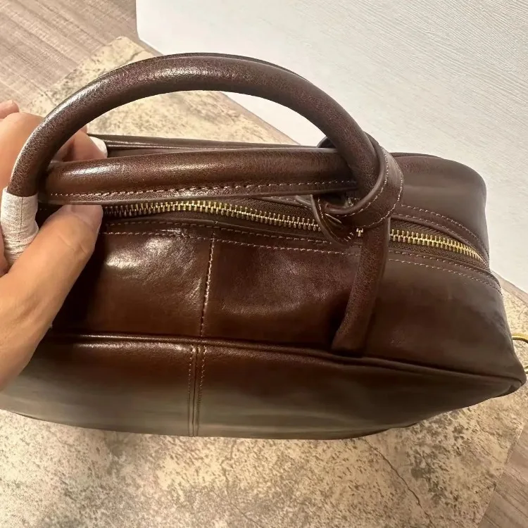 Motingsome Luxury Designer Bags Real Genuine Leather Handbag Woman Tote Bag Retro Boston Purses Bowling Bags Shoulder Hobos 2024