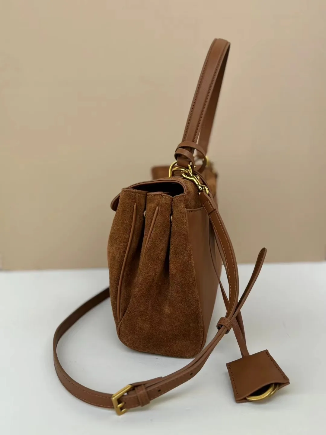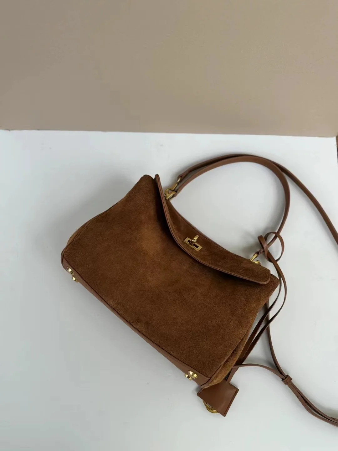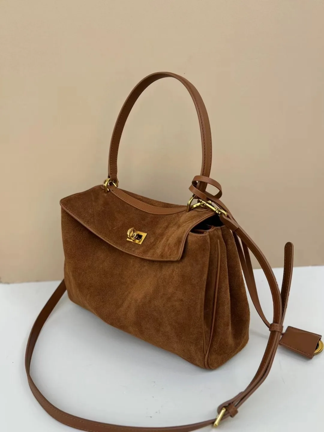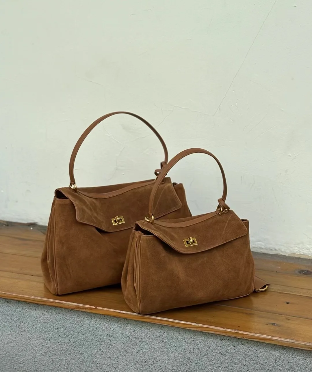 Motingsome New Women Suede Leather Bag Gold Buckle Handbag and Purses Luxury Designer BagsFashion Lady Trend Satchel 2024 New