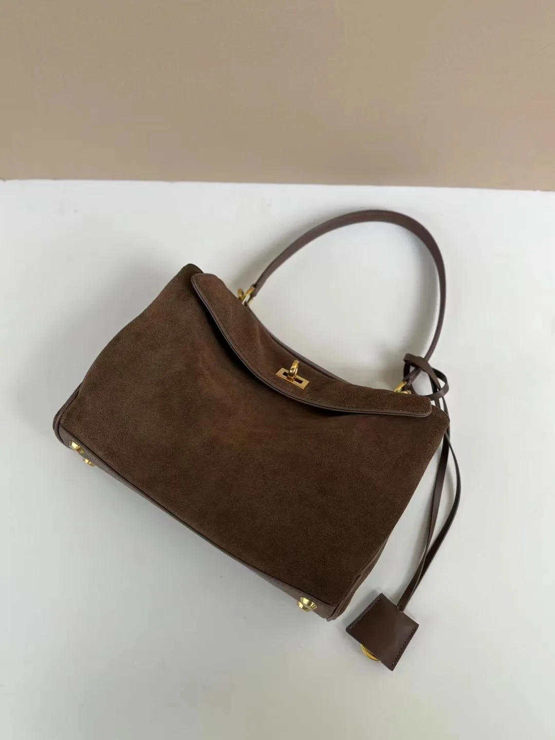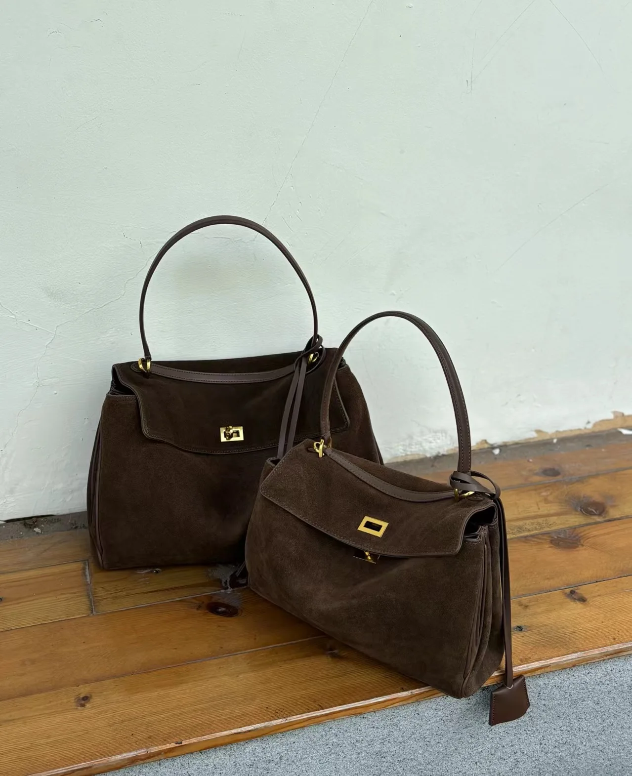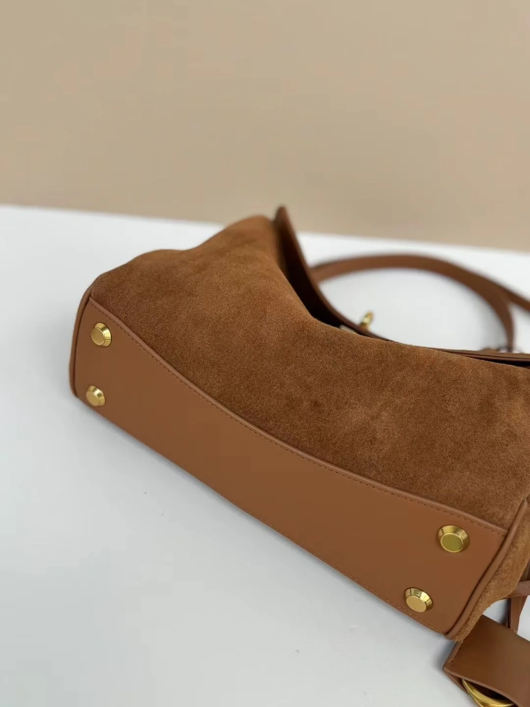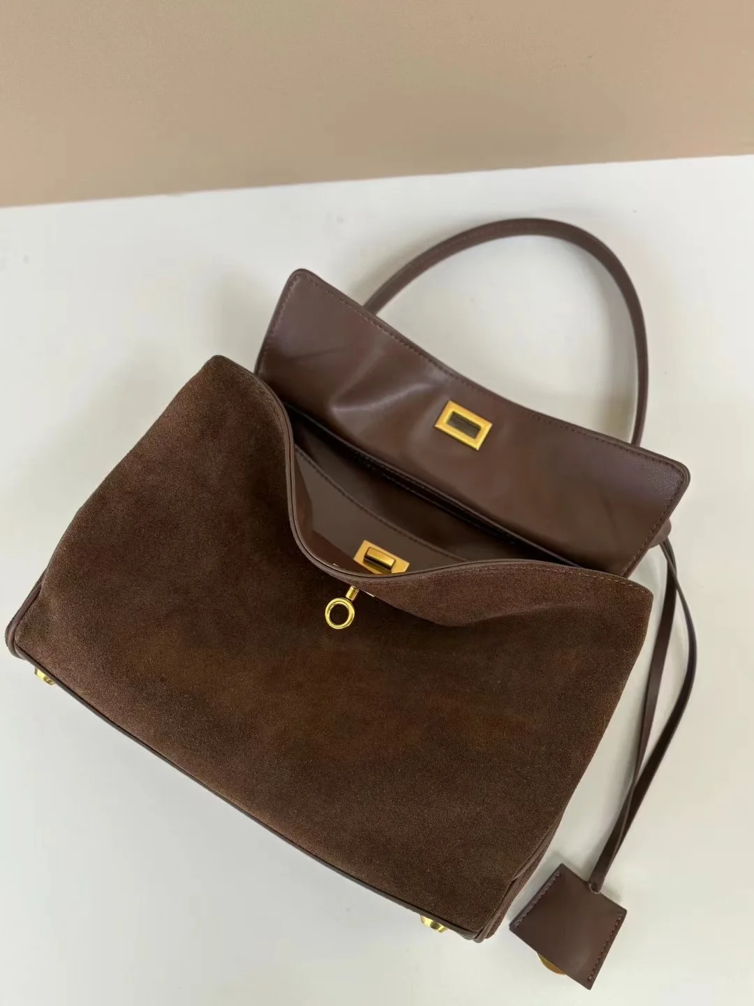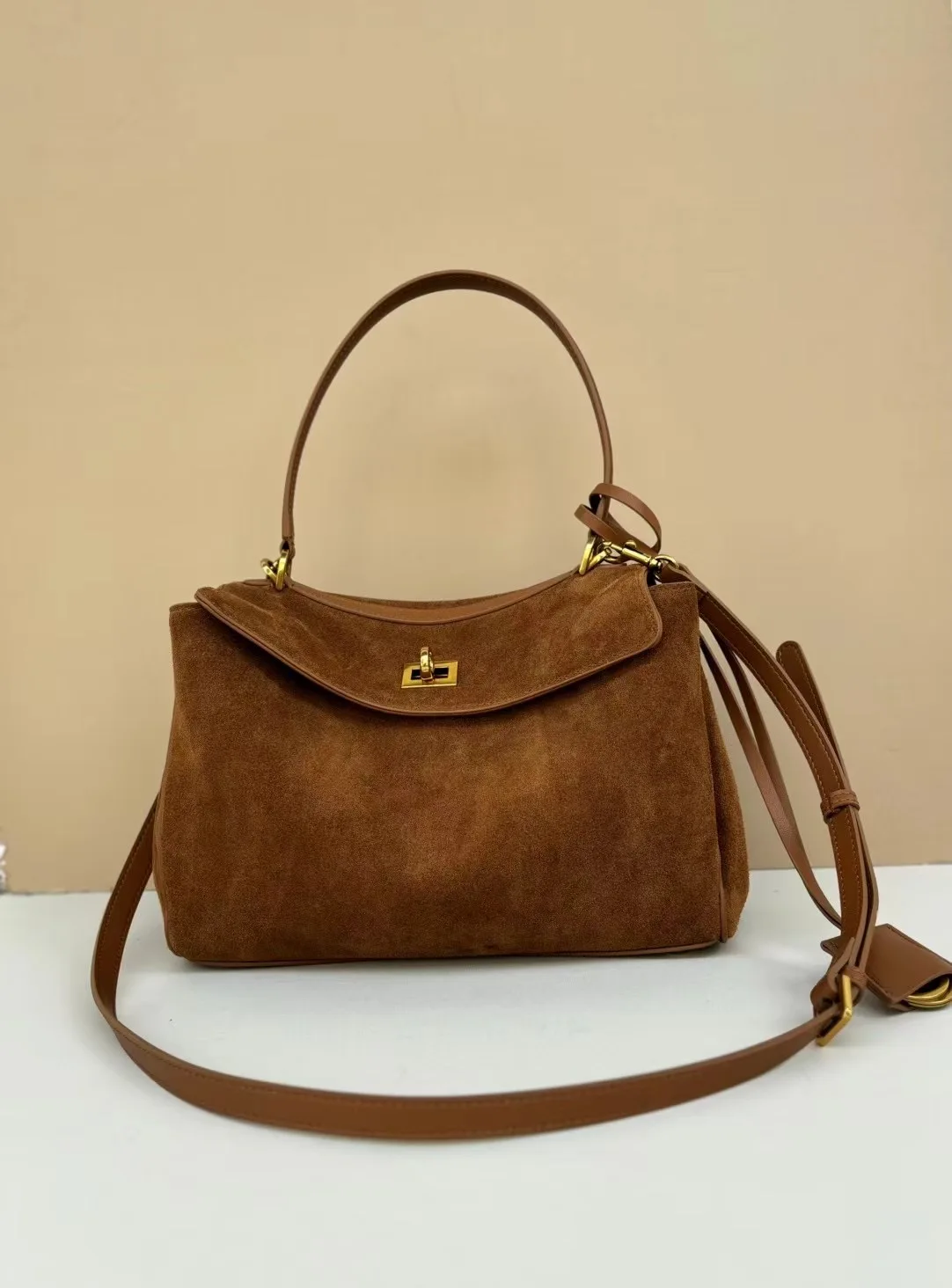 Motingsome New Women Suede Leather Bag Gold Buckle Handbag and Purses Luxury Designer BagsFashion Lady Trend Satchel 2024 New