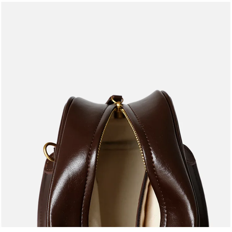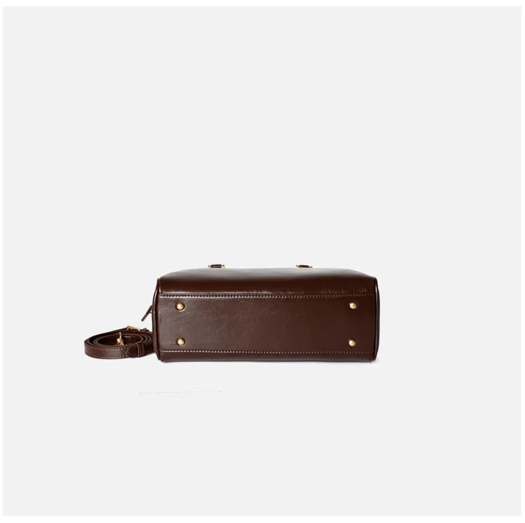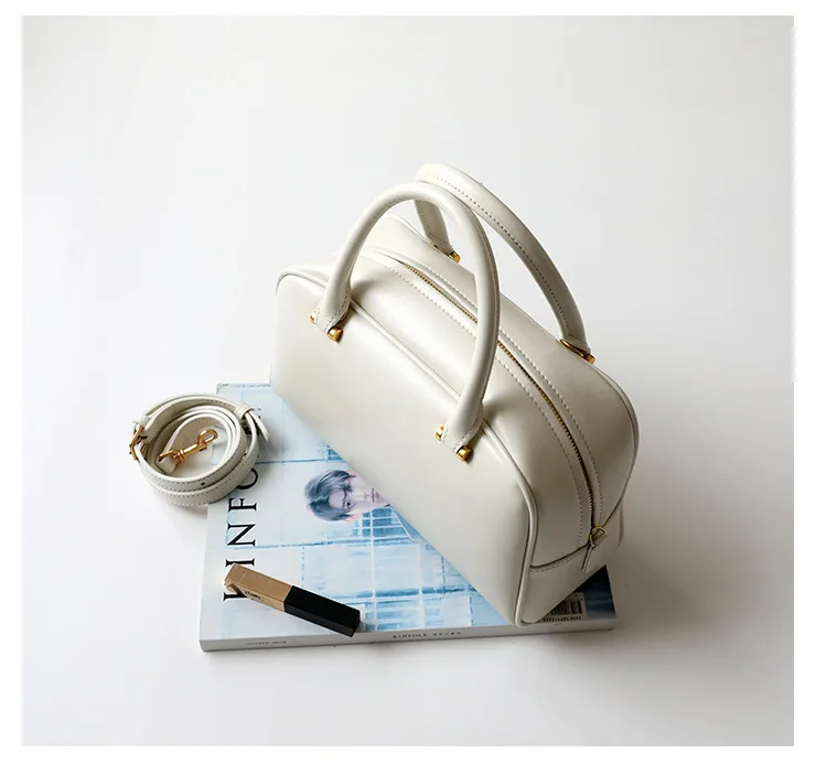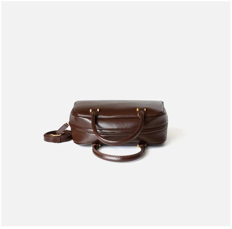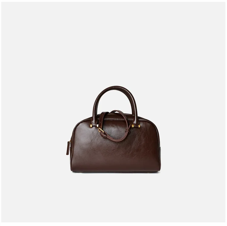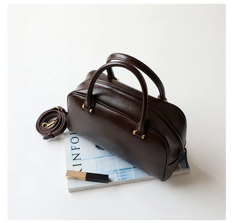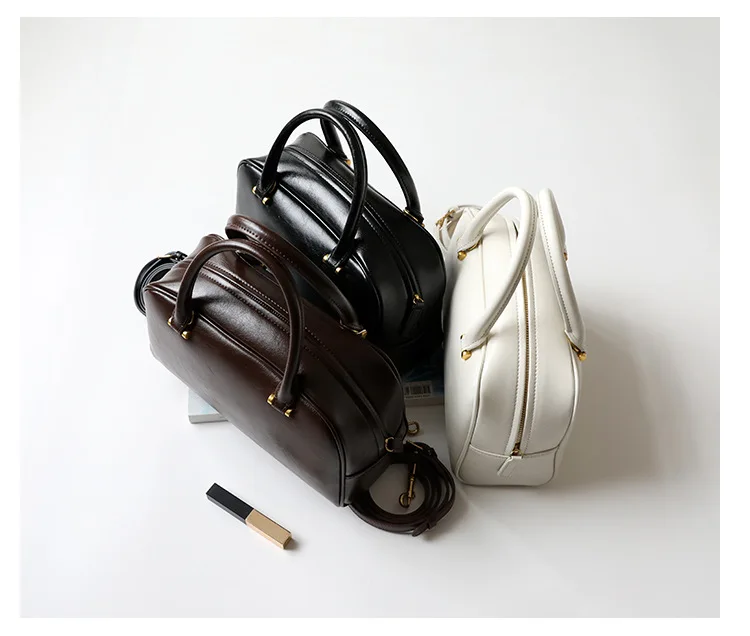 Motingsome Stylish Woman Bowling Bags Boston Purses Luxury Genuine Leather Handbag Pillow Bags Shoulder Retro Satchel Black 2024