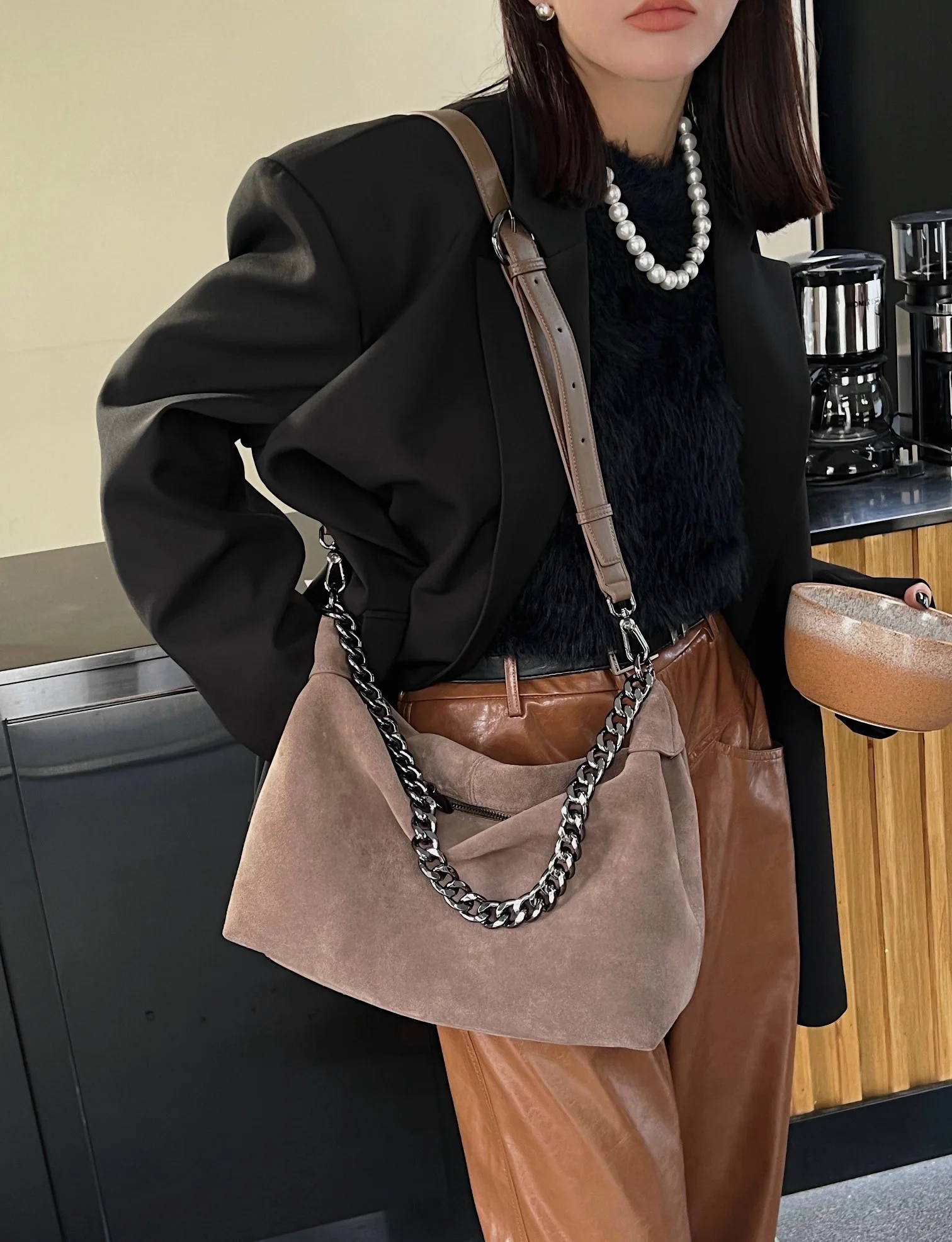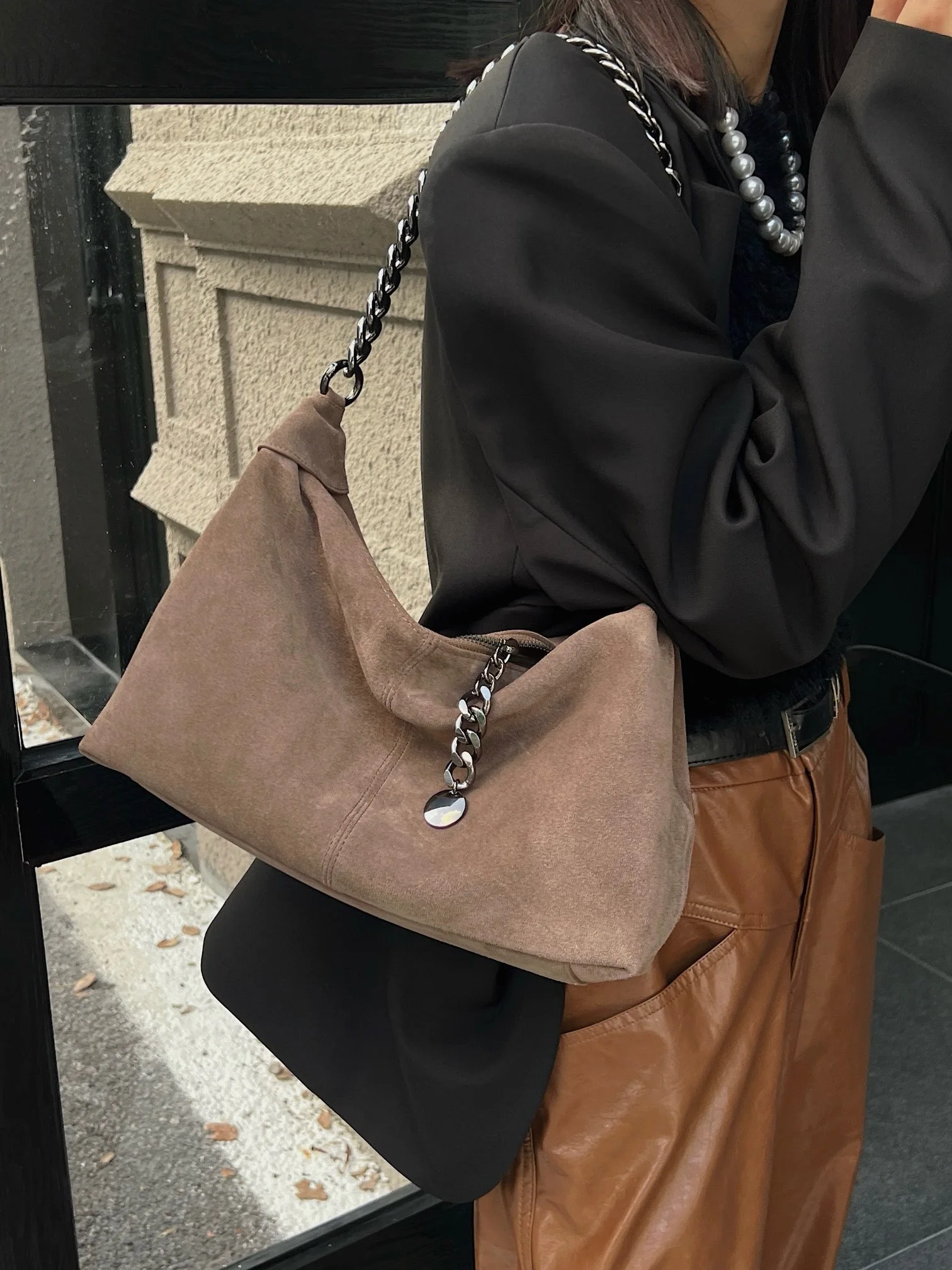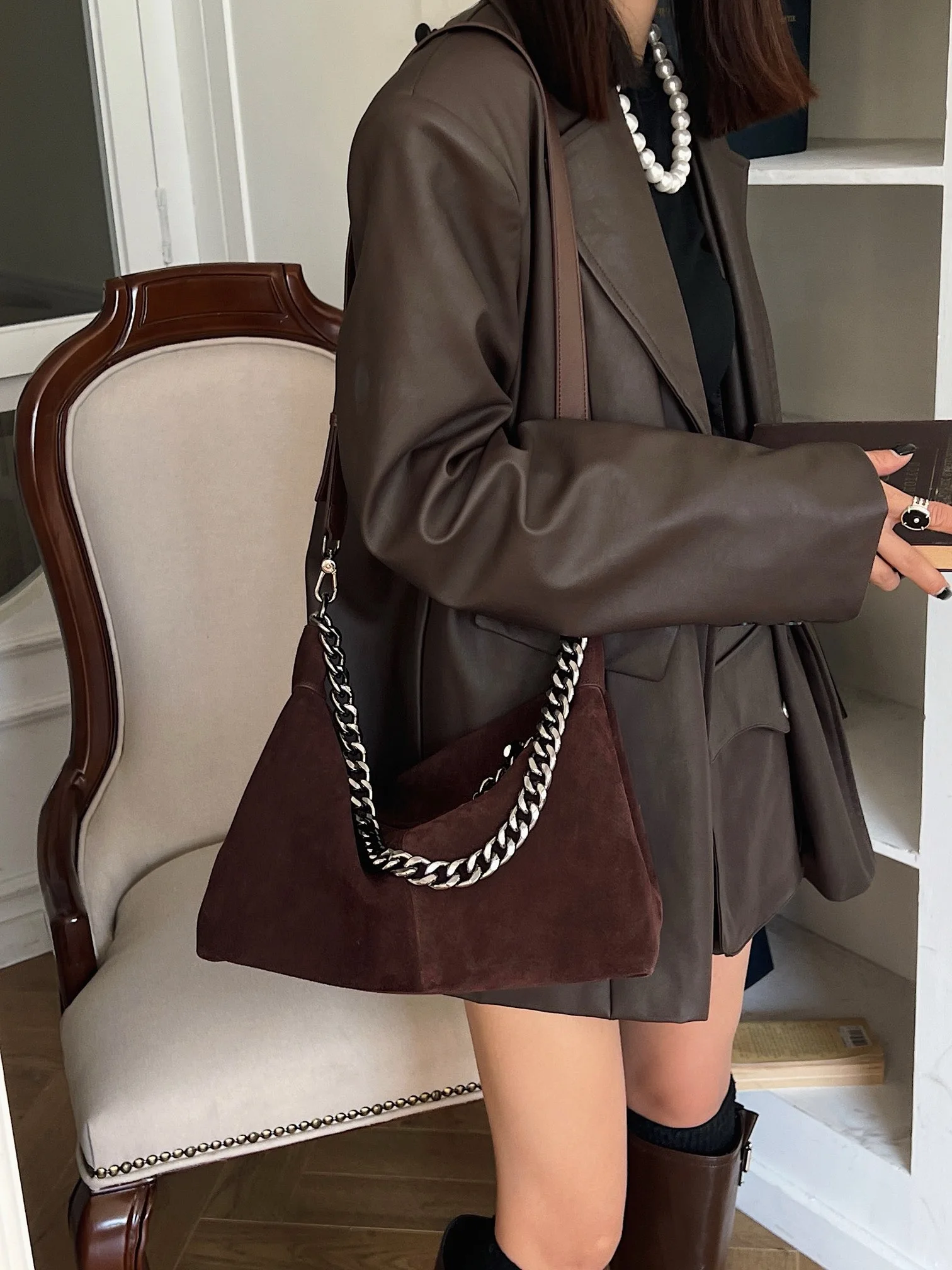 Motingsome Women Suede Leather Bag Chains Shoulder Handbag Autumn Fashion Luxury Designer Bags Chic Lady Trend Satchel 2024 New