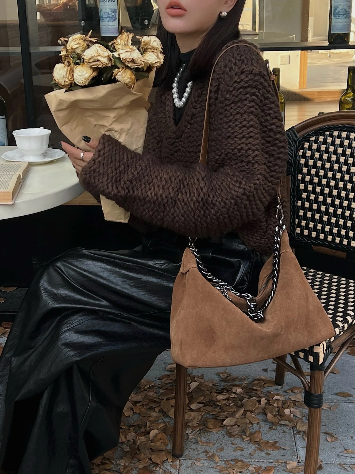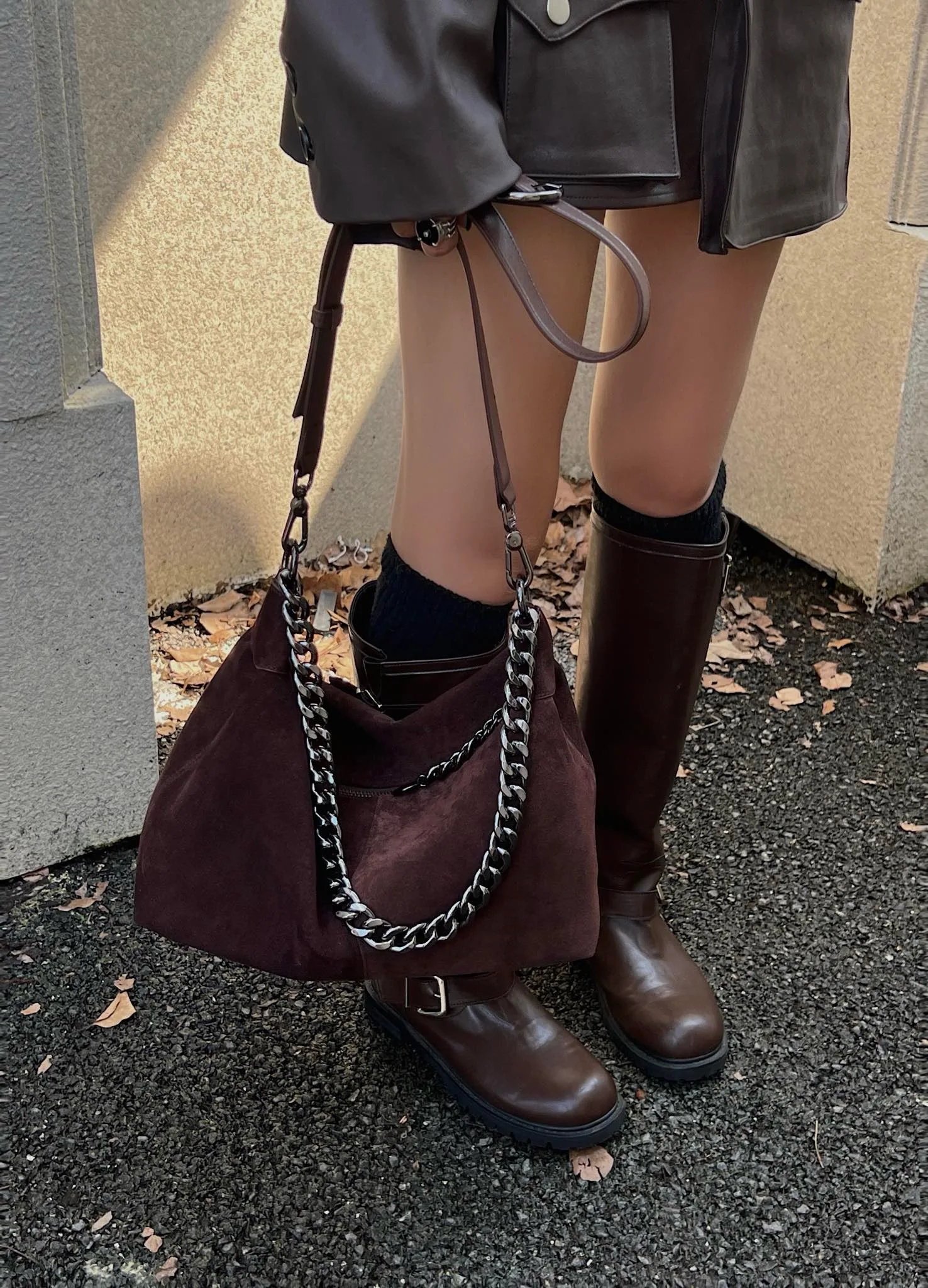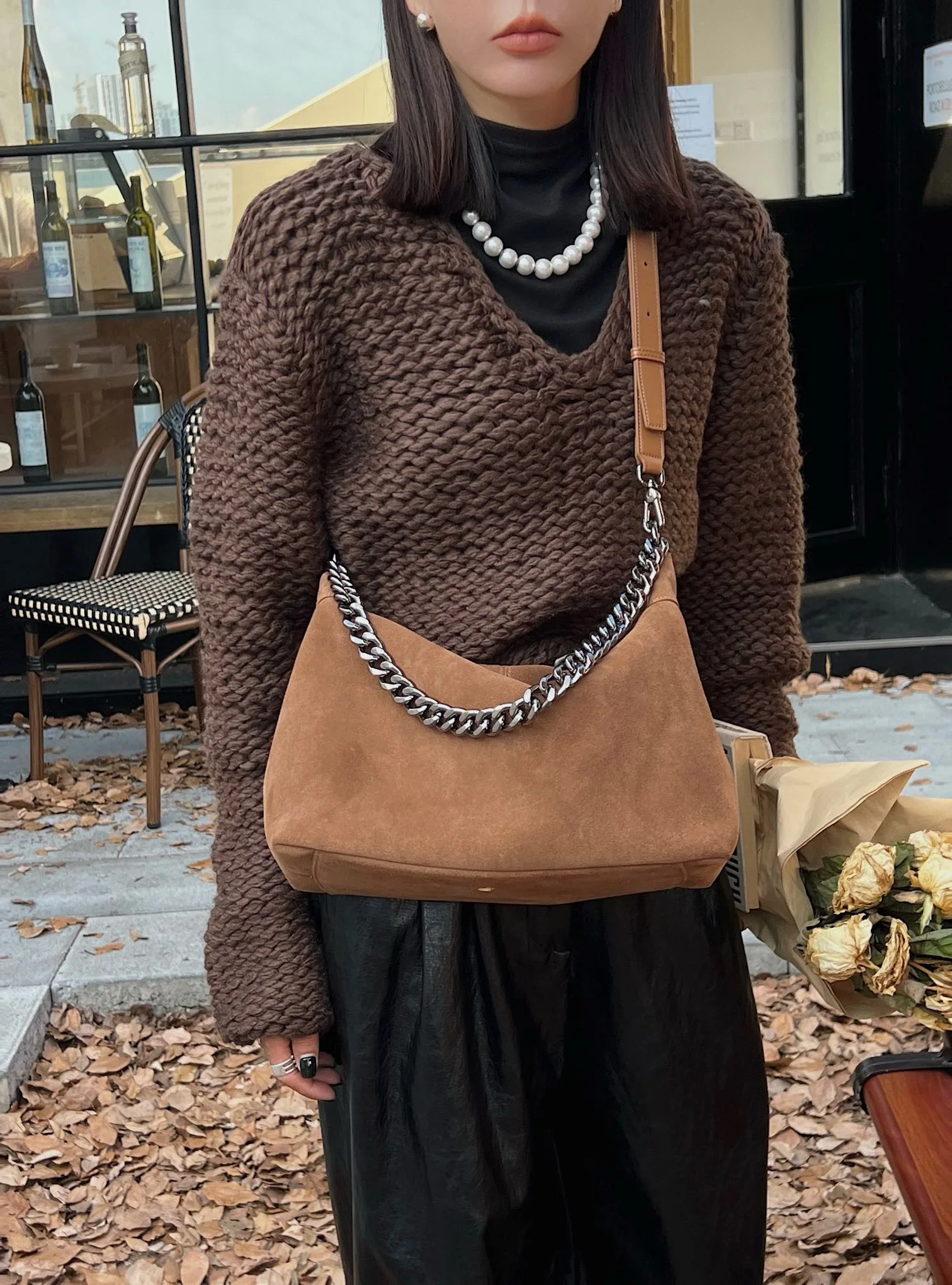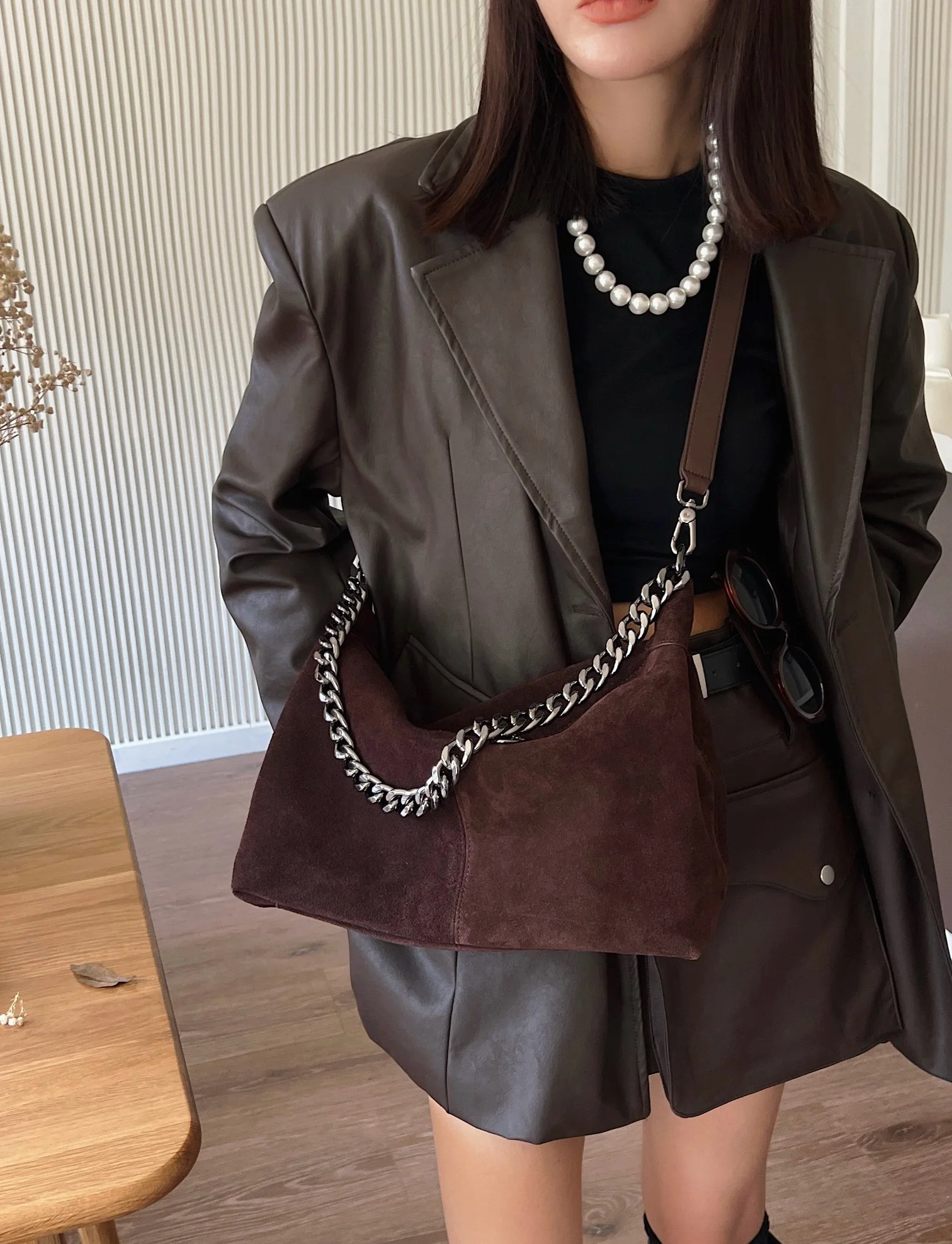 Motingsome Women Suede Leather Bag Chains Shoulder Handbag Autumn Fashion Luxury Designer Bags Chic Lady Trend Satchel 2024 New