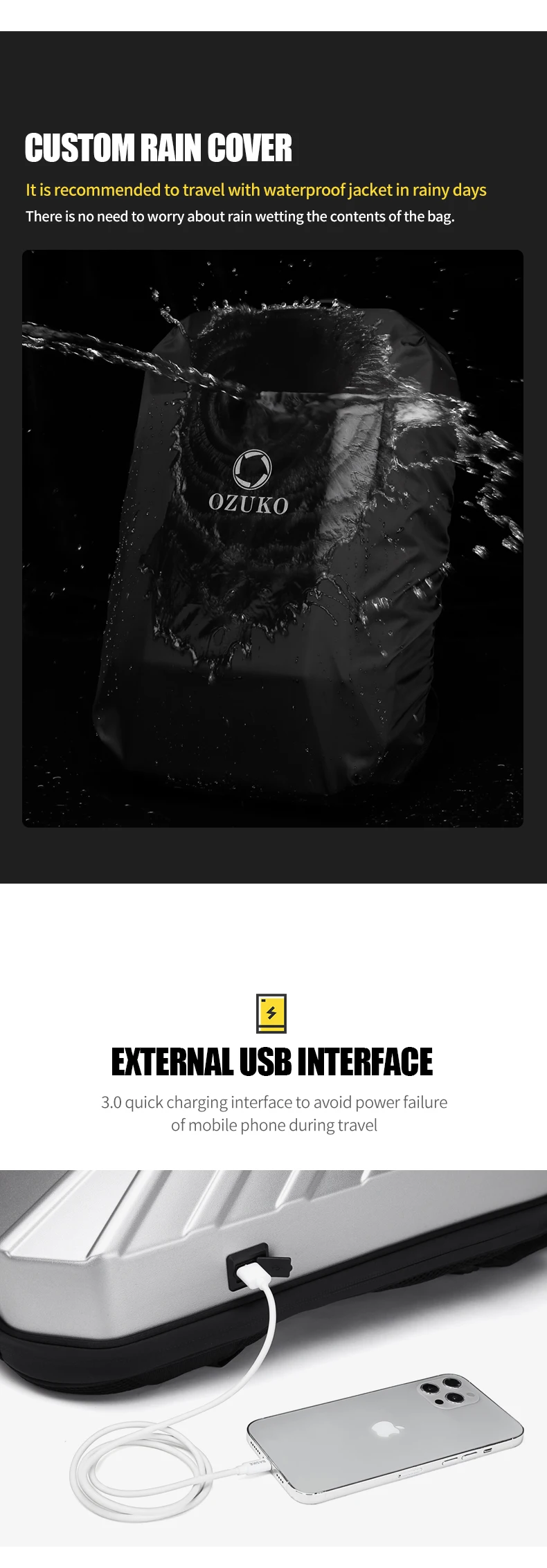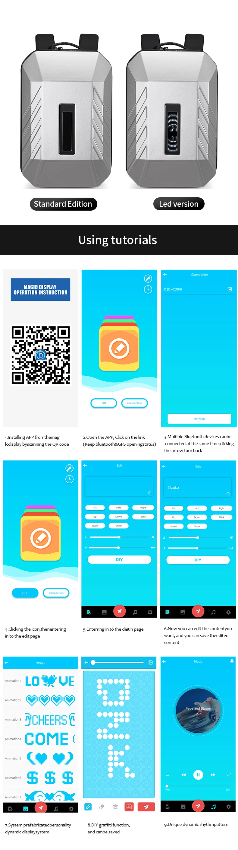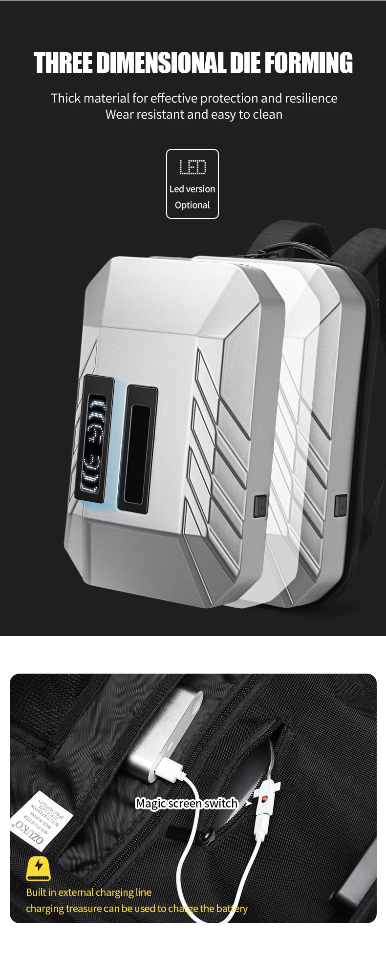 Multifunction Business Backpack For Men Pc Hard Shell Laptop Bag Smart Cool Led Men USB Charging Anti-theft Water Proof Backpack