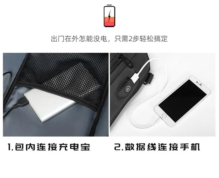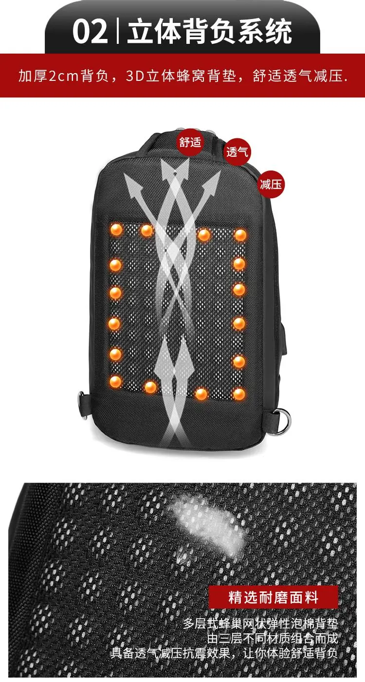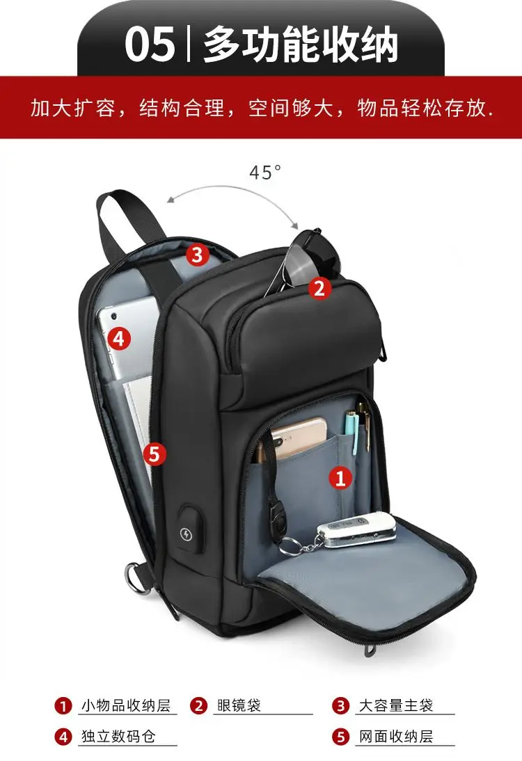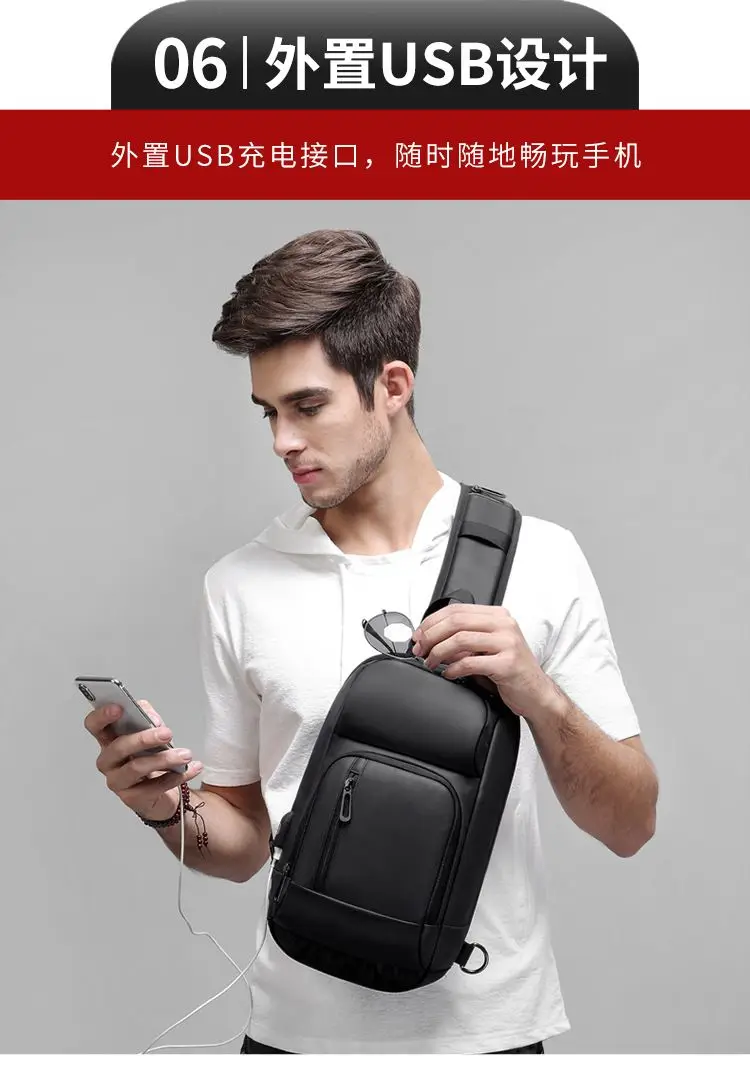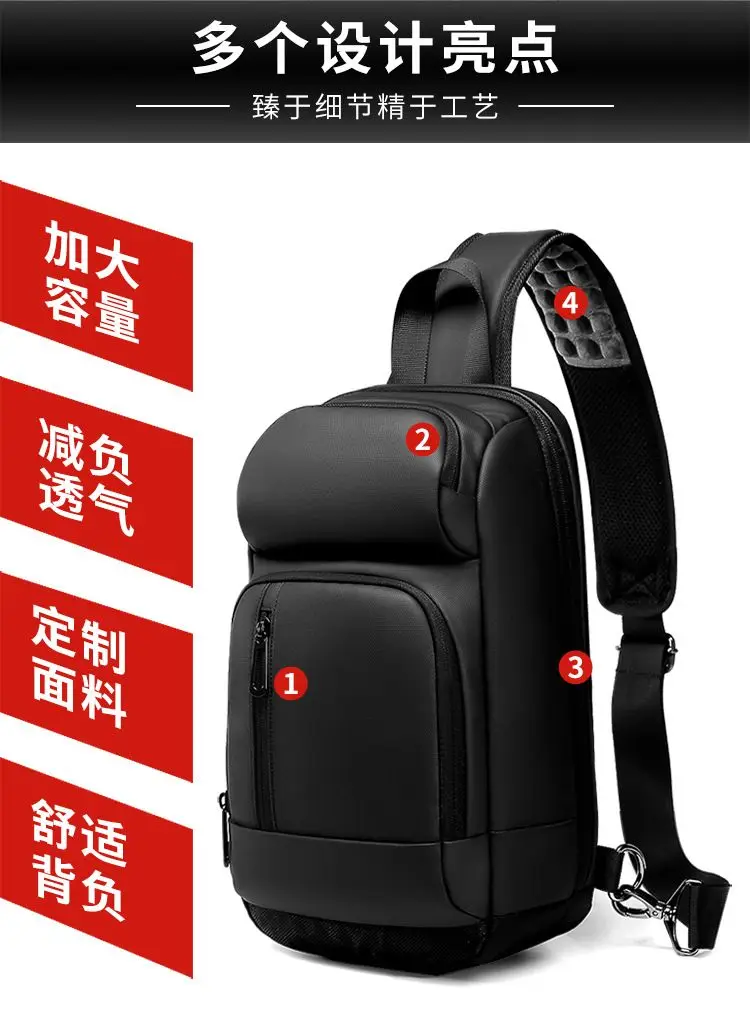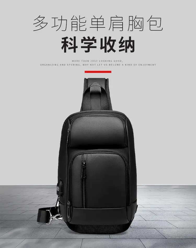 Multifunction Large Capacity Men's Chest Bag Waterproof Male Crossbody Sling Pack Travel Shoulder Bag With USB Charging Bolsas
