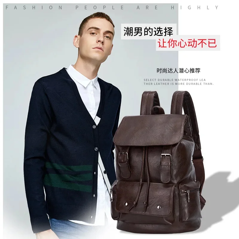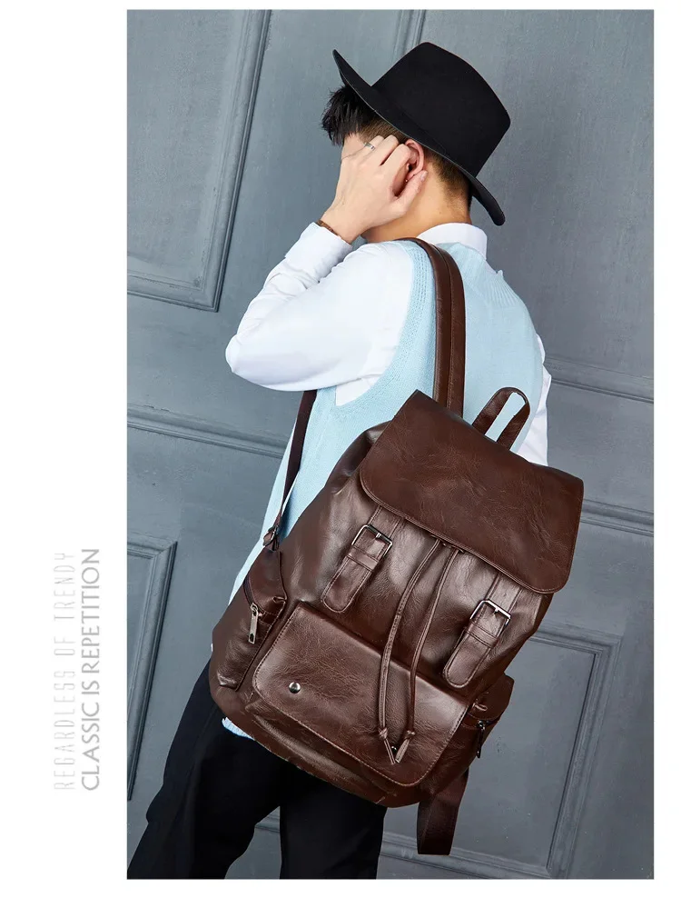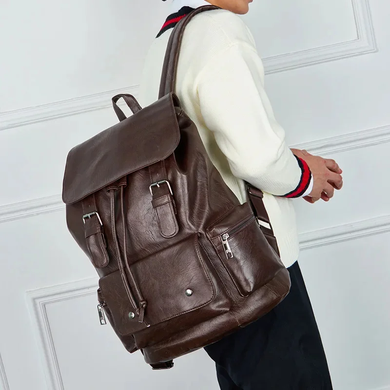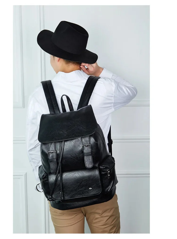Multifunction PU Leather Men's Backpack