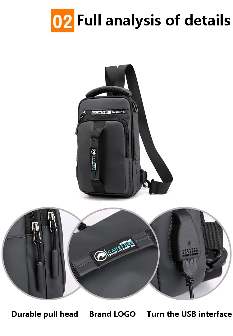 Multifunction USB Shoulder Bag Chest Bags Waterproof Travel Pack Messenger Pack
