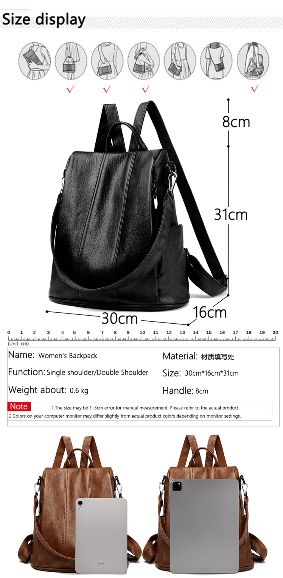 Fashion Women Backpack Luxury Designer Ladies Anti-theft Backpack Soft Leather School Bags Large Capacity Travel Bags Mochila