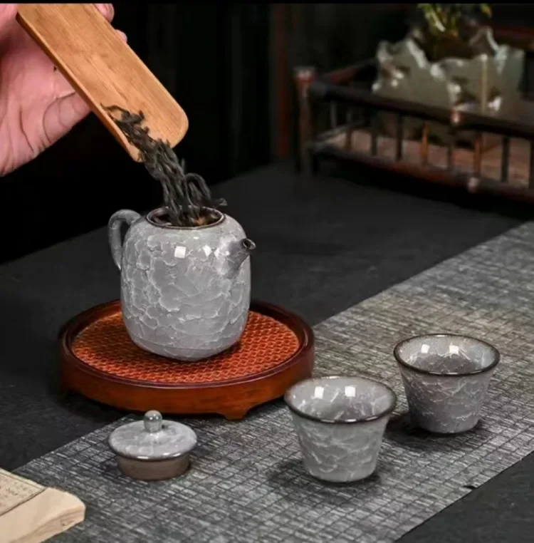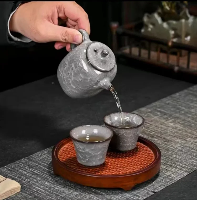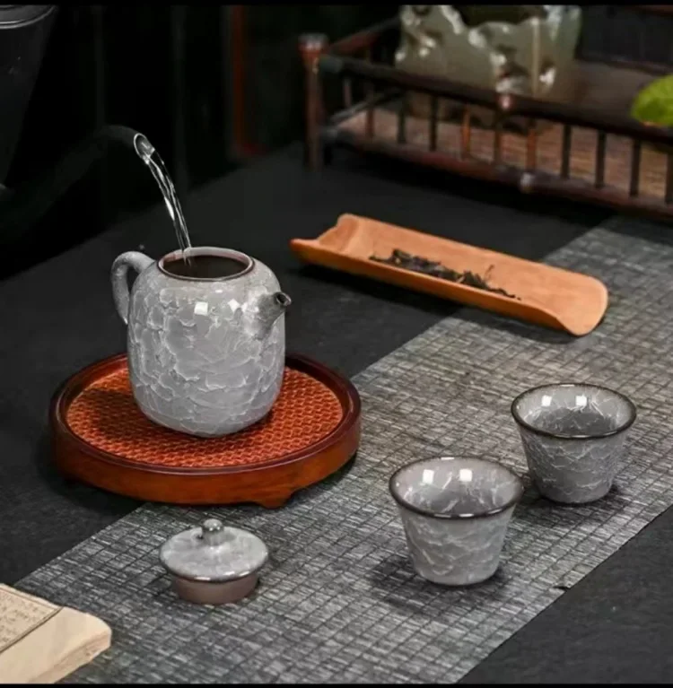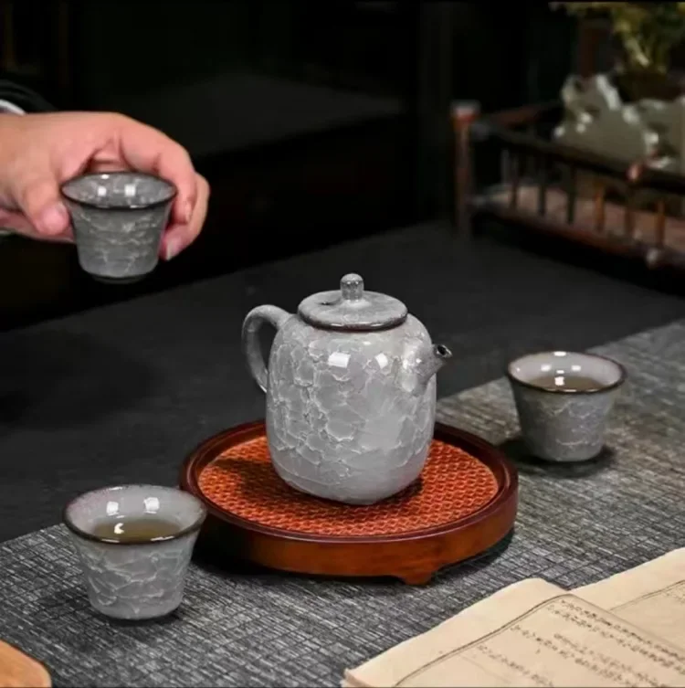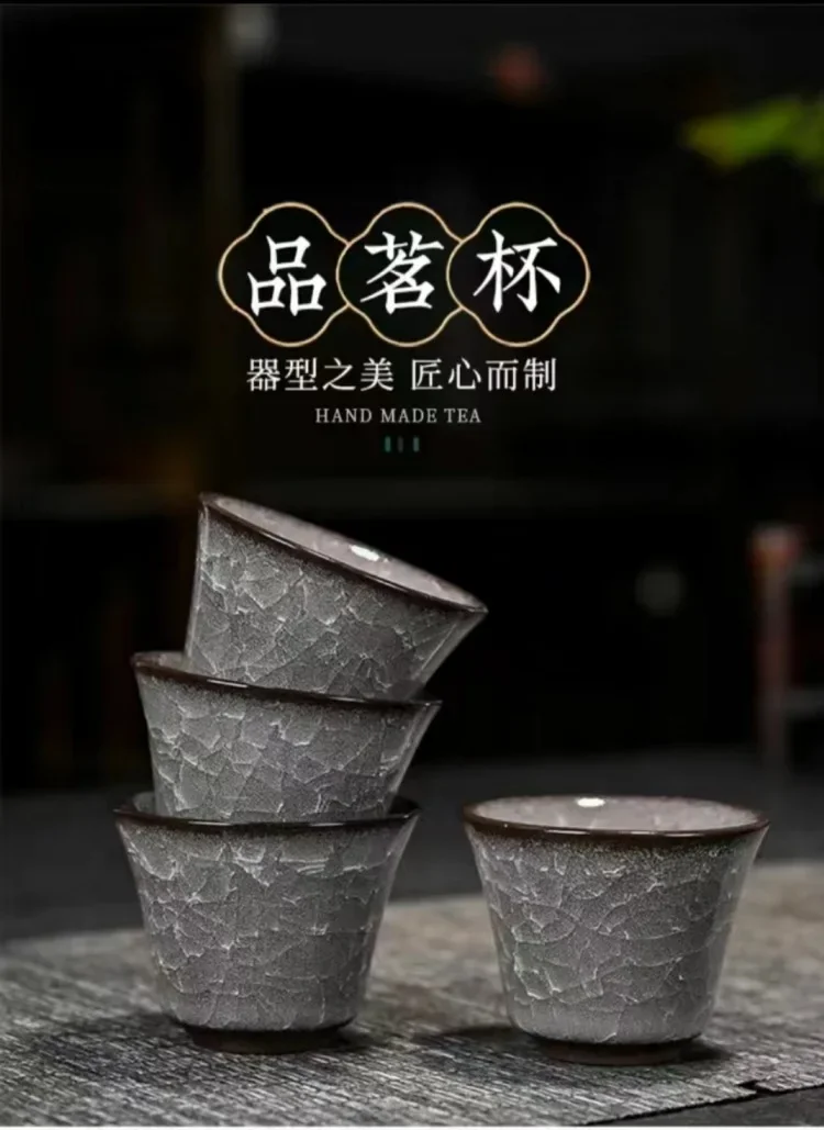New Arrival Ceramic Black Ice Flower Tea Cup Cracked Ice Tea Bowl High-end Tea Cup with Split Bottom
