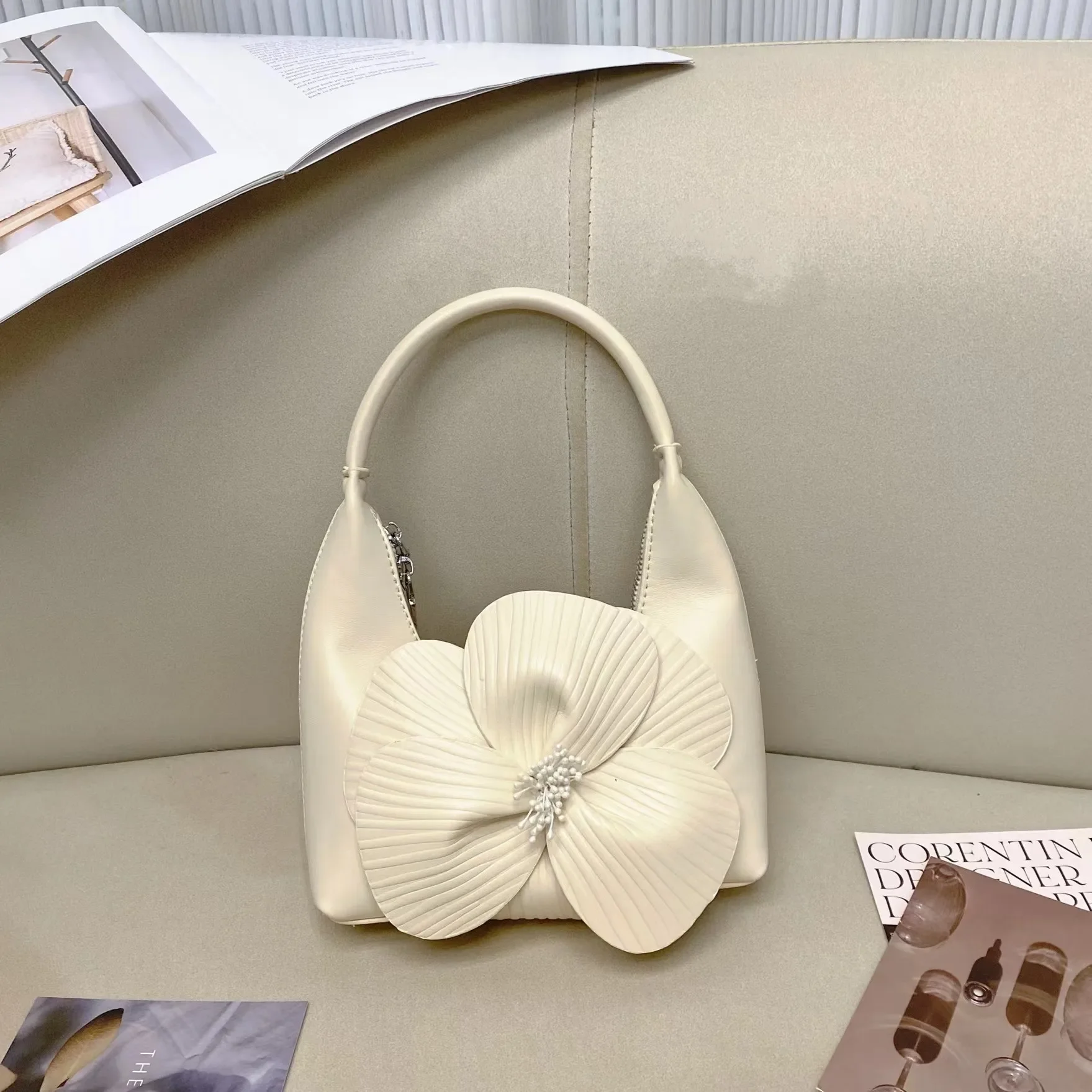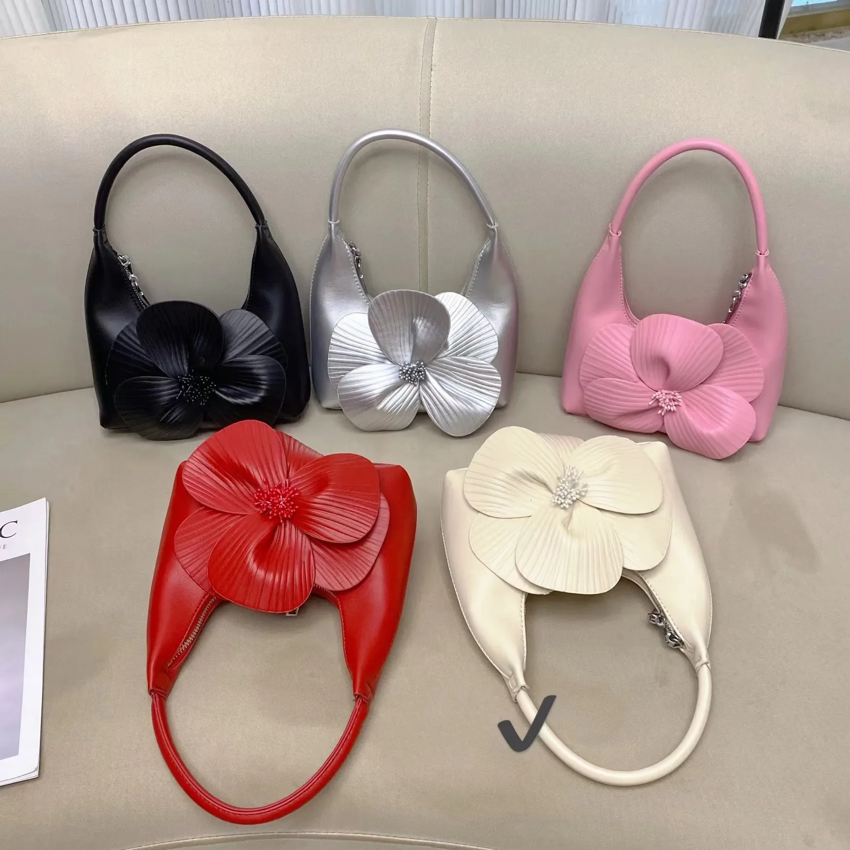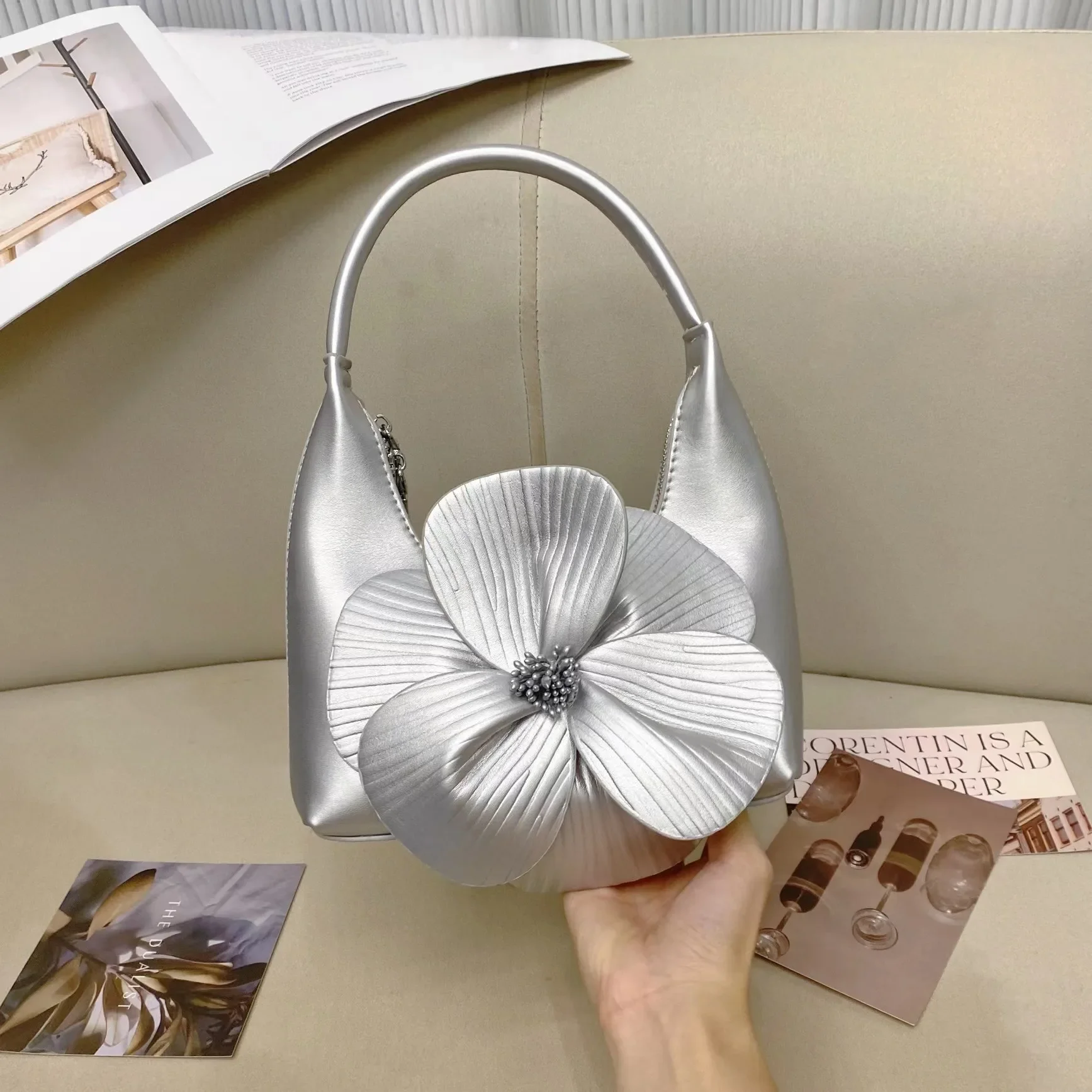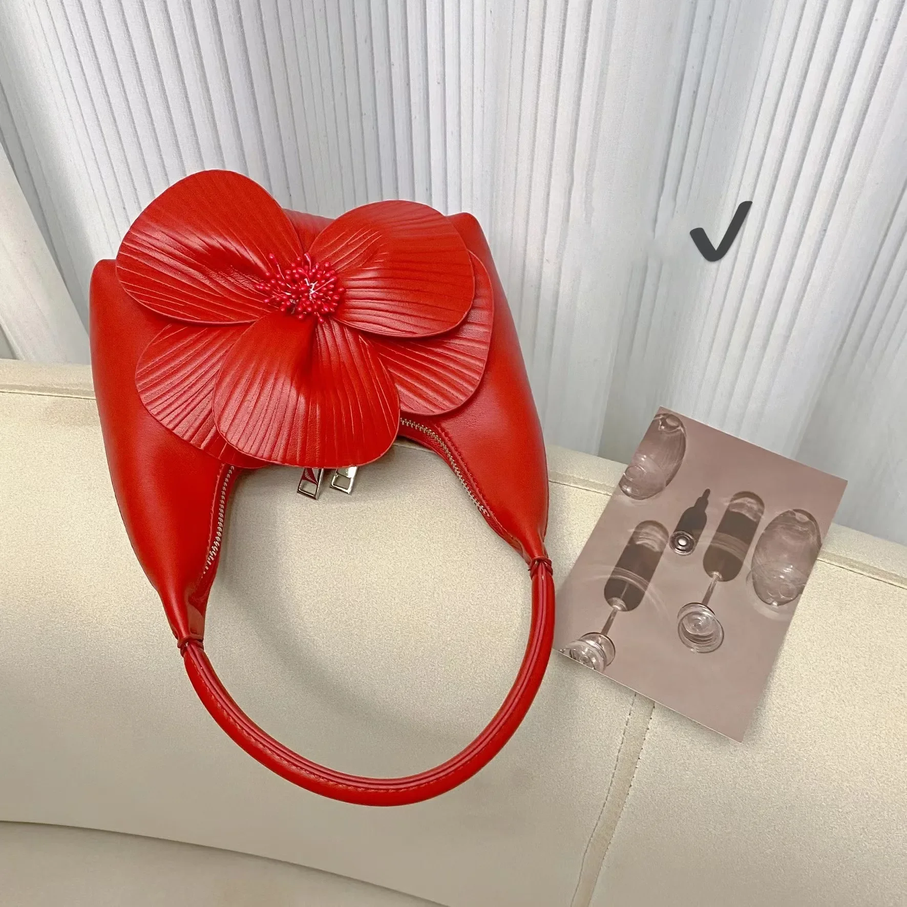 New Chinese Tea Flower Petal Bucket Banquet Evening Bags Lady Bridal Wedding Vegetable Basket Crescent Tote Clutch Crossbody Bag